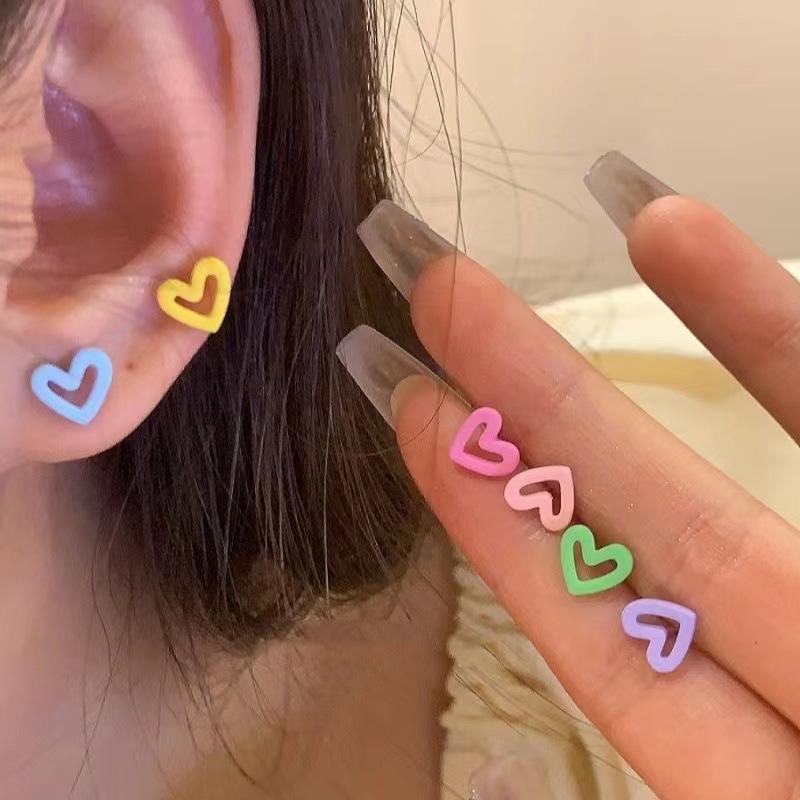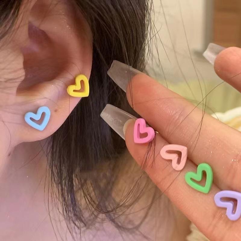 6 pendientes sencillos de color con elementos de amor dulce y nicho de dopamina para mujer.