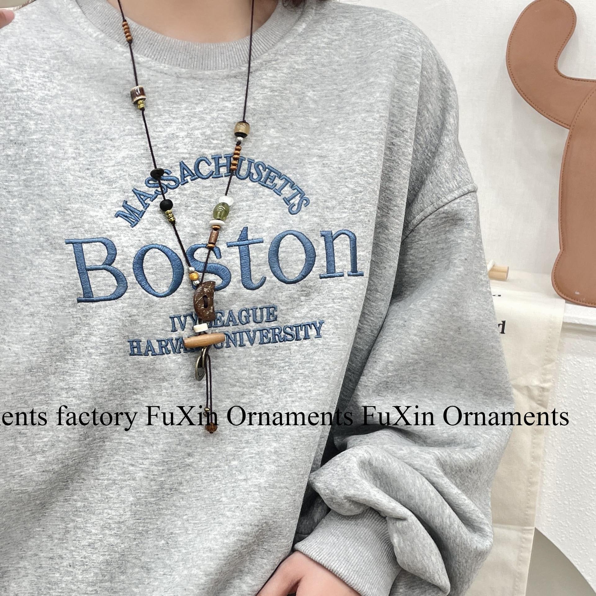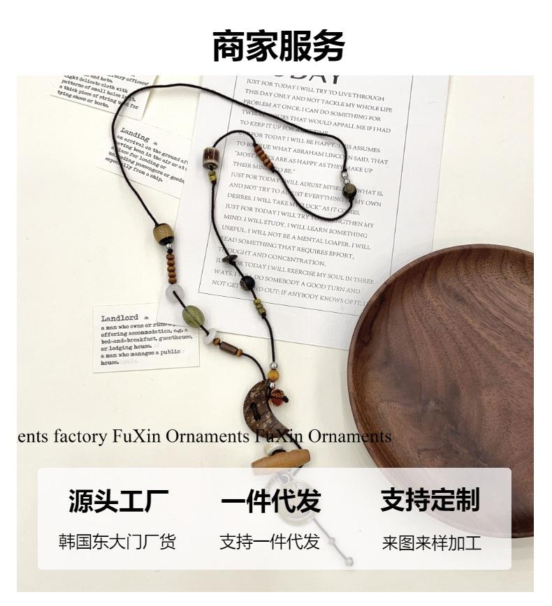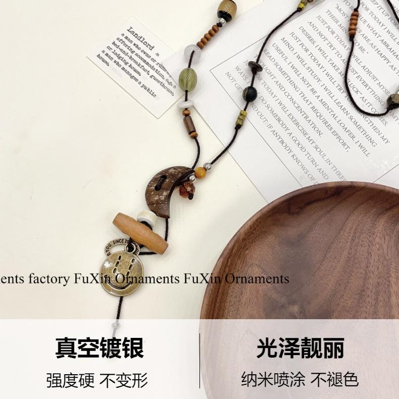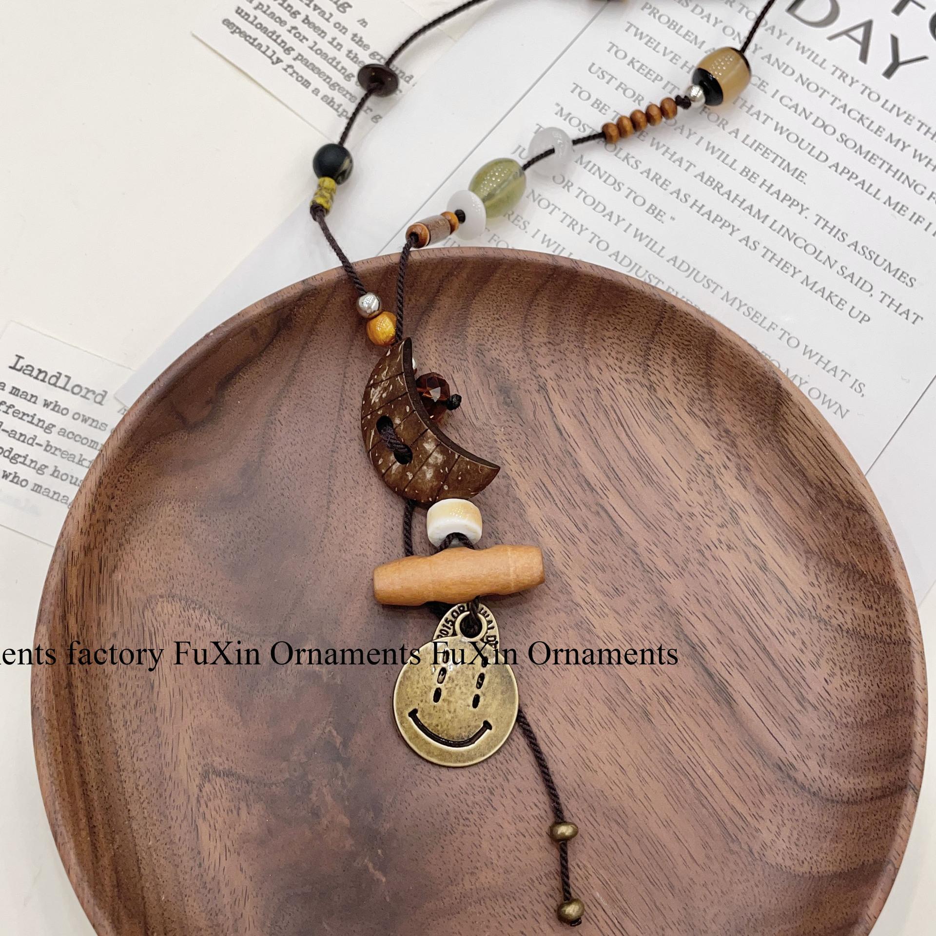 Nuevo Collar Colgante Decorativo de Cara Sonriente Vintage Diseño Nicho Accesorios Combinables Collar Antiguo Multielemento Cadena de Lana