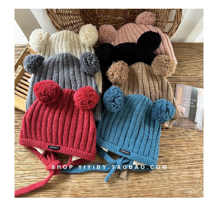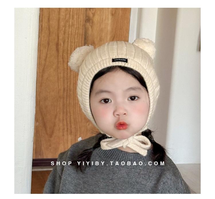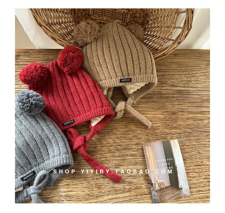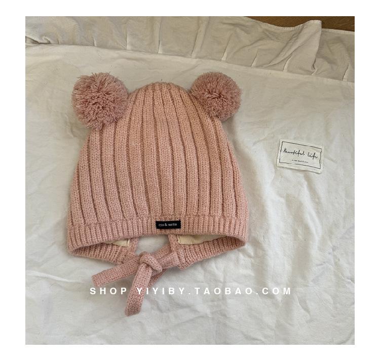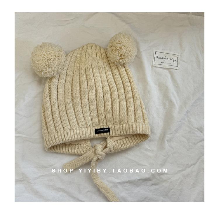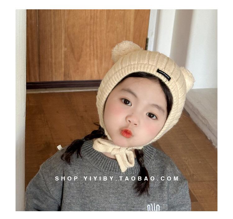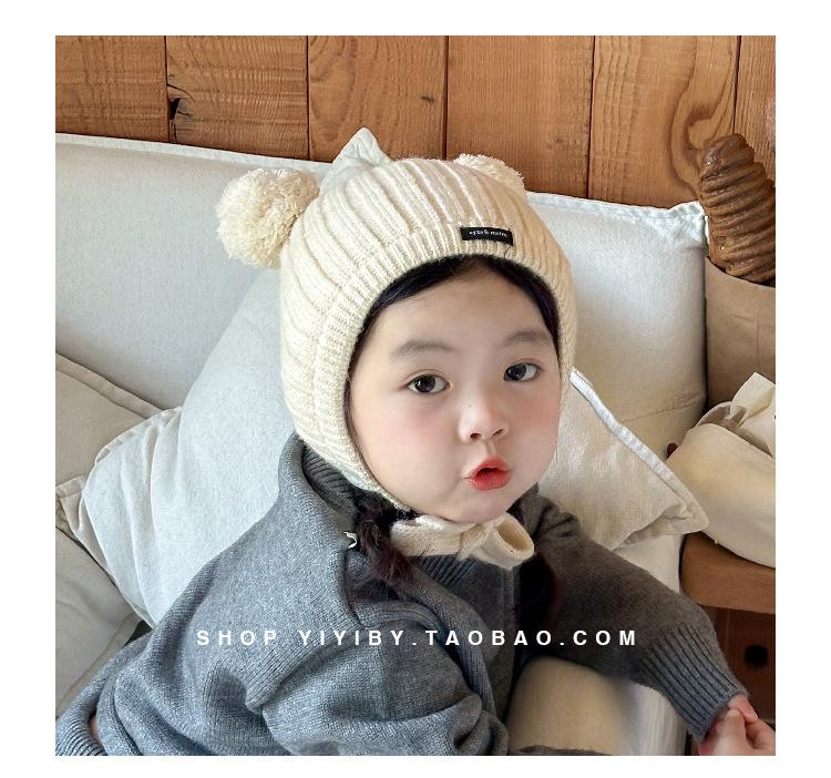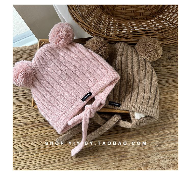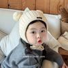 Sombrero tejido para bebé estilo coreano con protección para las orejas, nuevo para otoño e invierno, para niños y niñas, lindo, súper lindo, con pompón de piel, cálido, de lana, para niños