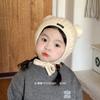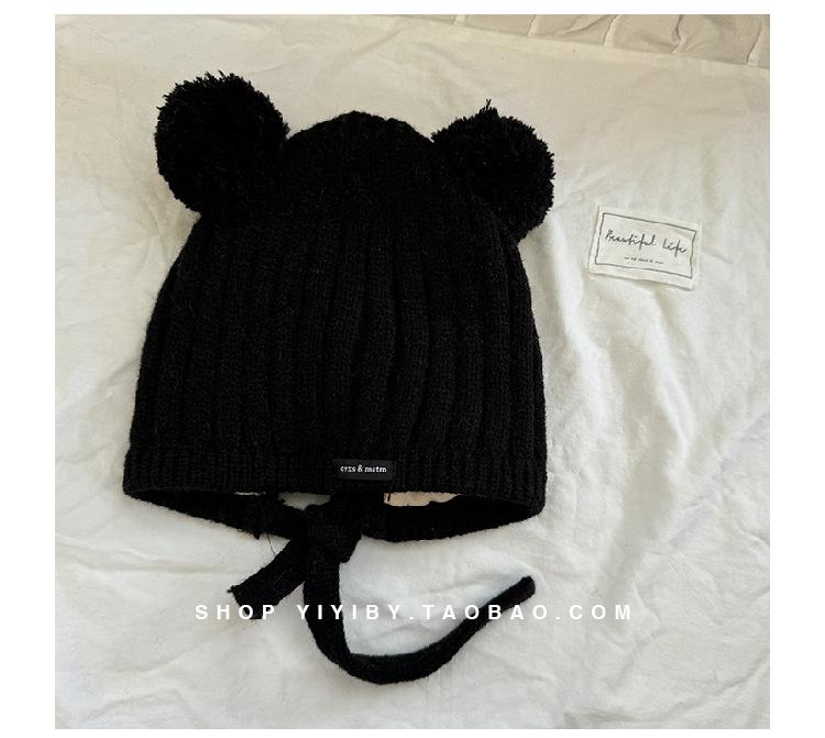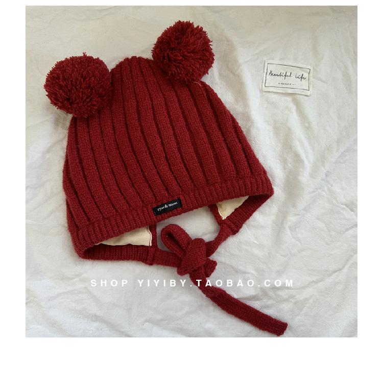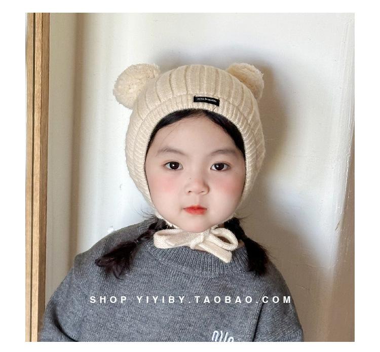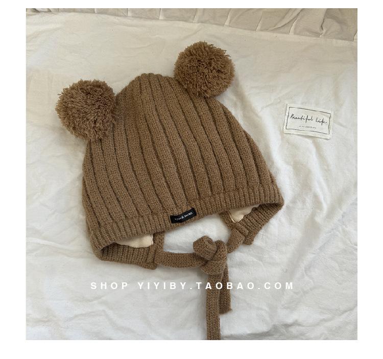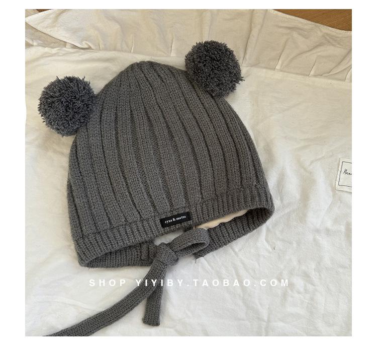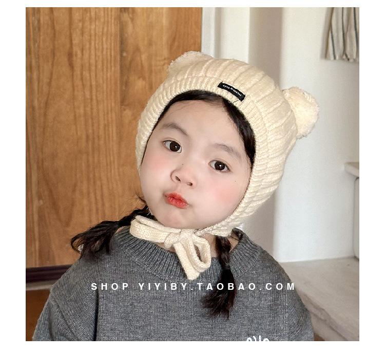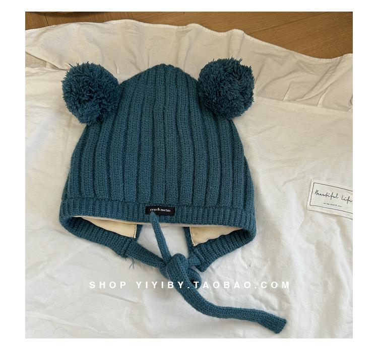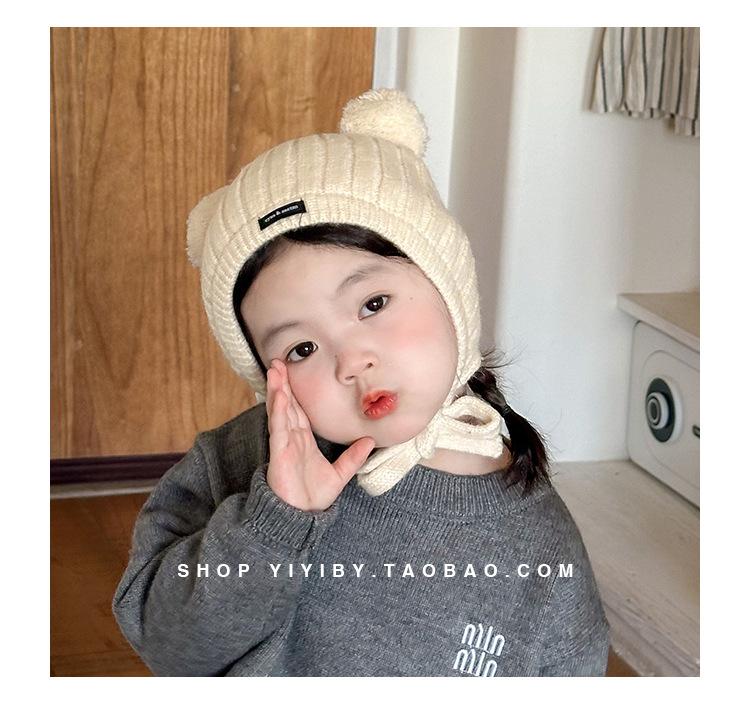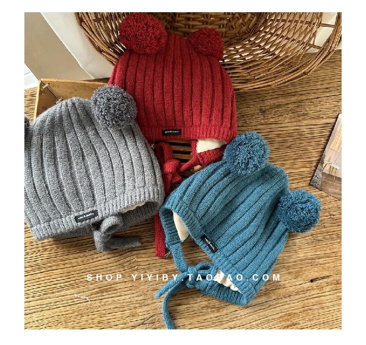 Sombrero tejido para bebé estilo coreano con protección para las orejas, nuevo para otoño e invierno, para niños y niñas, lindo, súper lindo, con pompón de piel, cálido, de lana, para niños