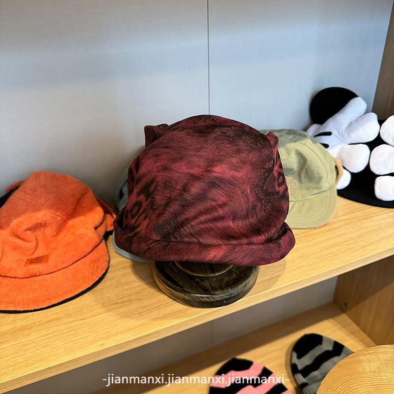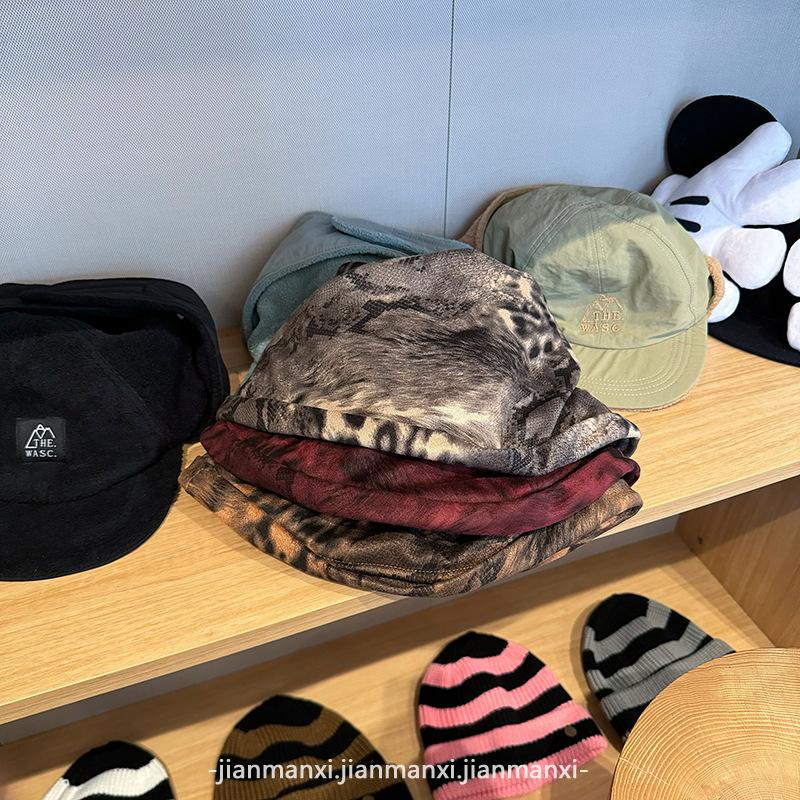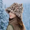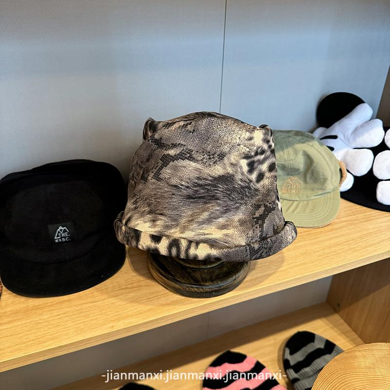 Sombrero de cubo plisado con estampado de leopardo para mujer, moda ins de otoño e invierno, circunferencia de cabeza grande, diseño de cara pequeña, sombrero al por mayor