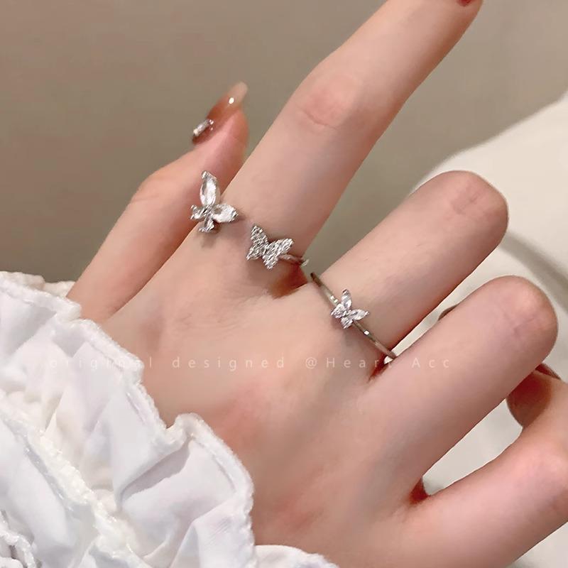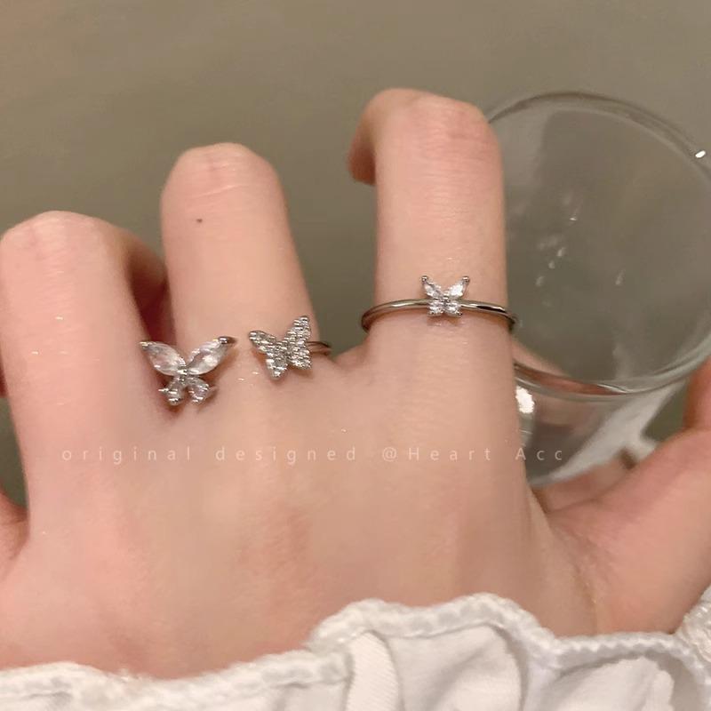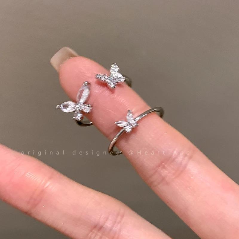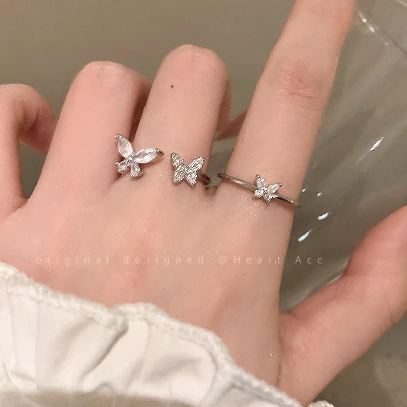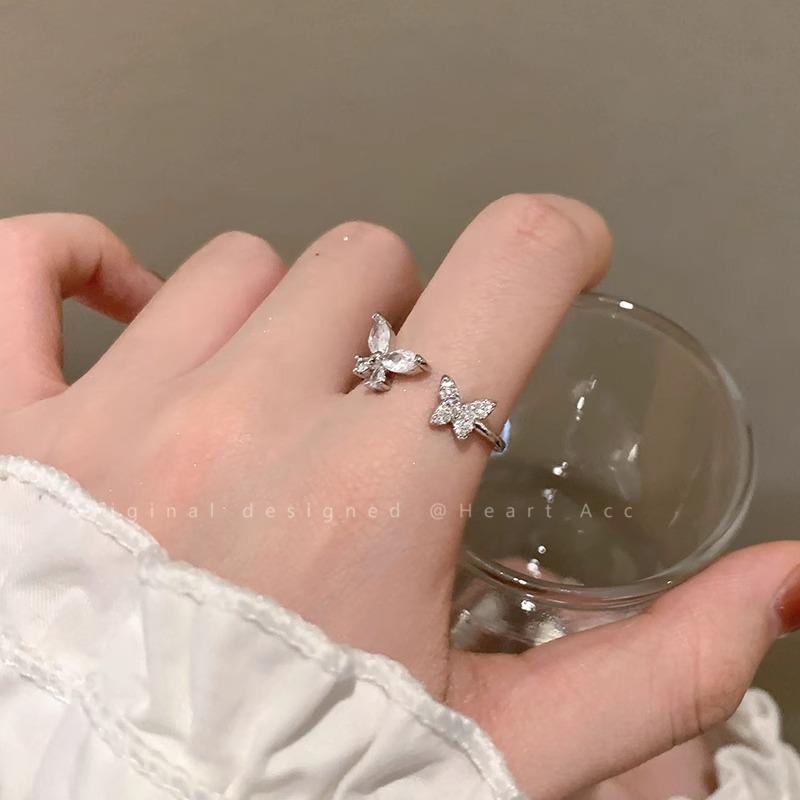 Anillo de dedo índice de circonita de mariposa de lujo ligero de estilo francés, apilable, abierto, diseño simple, anillo que combina con todo, anillo del mismo estilo para novias