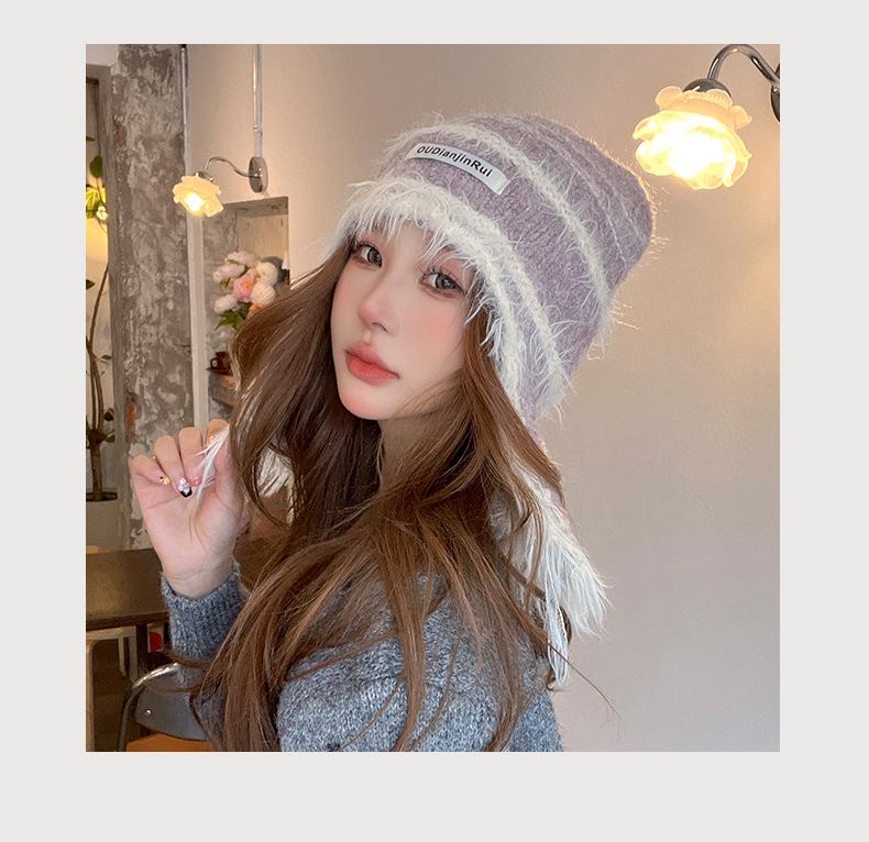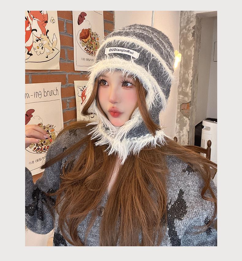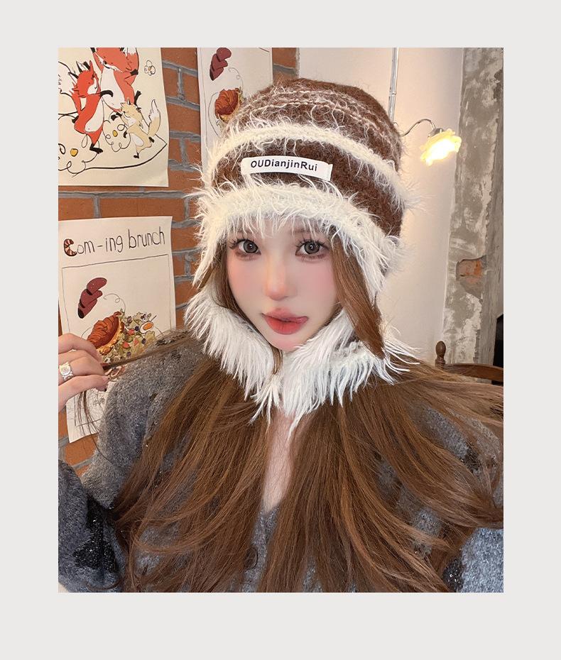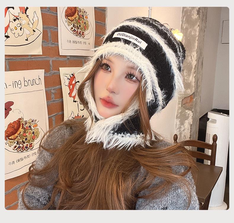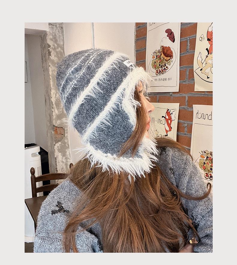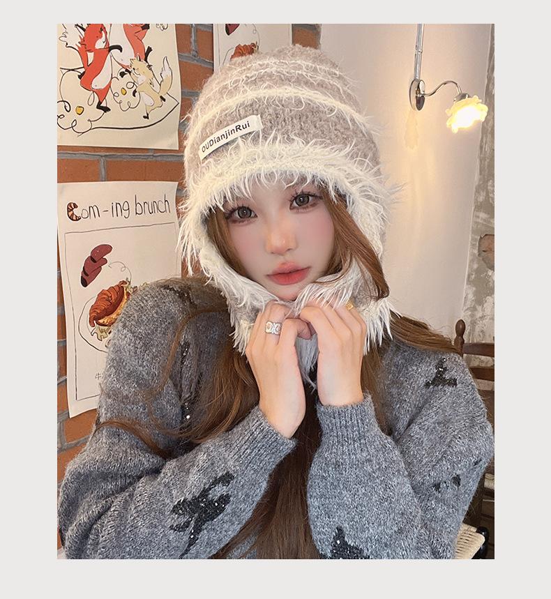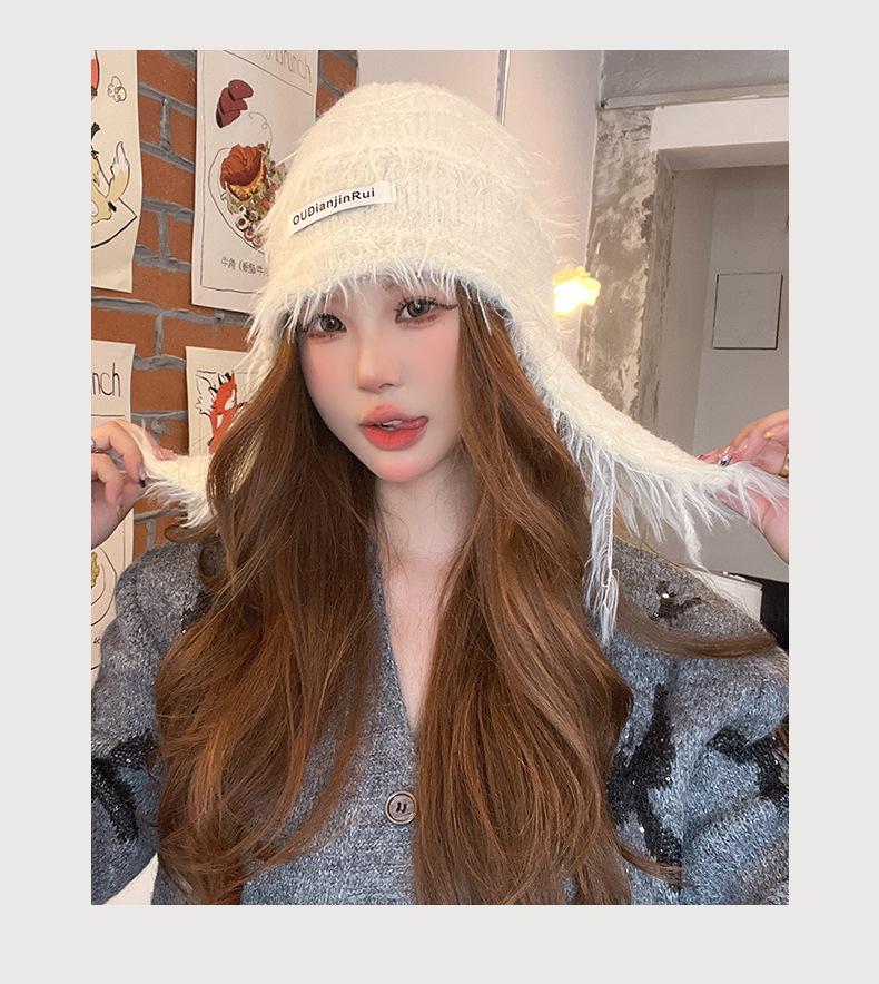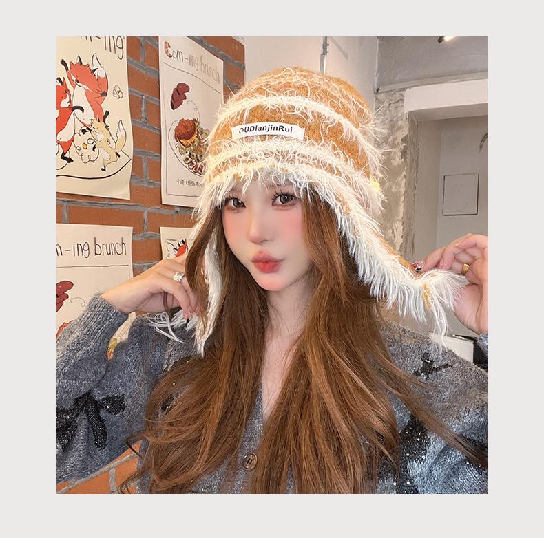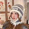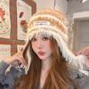 Gorro de felpa de otoño e invierno para mujer, cálido gorro de lana para exteriores, con protección para las orejas, pequeño gorro Lei Feng resistente al frío, gorro de punto