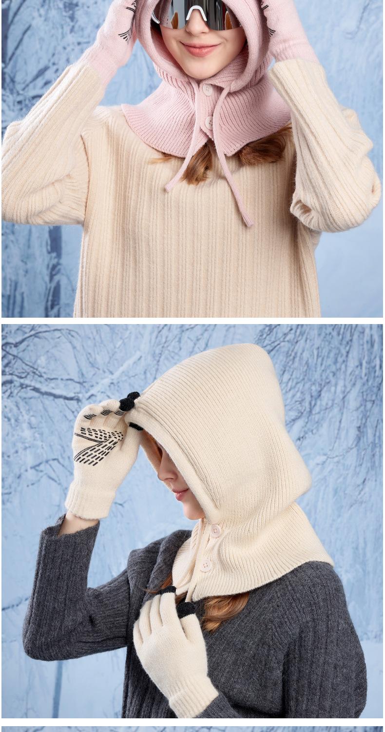 Pasamontañas de invierno cálido con protección para los oídos, guantes de punto, chal de mujer, jersey de una pieza, gorro de lana transfronterizo