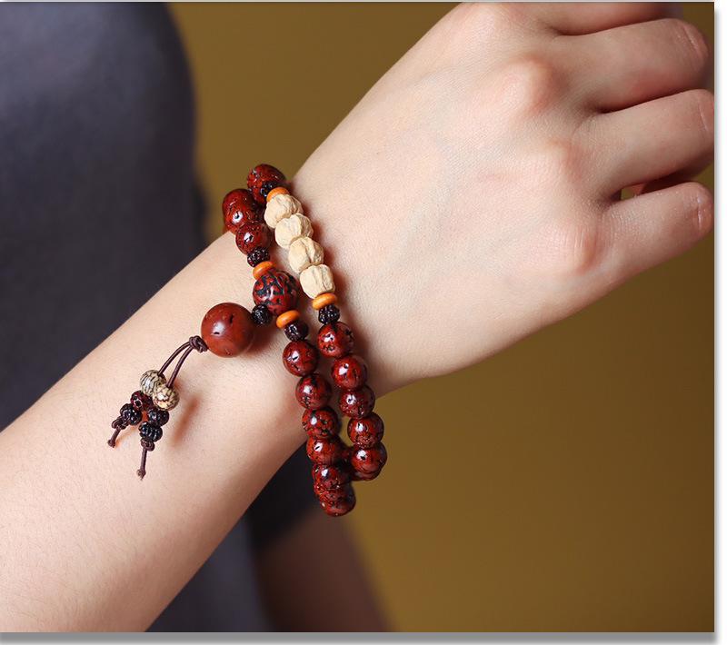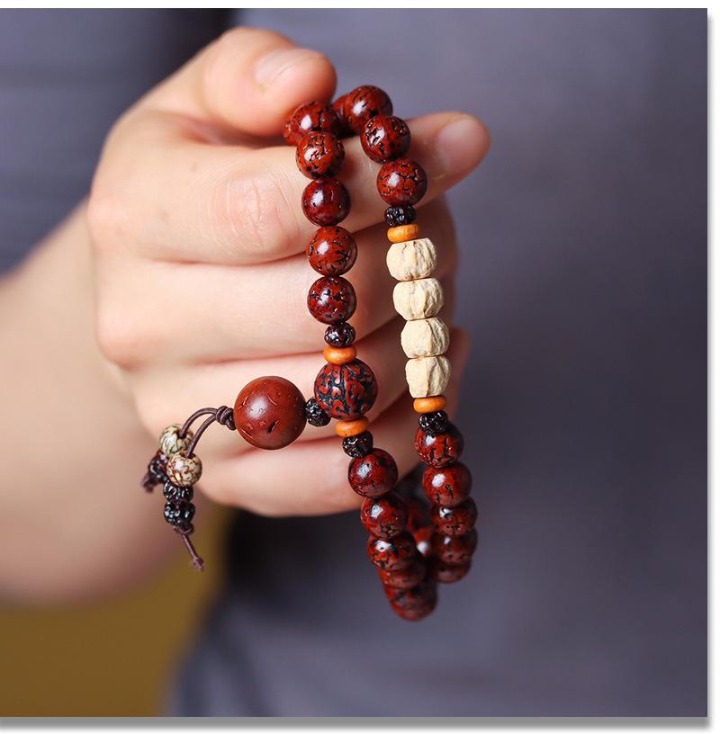 Pulsera King Kong Bodhi de material antiguo Yuhua natural con cuerda de mano, cepillo de pulpa, sin dientes, estilo literario, para hombres y mujeres