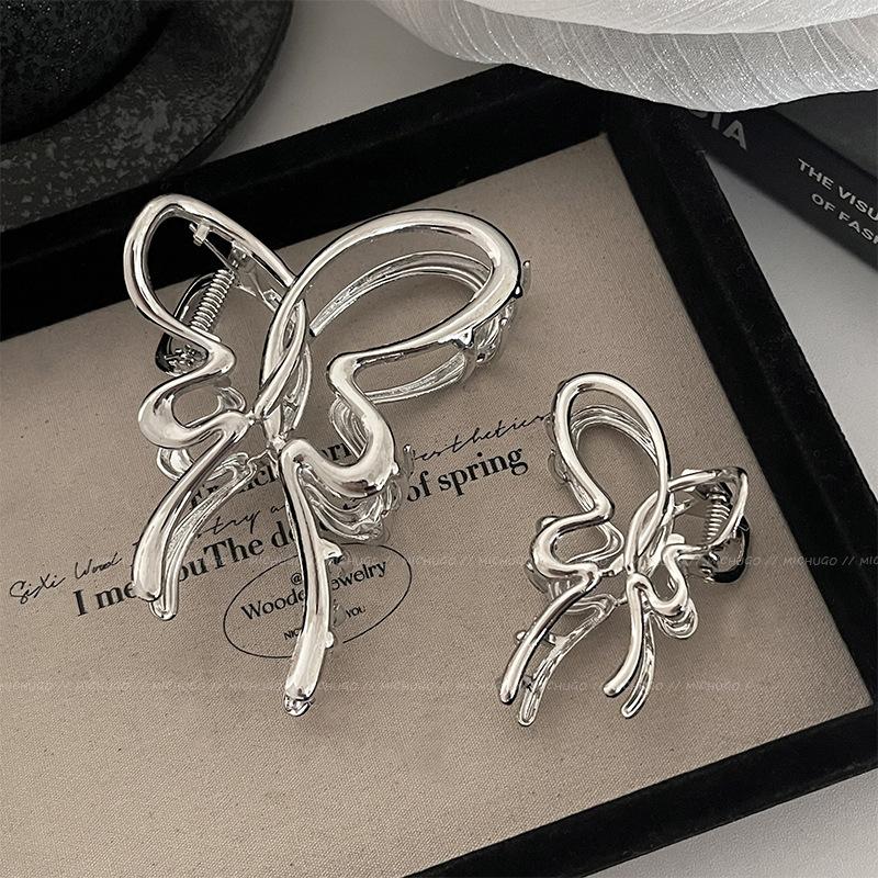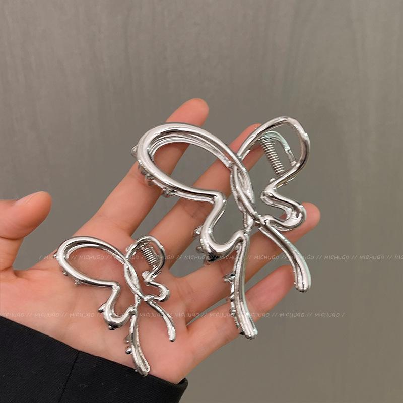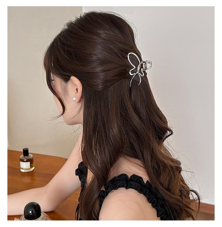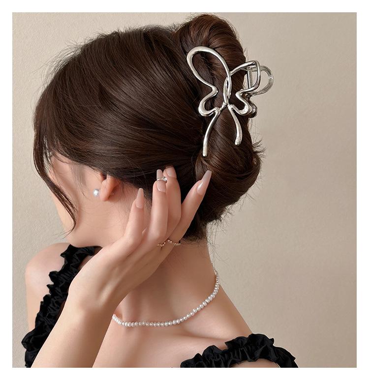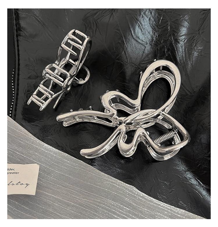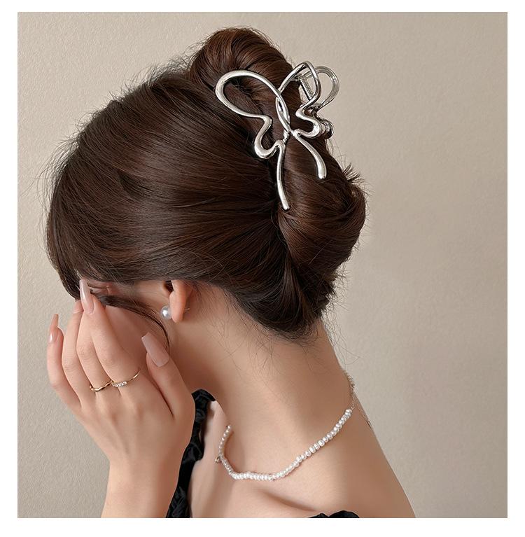 [Nombre] Horquillas de metal plateado huecas de mariposa grandes y pequeñas para mujer, horquillas para la parte posterior de la cabeza, diadema con pinza de tiburón de temperamento
