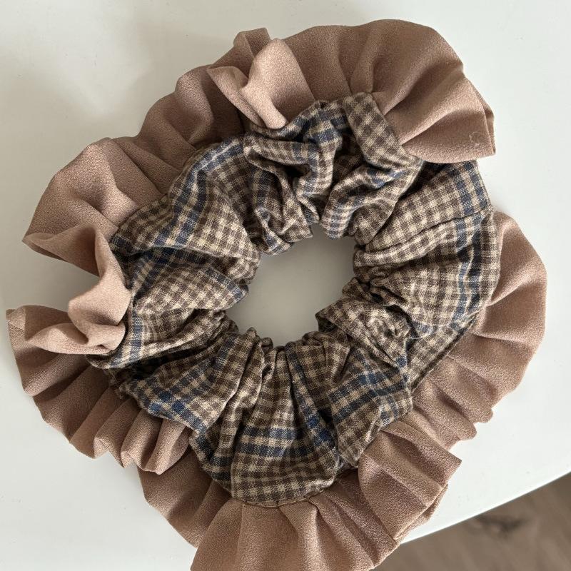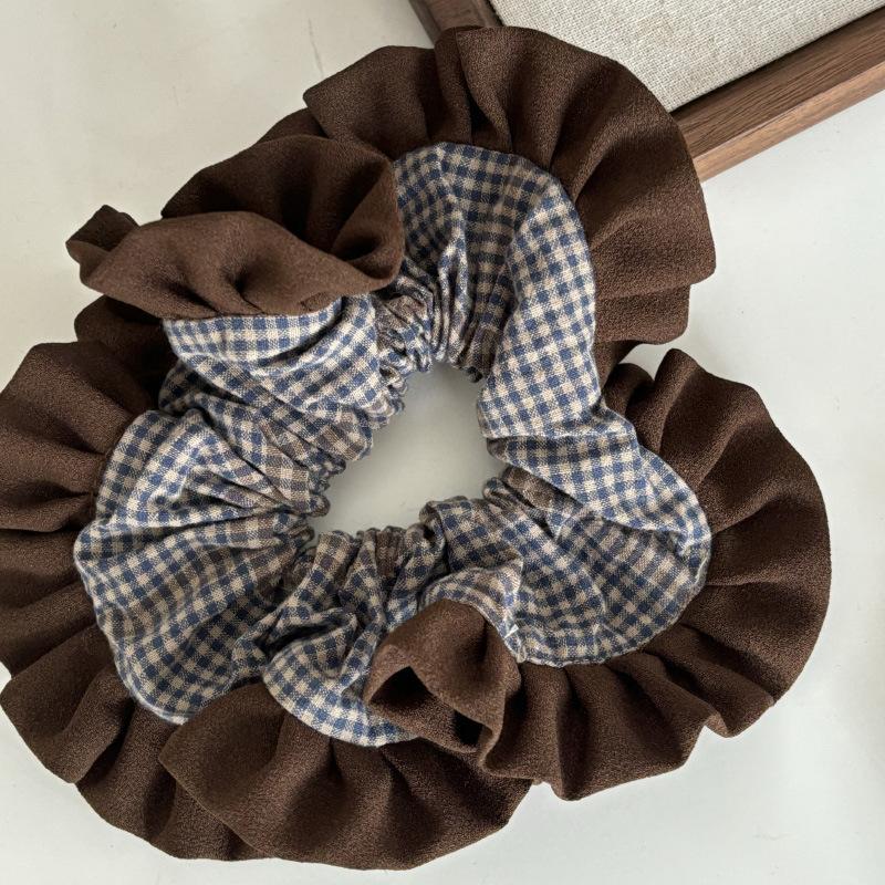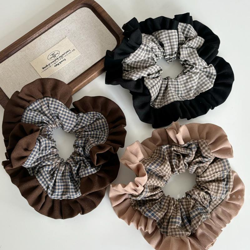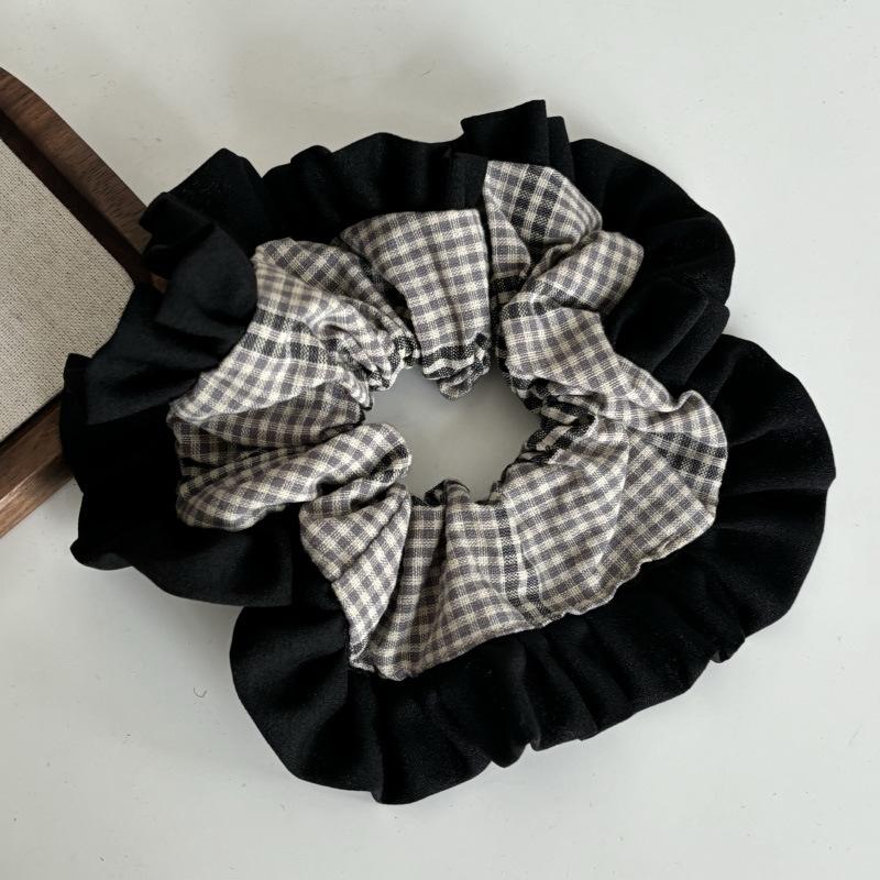 1# Black Lace Hair Ring, 2# coffee lace plaid hair ring, 3# Khakis Lace Plaid Hair Ring