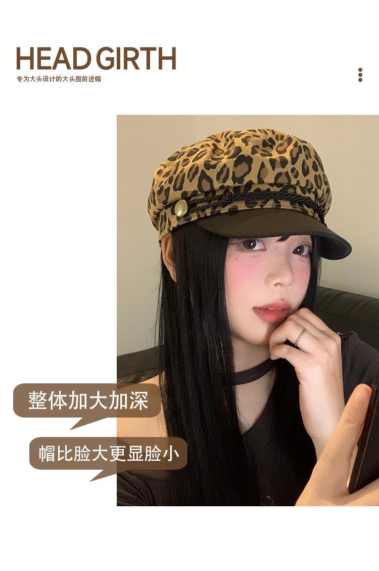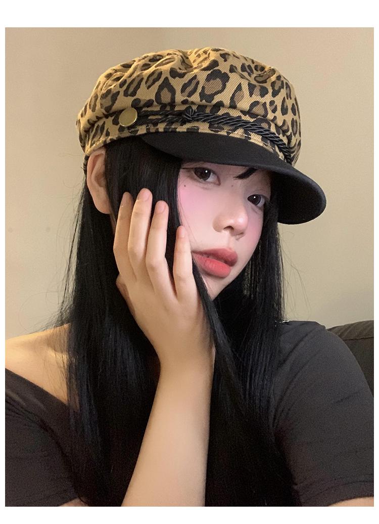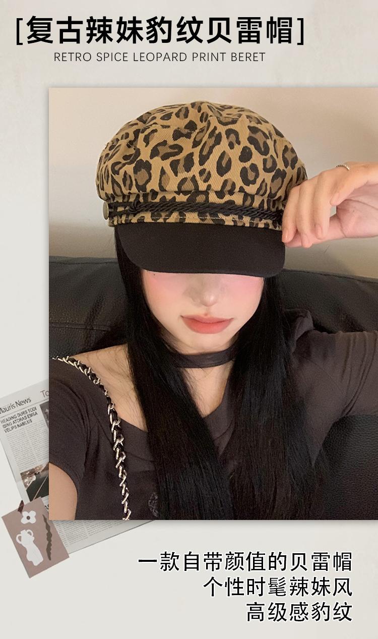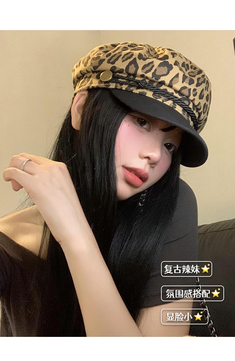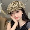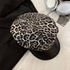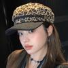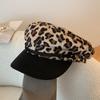 Sombrero Octogonal Vintage Spice Girl con Estampado de Leopardo para Mujer Primavera y Otoño Nicho Y2K Boina Pequeña Combinable Sombrero para Cabeza Grande