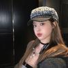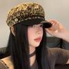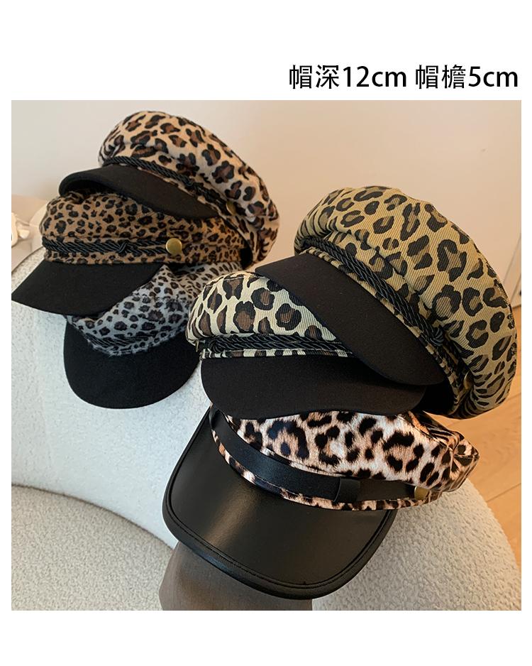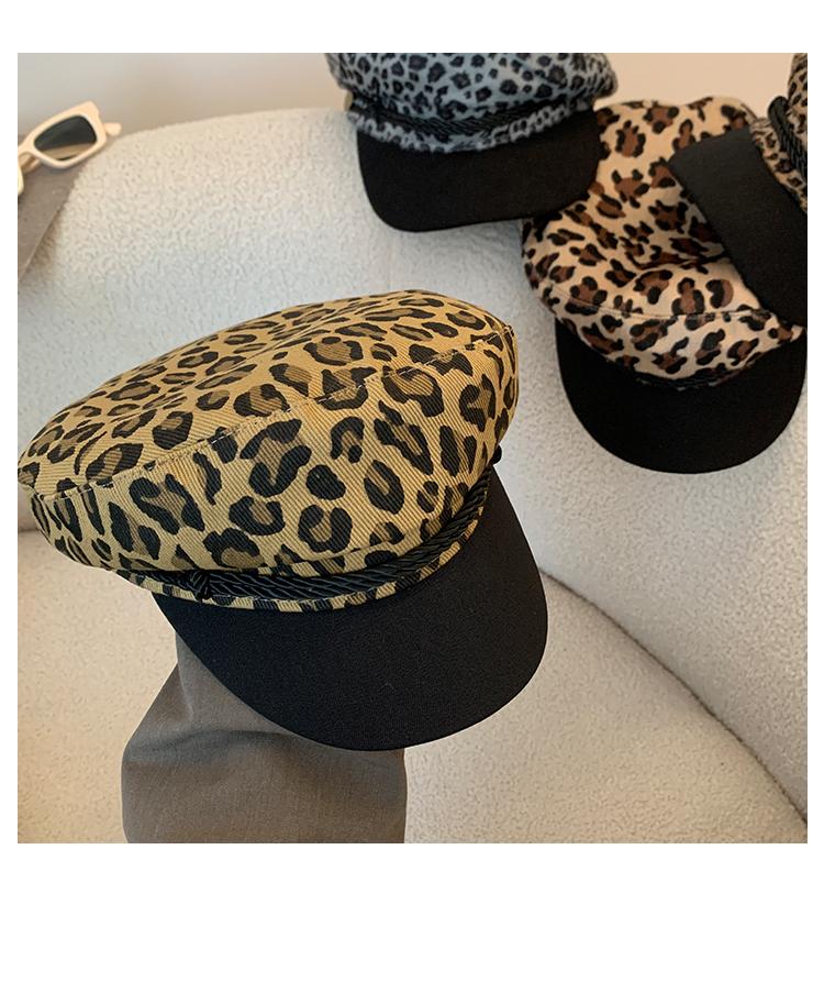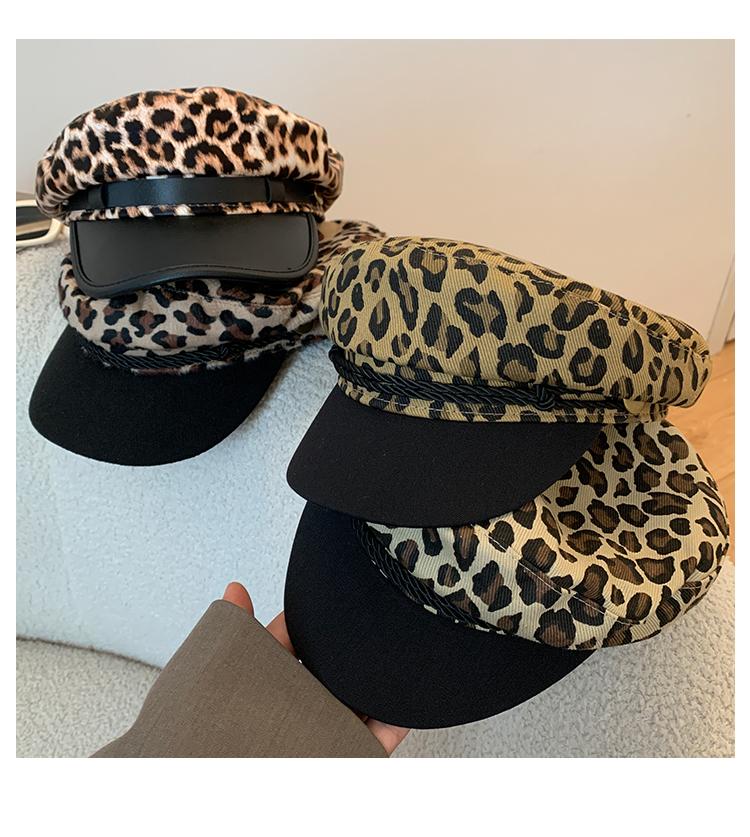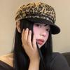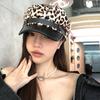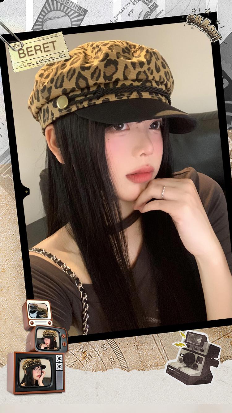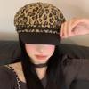Sombrero Octogonal Vintage Spice Girl con Estampado de Leopardo para Mujer Primavera y Otoño Nicho Y2K Boina Pequeña Combinable Sombrero para Cabeza Grande