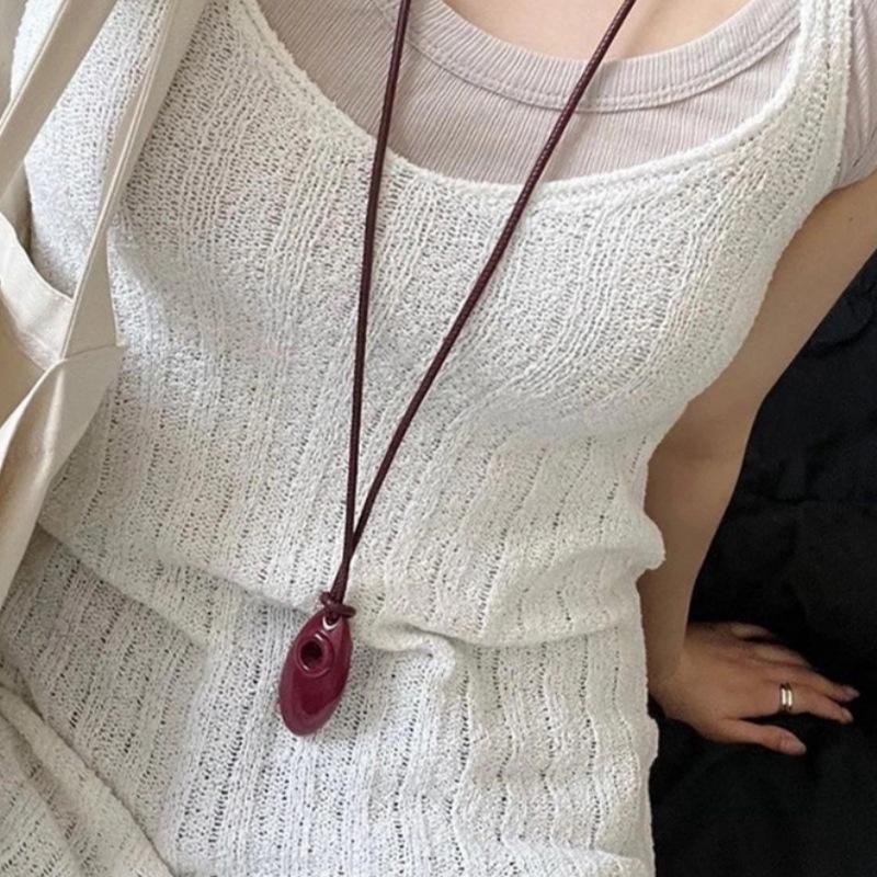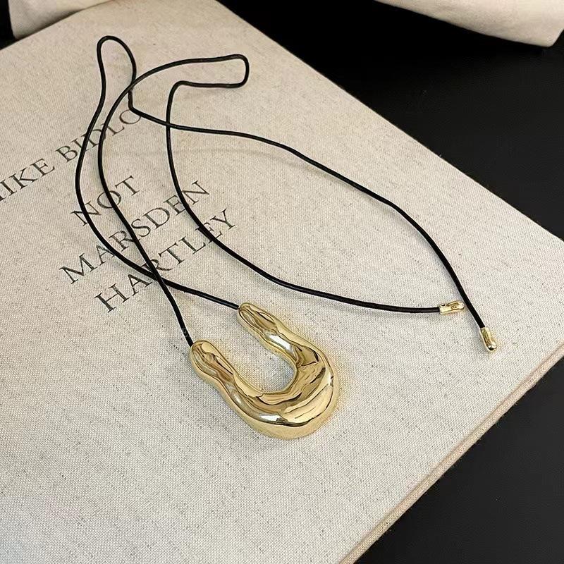 Bloguera surcoreana con collar con colgante de amor geométrico irregular y cadena de suéter ajustable de nicho de moda.