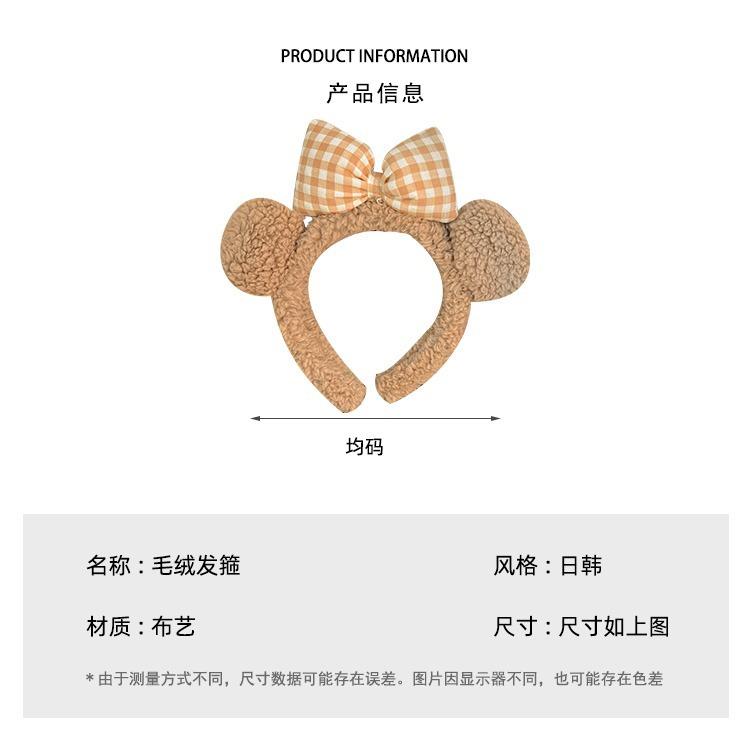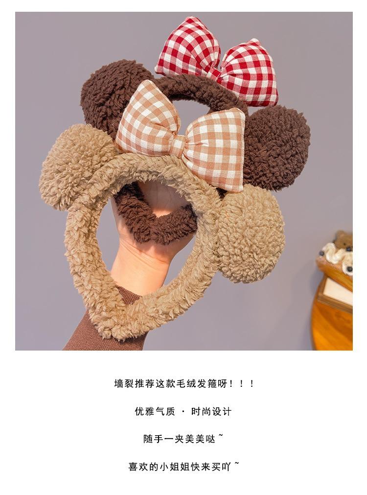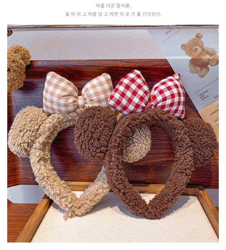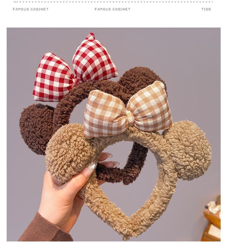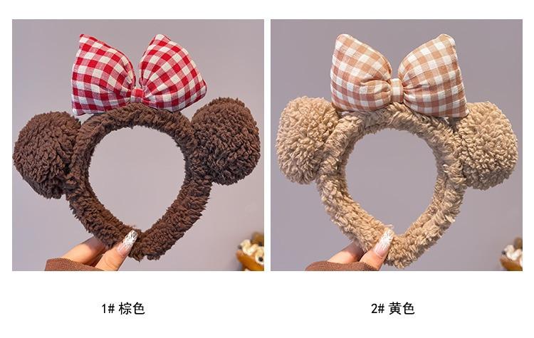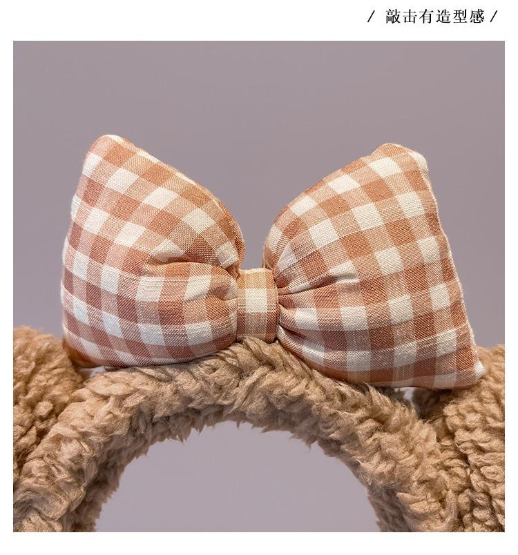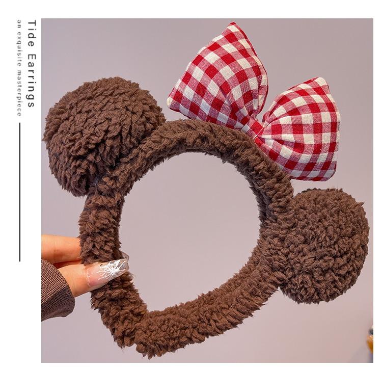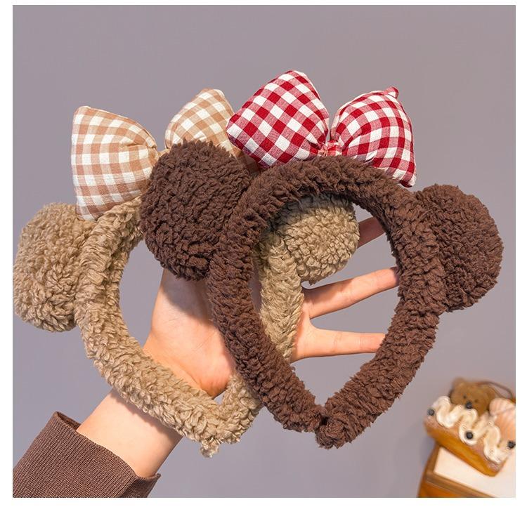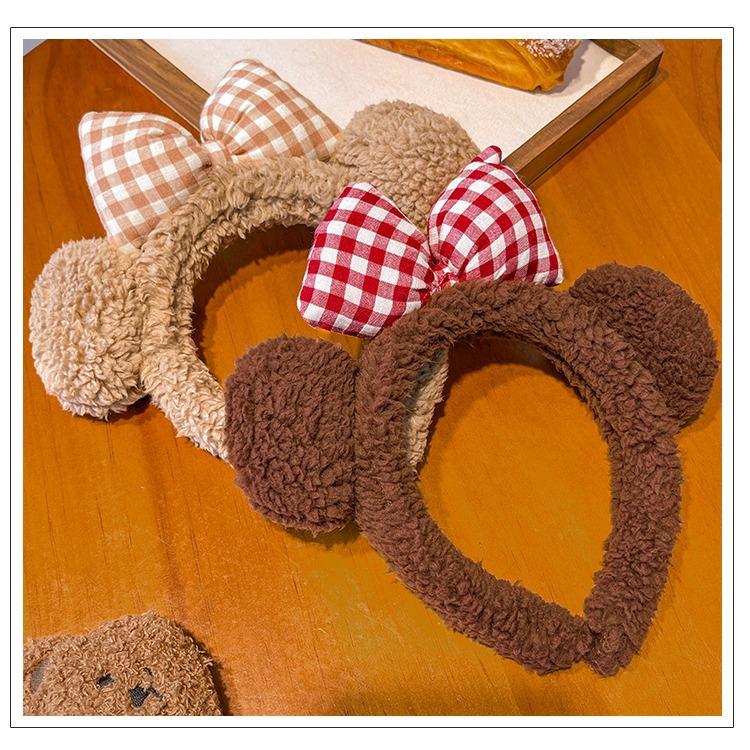 Lindo Oso de Lazo a Cuadros Felpa Banda para el Cabello para Mujer Dibujos Animados Lavado de Cara Presión Banda para el Cabello Antideslizante Pinza para el Cabello Paquete de Cabello Tocado