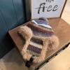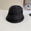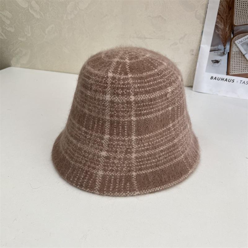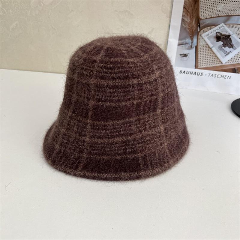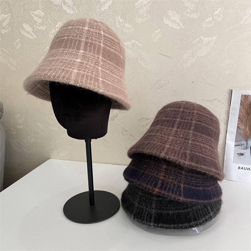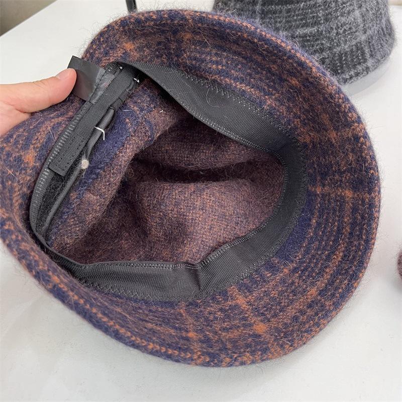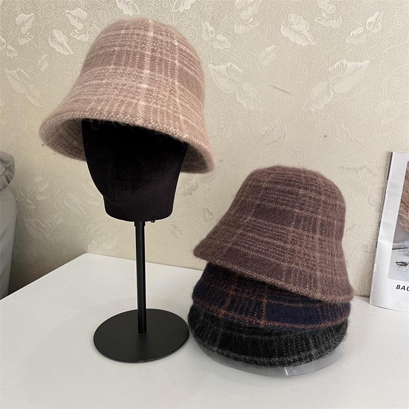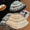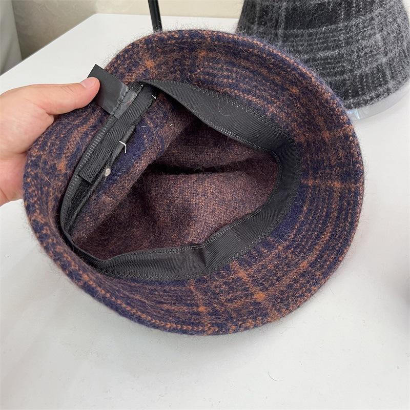 2024 otoño e invierno nuevo gorro de lana cálido suave ceroso lana de conejo mezcla de lana gorro de pescador tipo cubo para damas a rayas agua