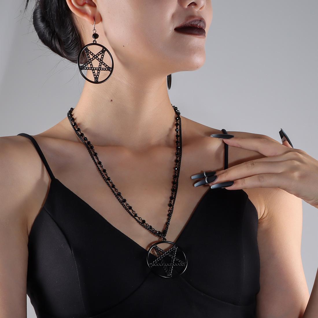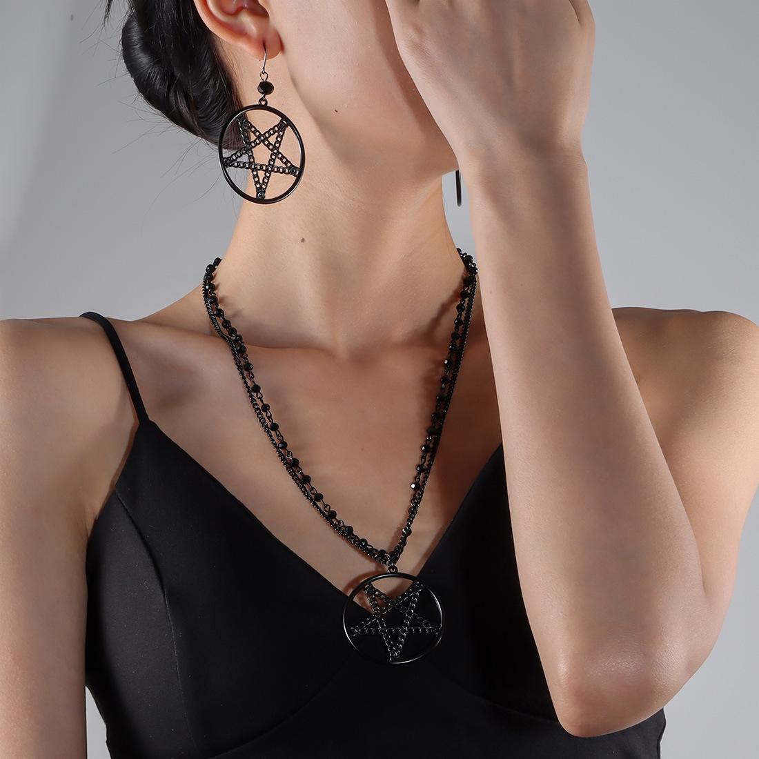Tendencia de joyería transfronteriza europea y americana, accesorios largos punk, anillo de moda hip-hop, collar de estrella de cinco puntas NK25120