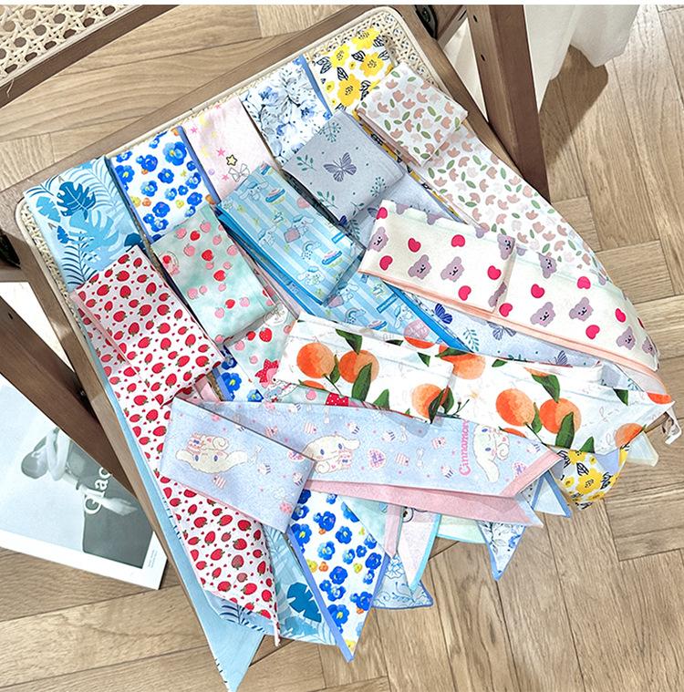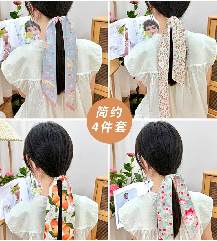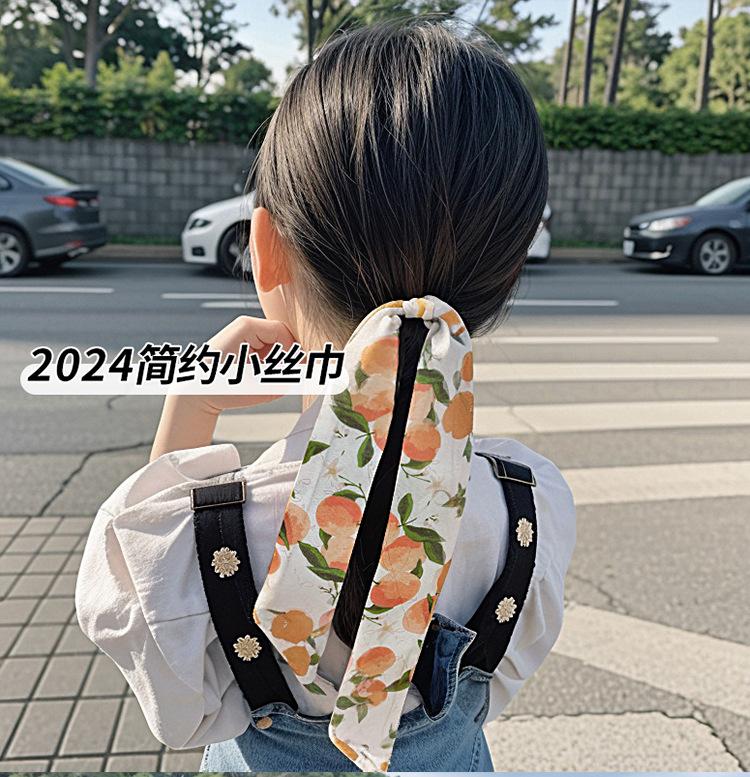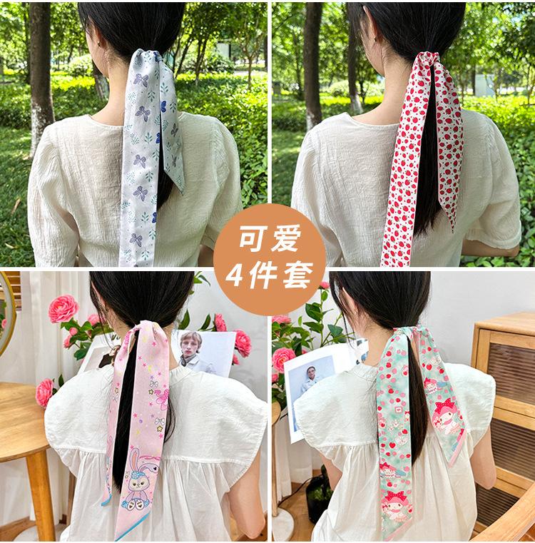 Banda para el cabello estilo coreano, bufanda de seda para niña, linda pajarita, cinta para el cabello, delgada, angosta, multifuncional, para bolso, traje, onda, punto