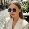 Gafas de Sol Europeas y Americanas Transfronterizas de Alta Gama Ins Look Adelgazante para Cara Grande Anti-UV Luz Fuerte Retro Marco Redondo Metal