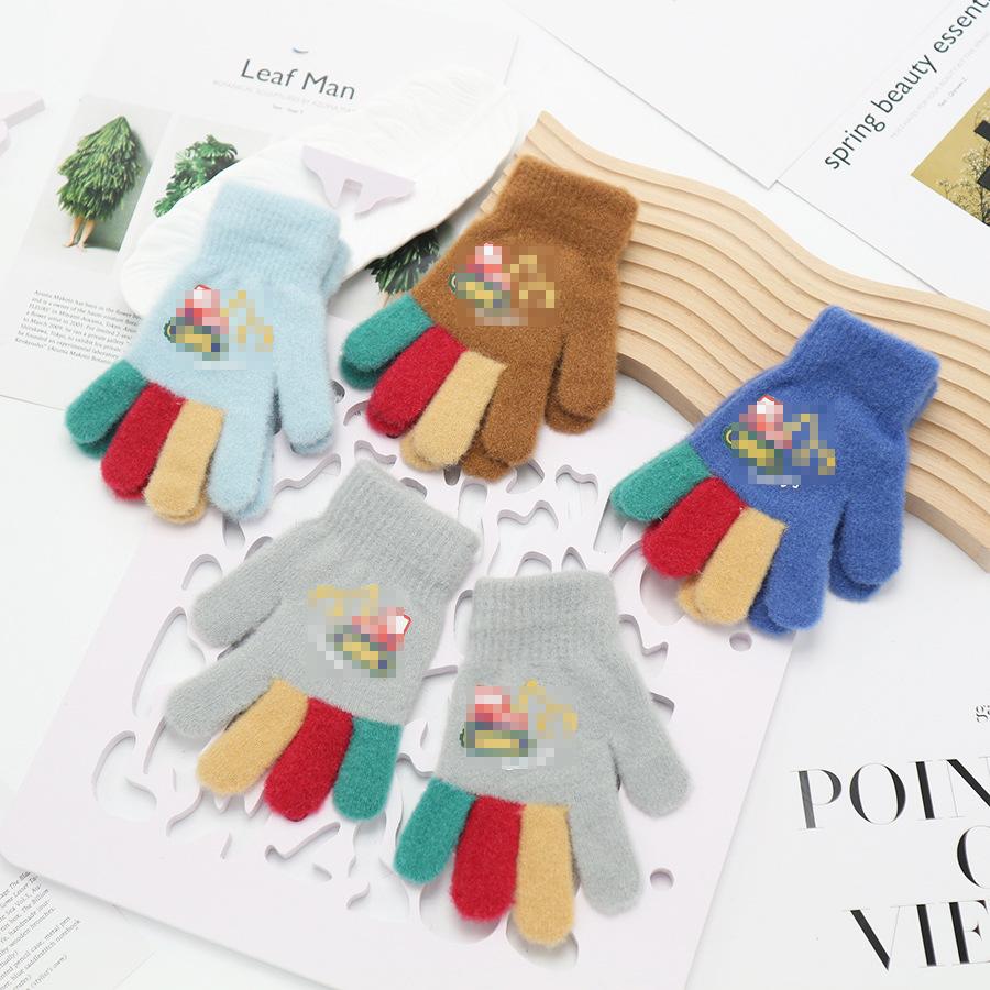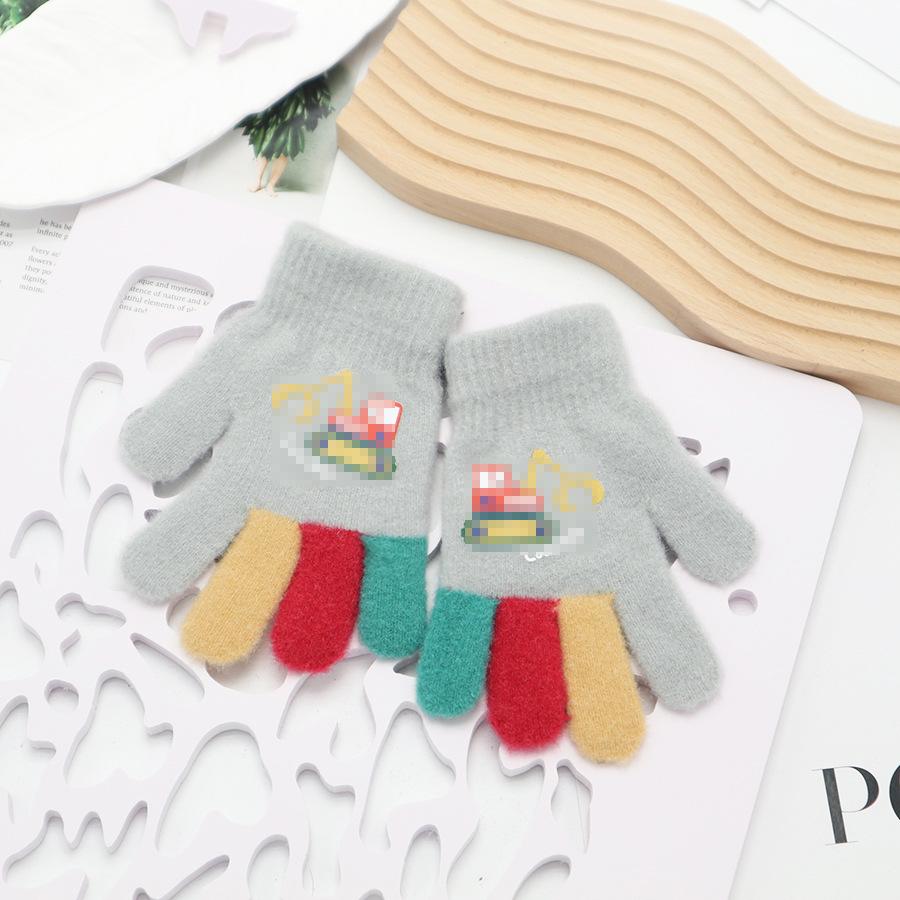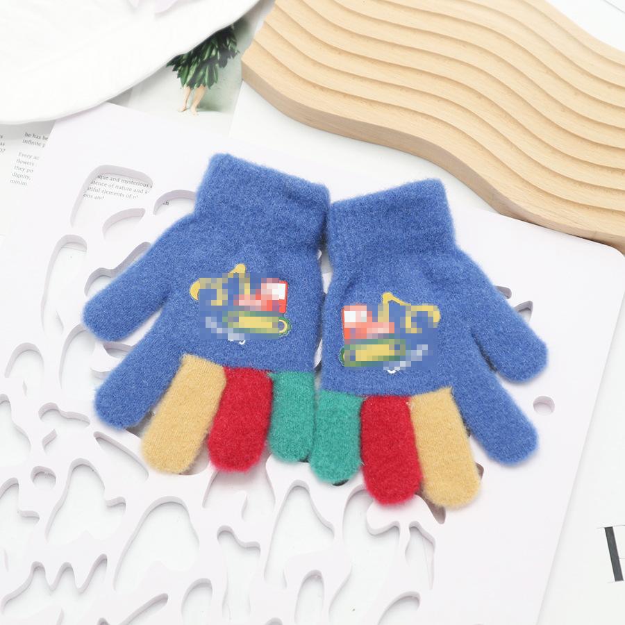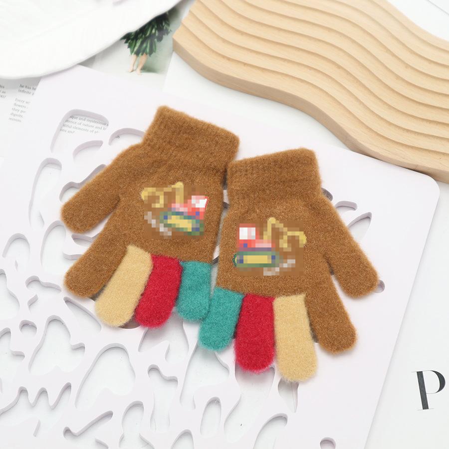 Guantes de invierno para niños, bonitos guantes de punto de felpa con forma de excavadora, resistentes al frío, para estudiantes masculinos y femeninos.
