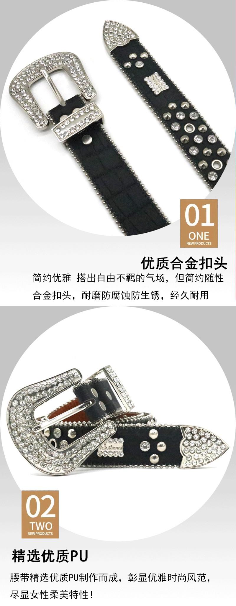 Cinturón de diamantes de imitación transfronterizo cinturón mujer con incrustaciones con púas diamante completo cinturón y2k hombre tendencia moda punk cinturón de mujer