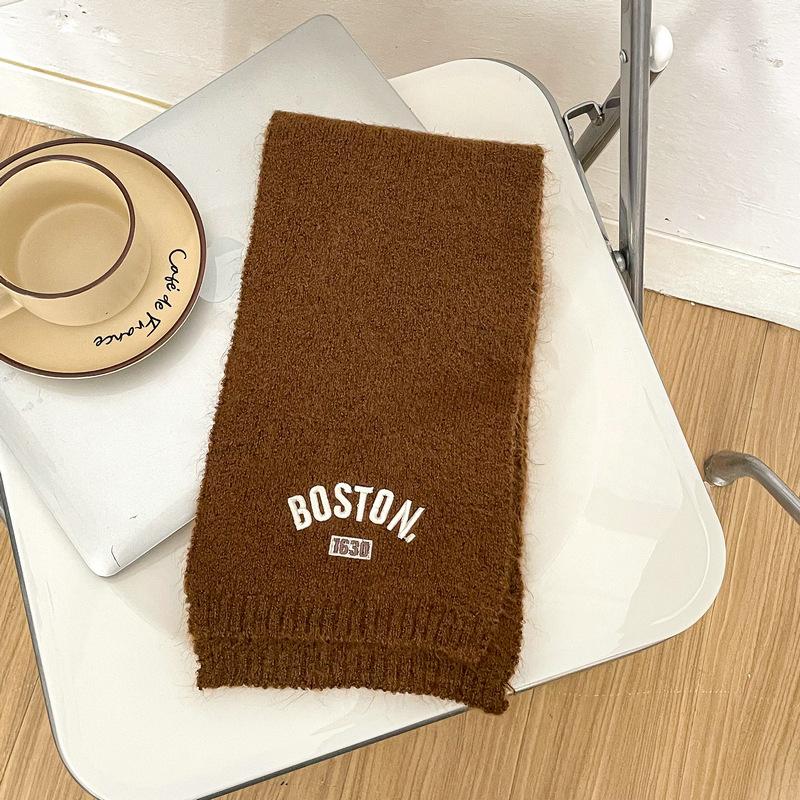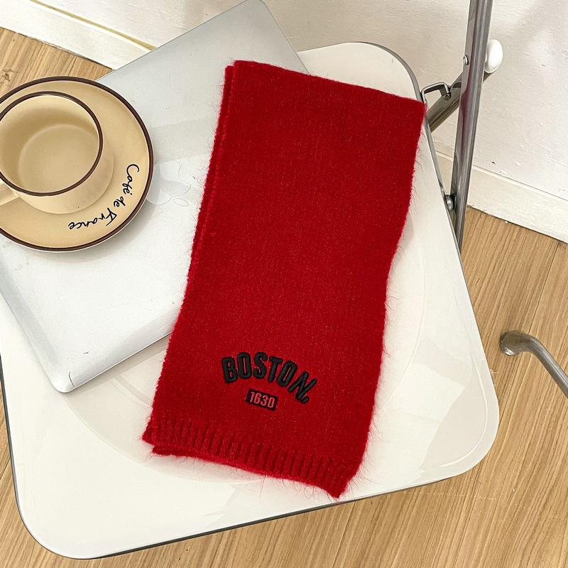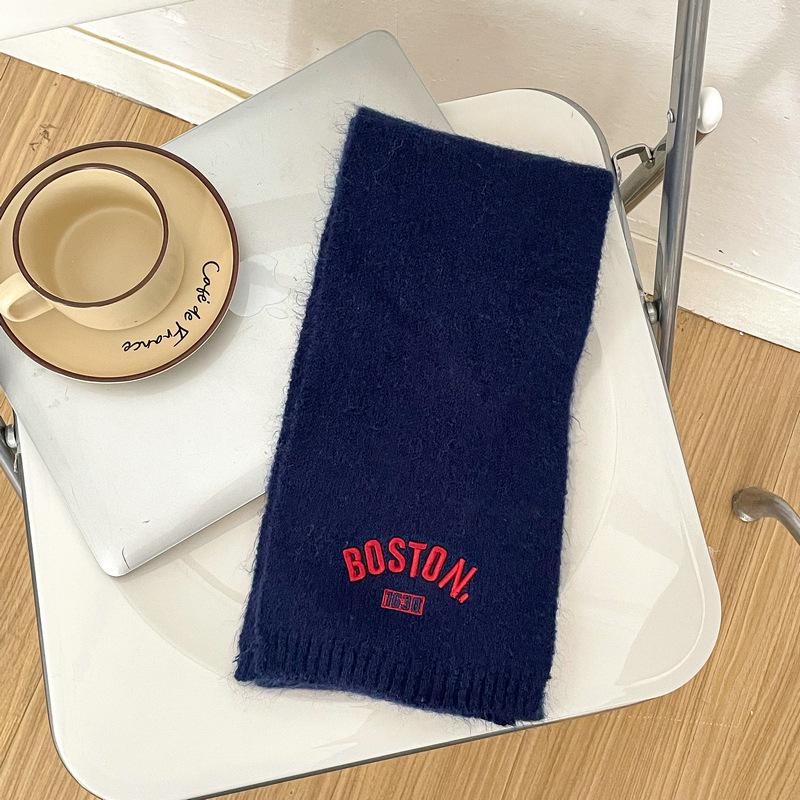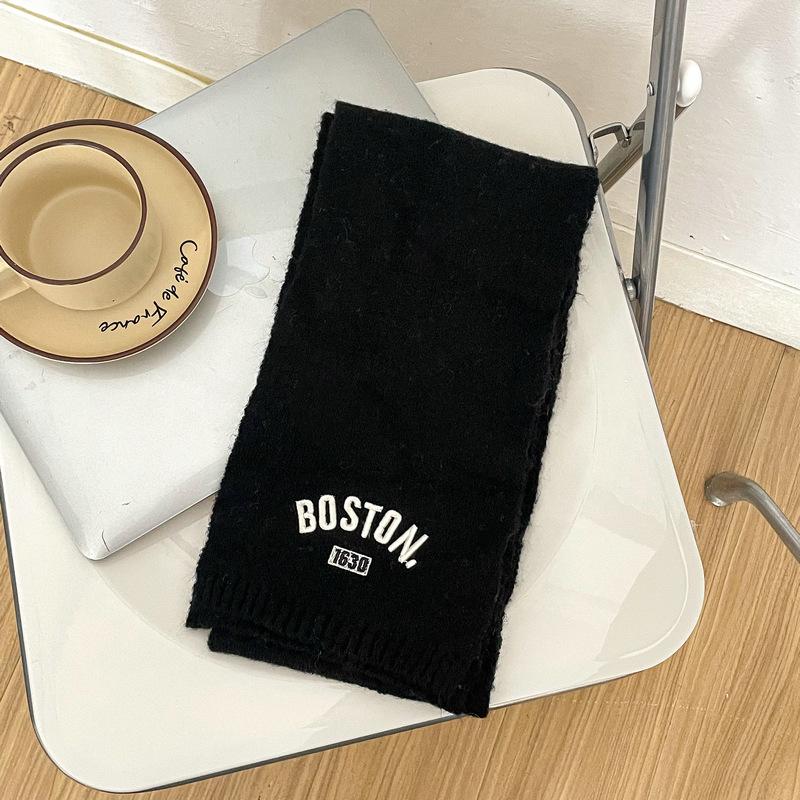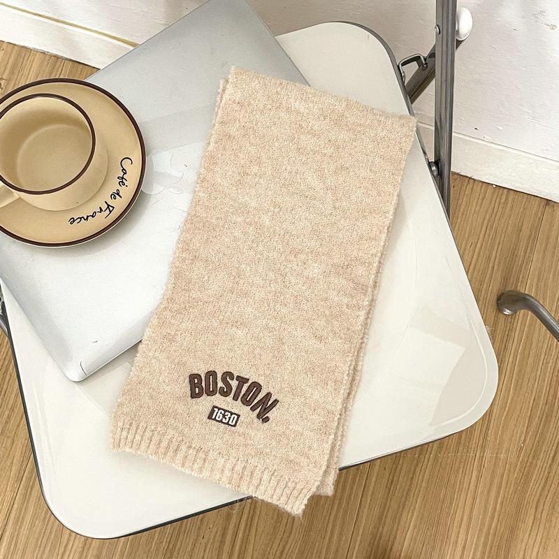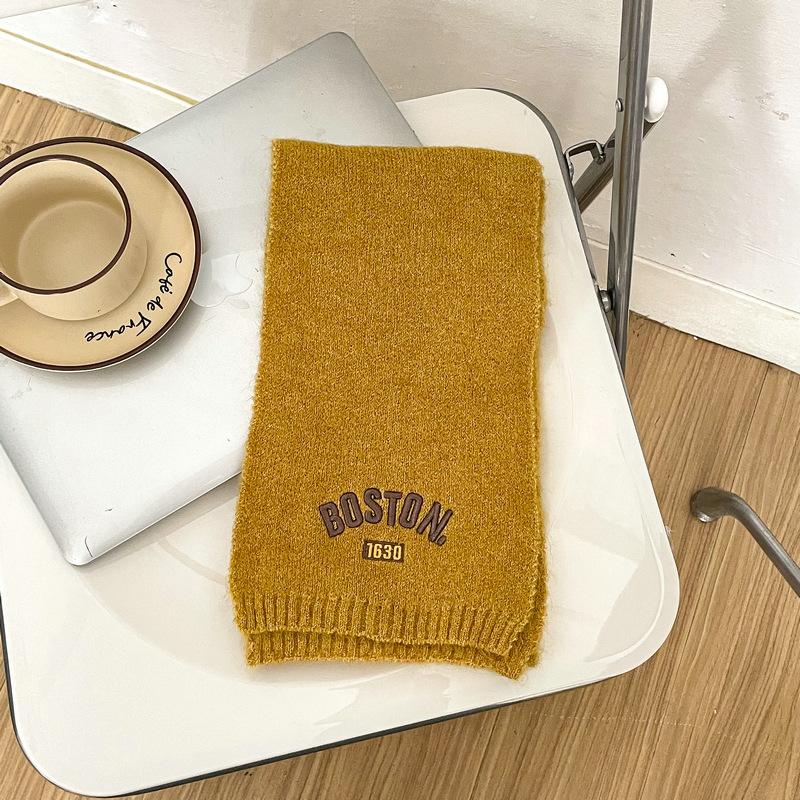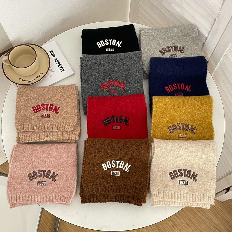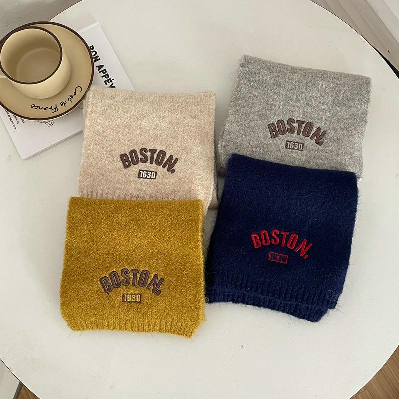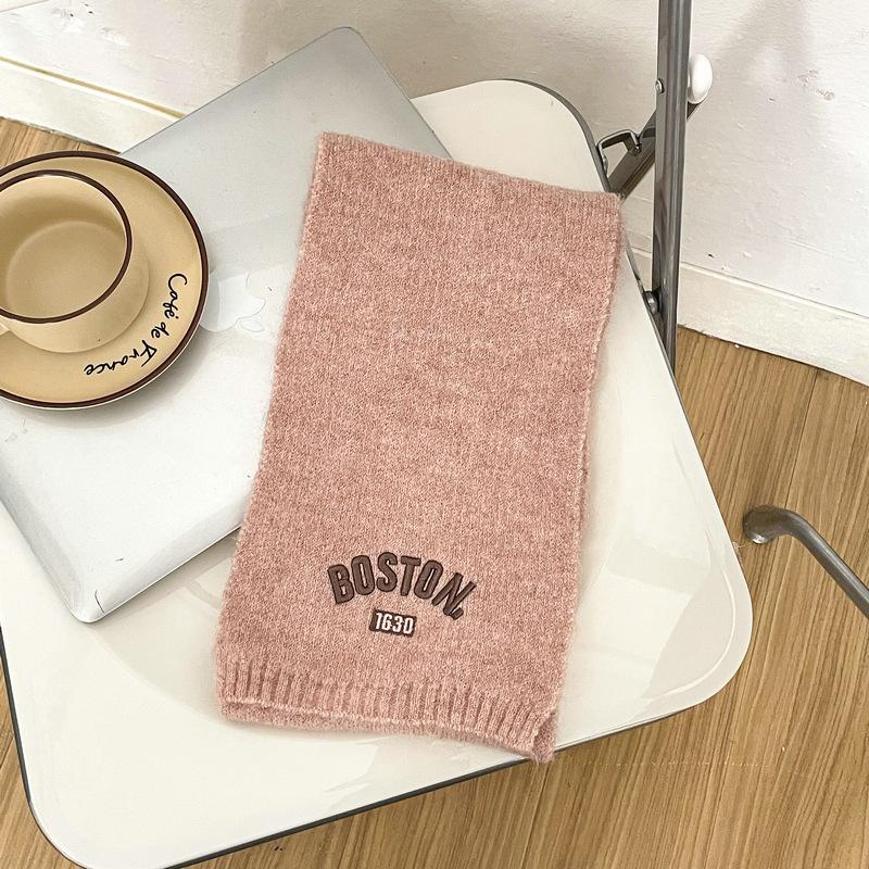 Bufanda de punto para niños y niñas con letras bordadas de estilo coreano, nueva bufanda de lana cálida y gruesa de invierno.
