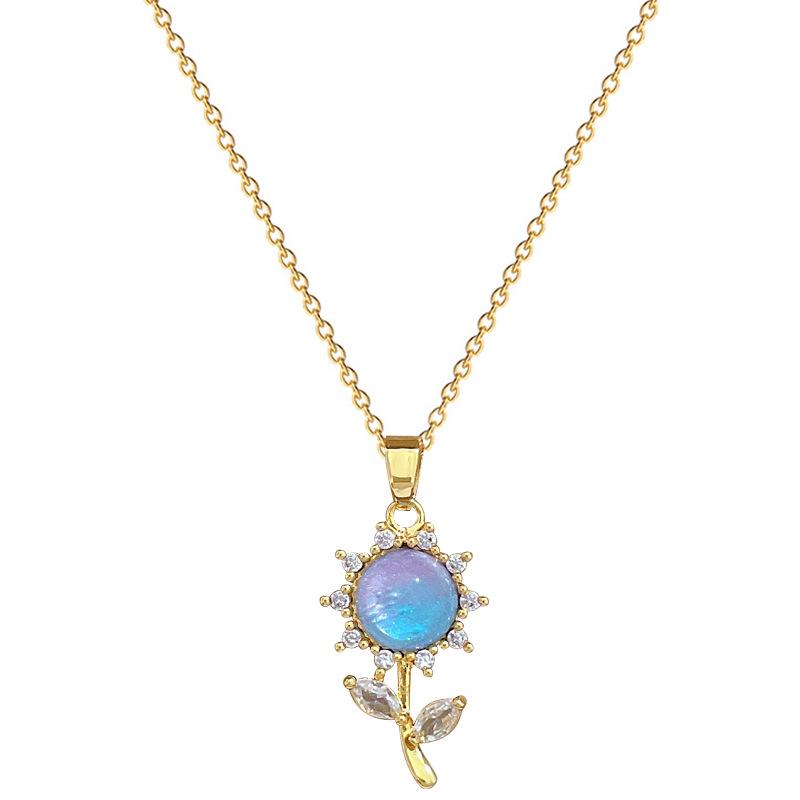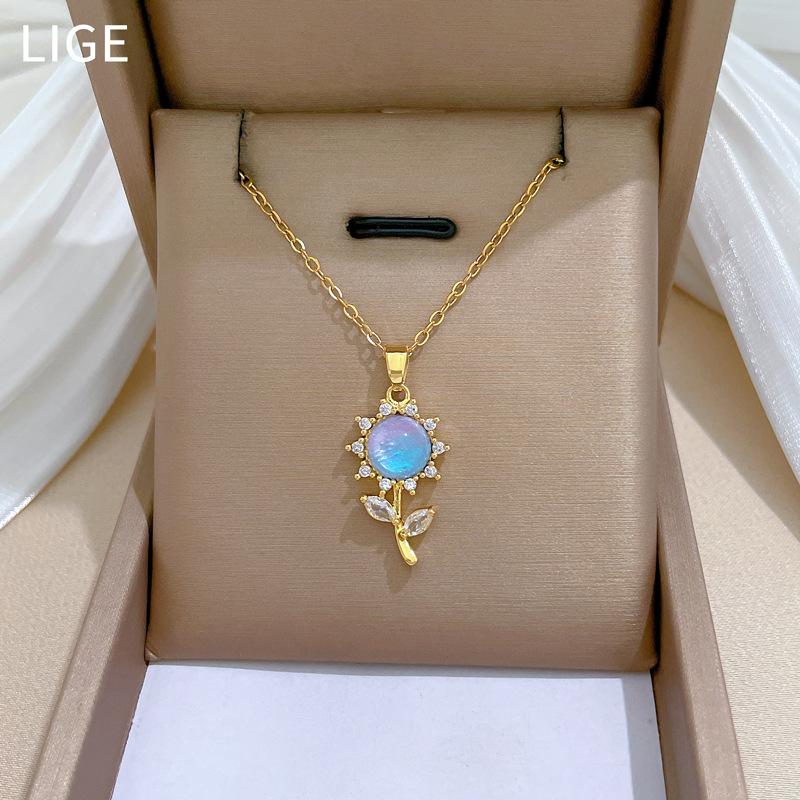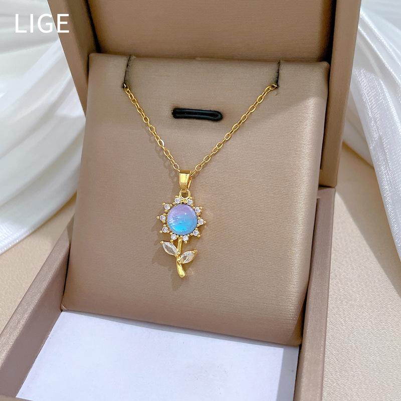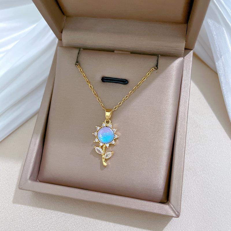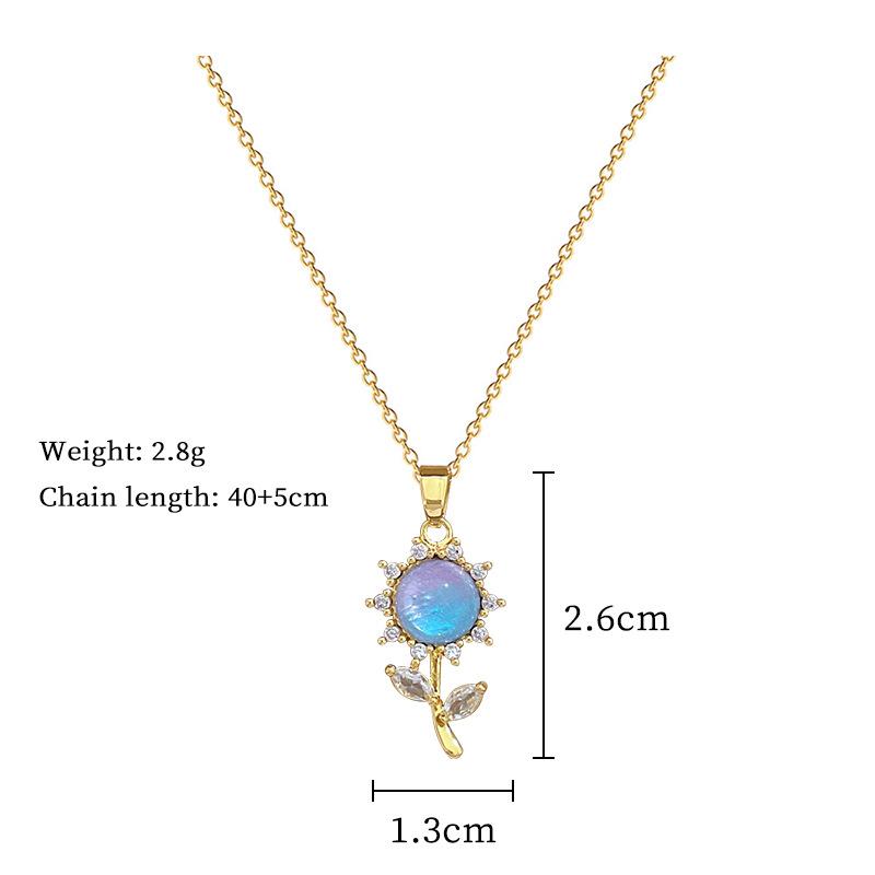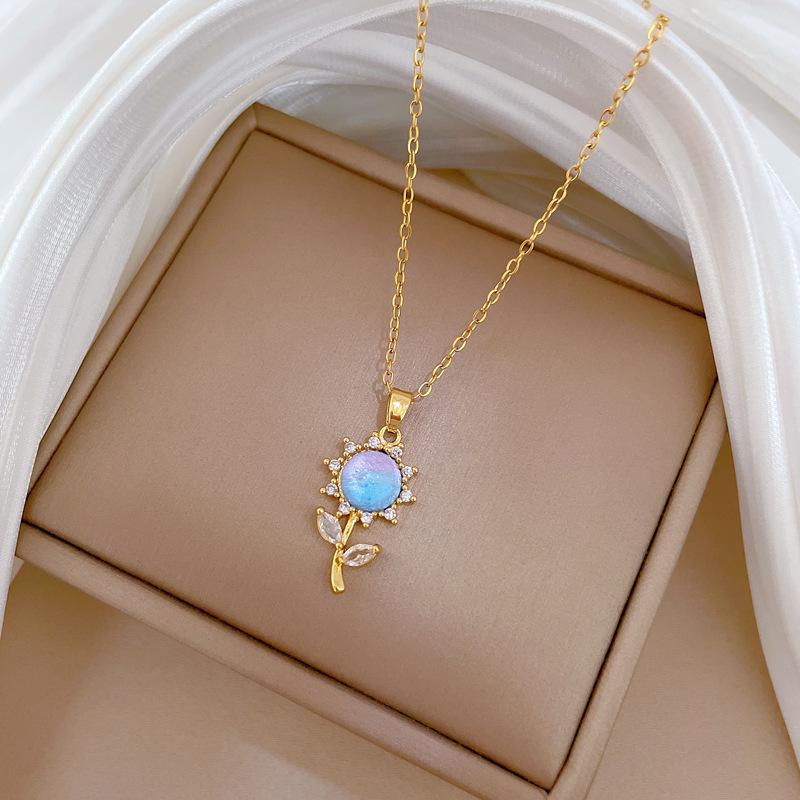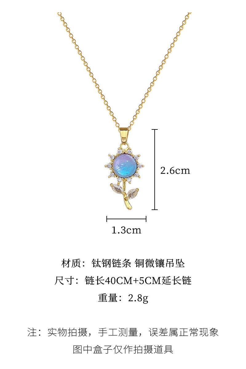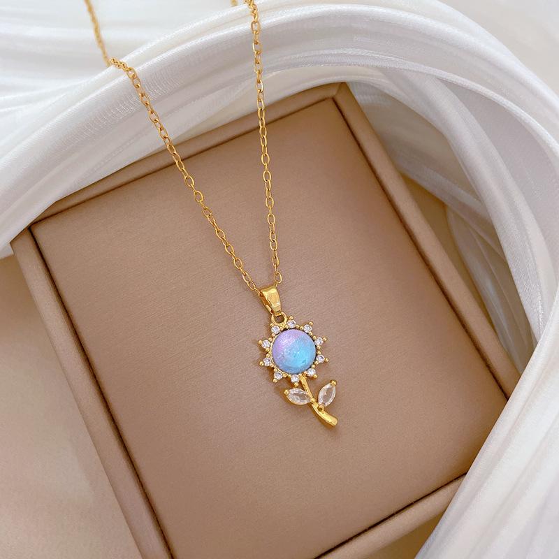[Acero de titanio] Elegante collar de diamantes con luz de girasol colorido para mujer, cadena de clavícula combinable, cadena de acero de titanio.