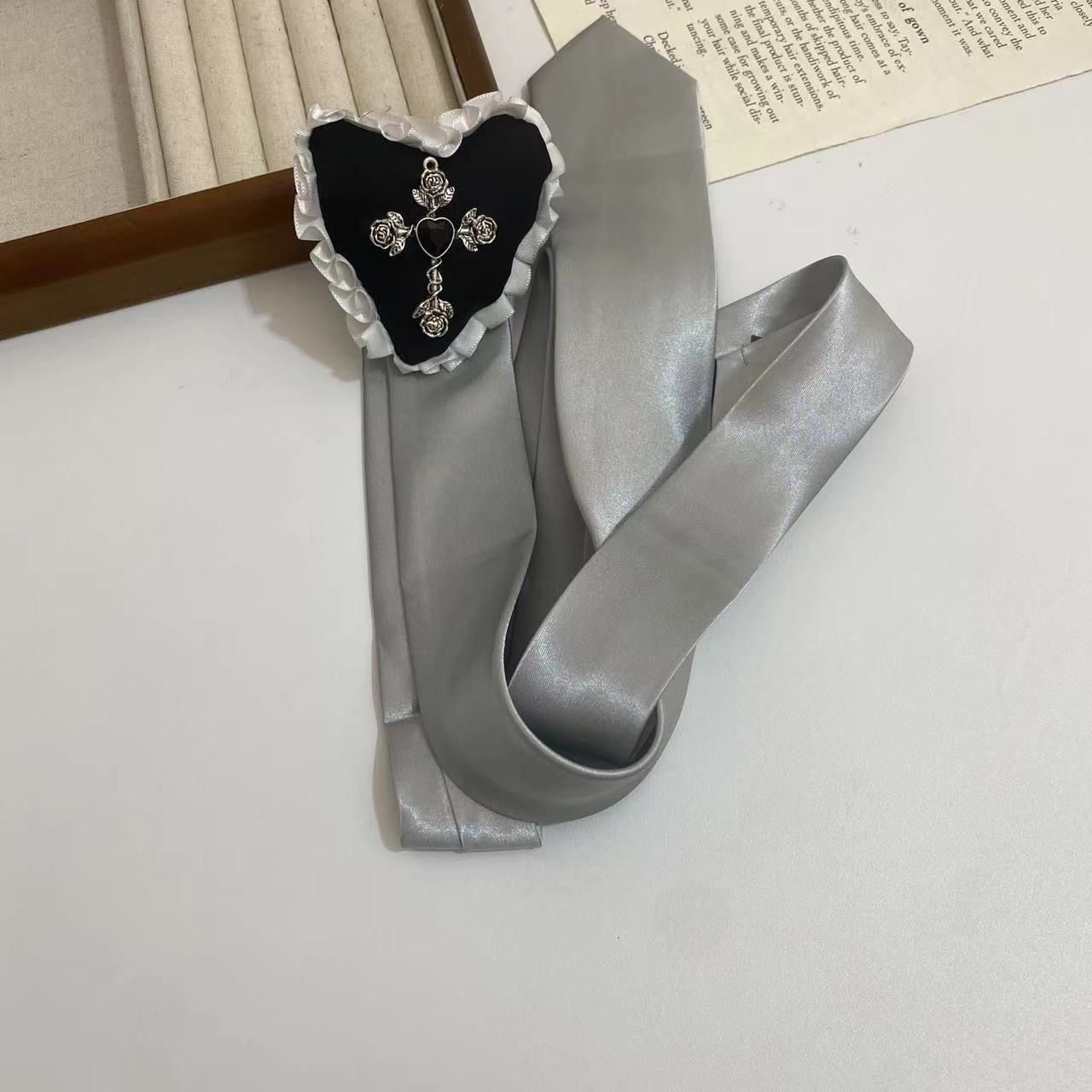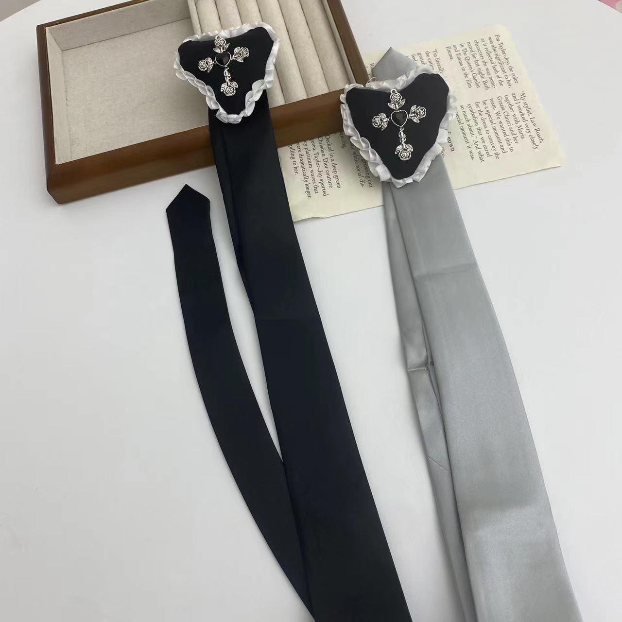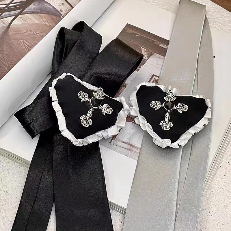 Collar largo ajustable con cadena para suéter, con lazo fino y cruz de rosas vintage, de encaje, dulce y femenino