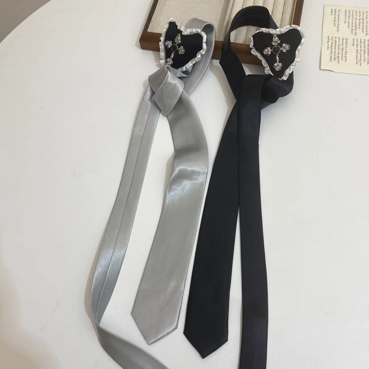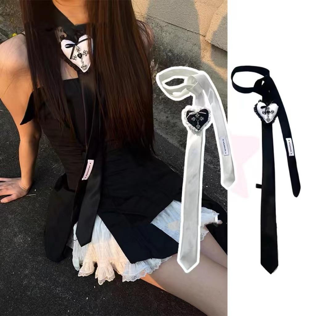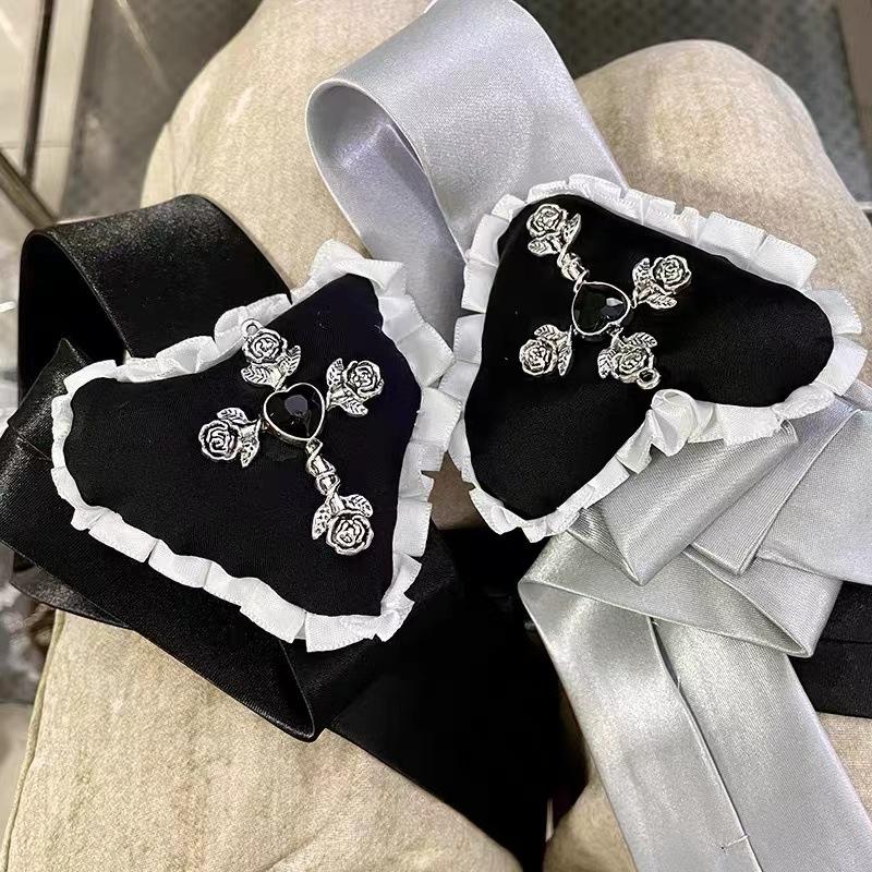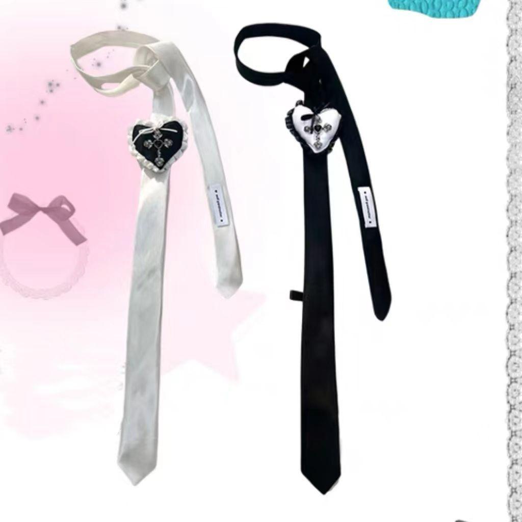 Collar largo ajustable con cadena para suéter, con lazo fino y cruz de rosas vintage, de encaje, dulce y femenino