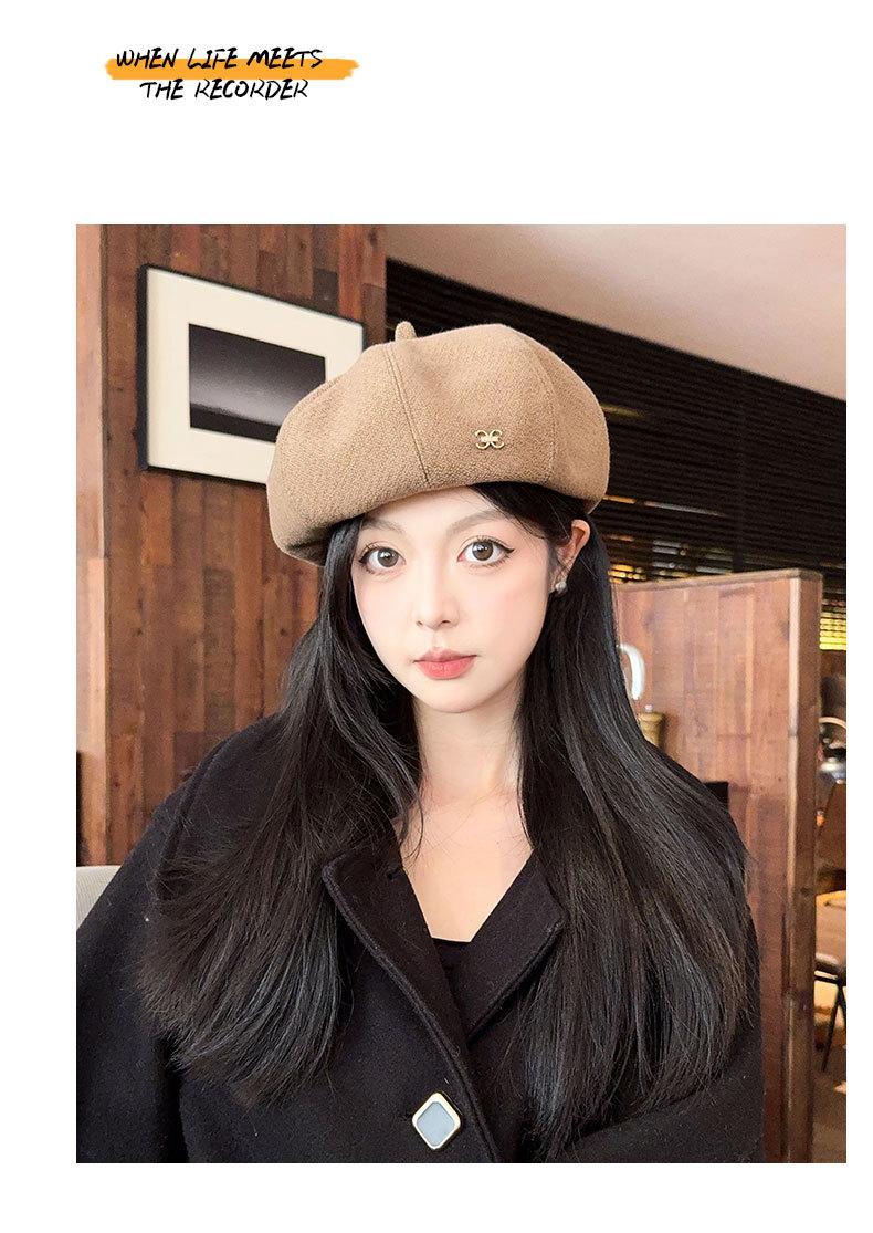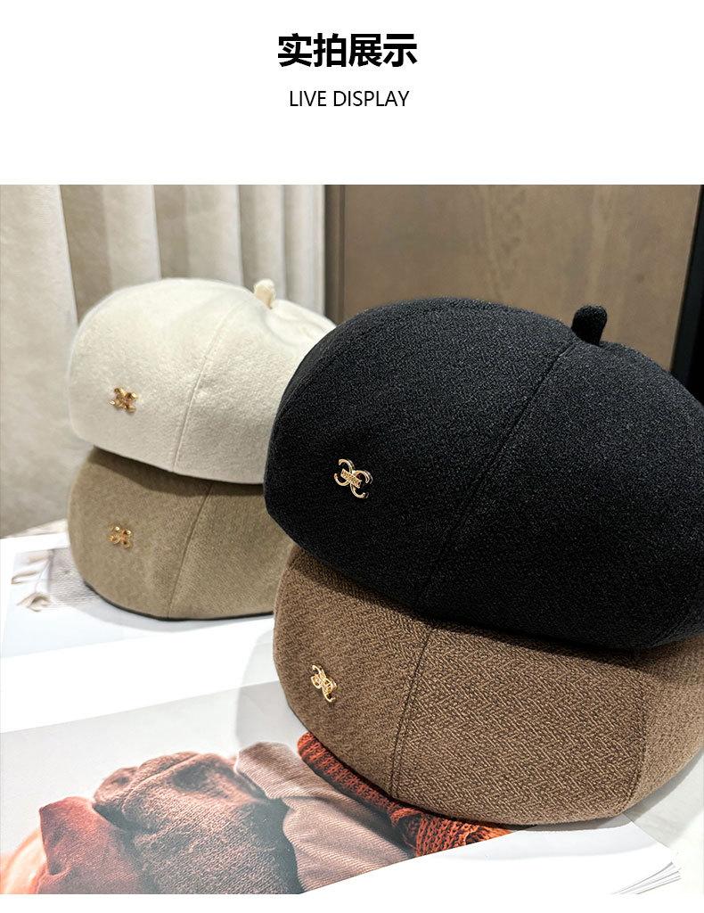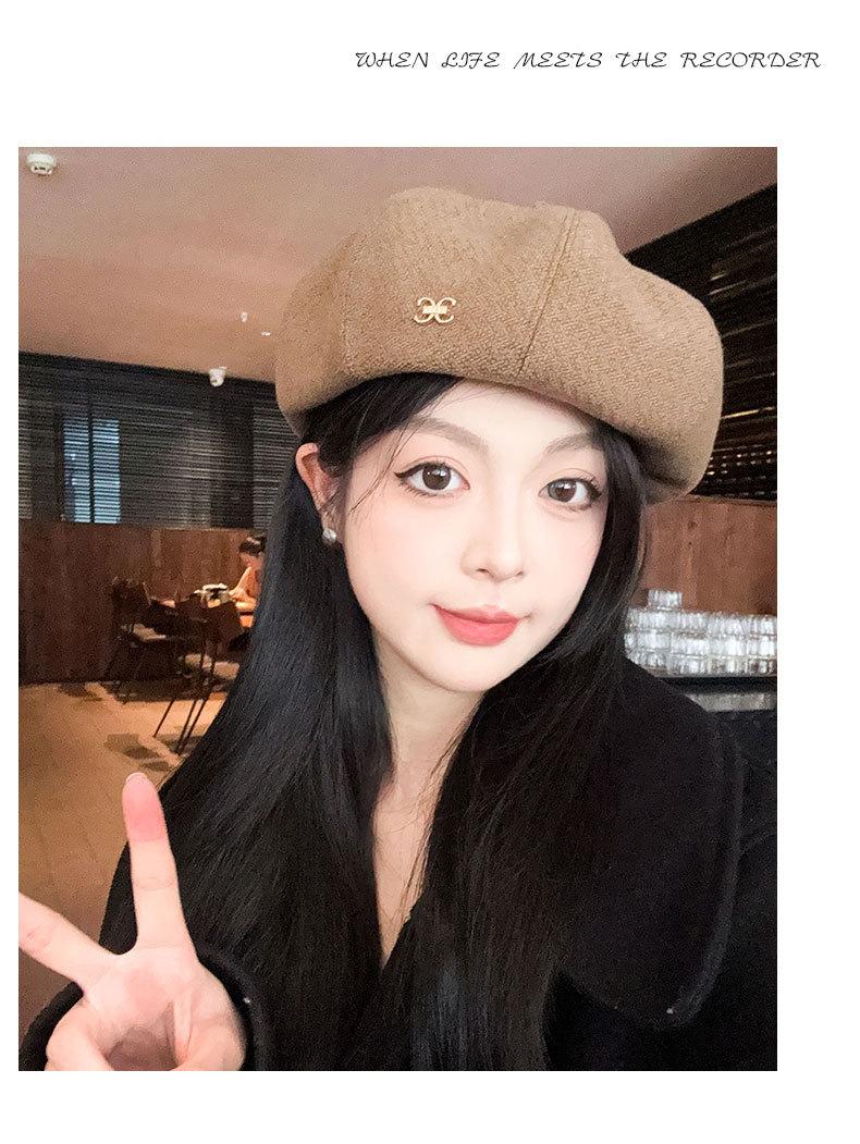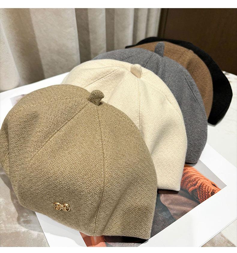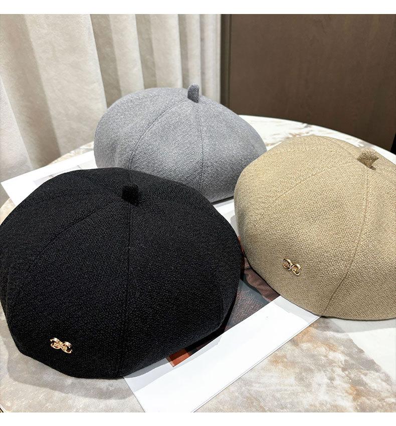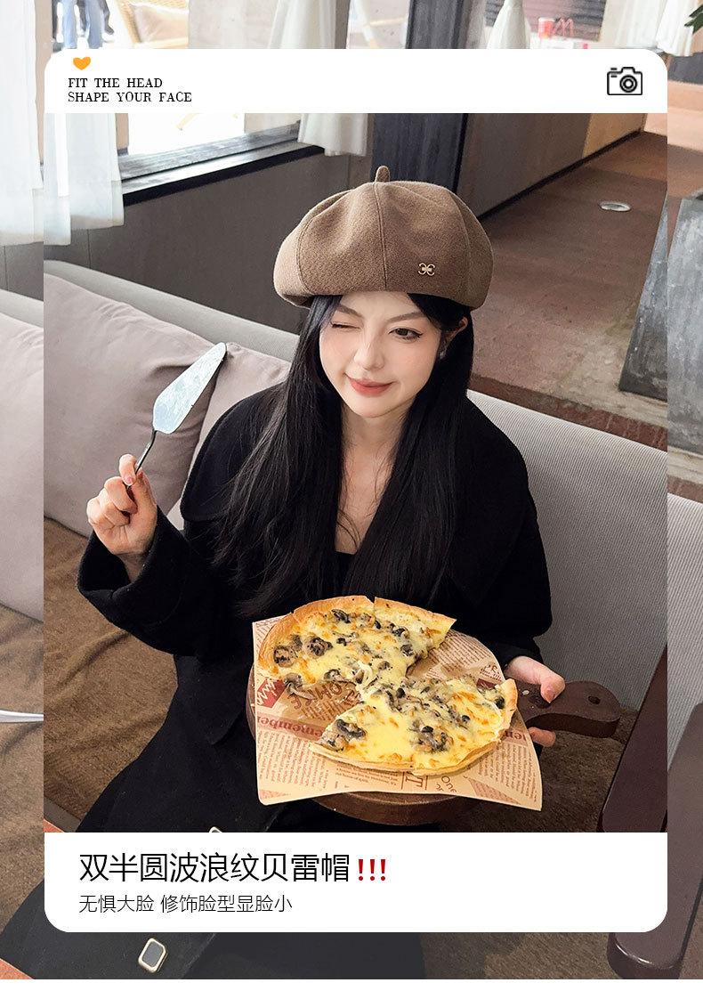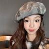Boina Nueva Otoño/Invierno 2025 para Mujer, Sombrero de Pintor con Patrón de Ondas Moderno y Versátil, Estilo Británico, Sombrero Calabaza Adelgazante para el Rostro