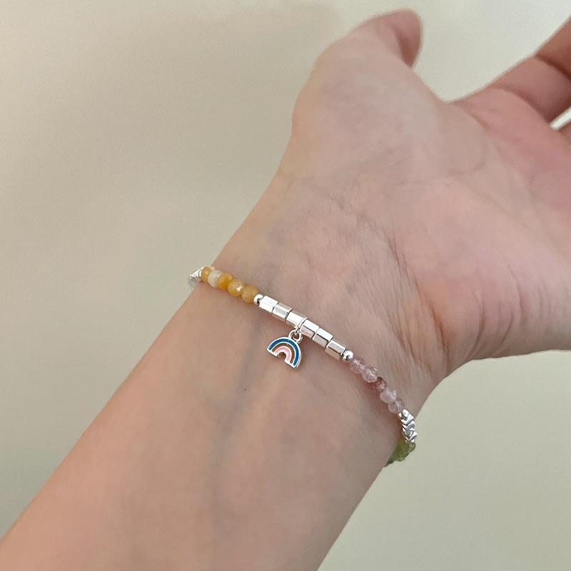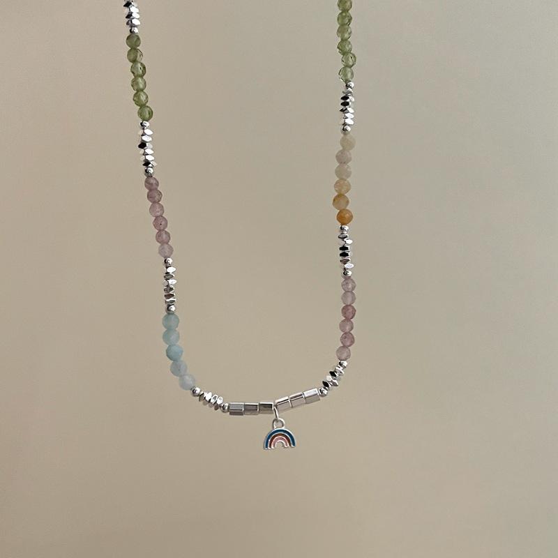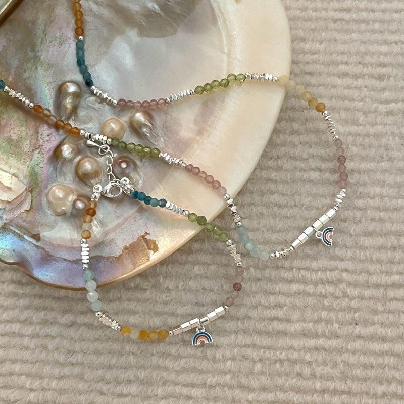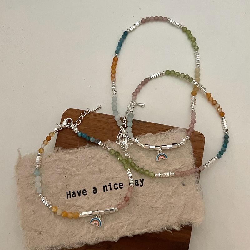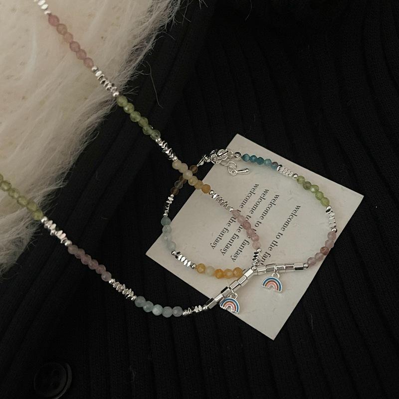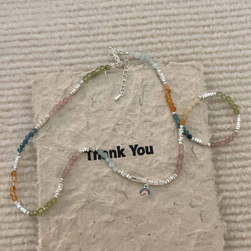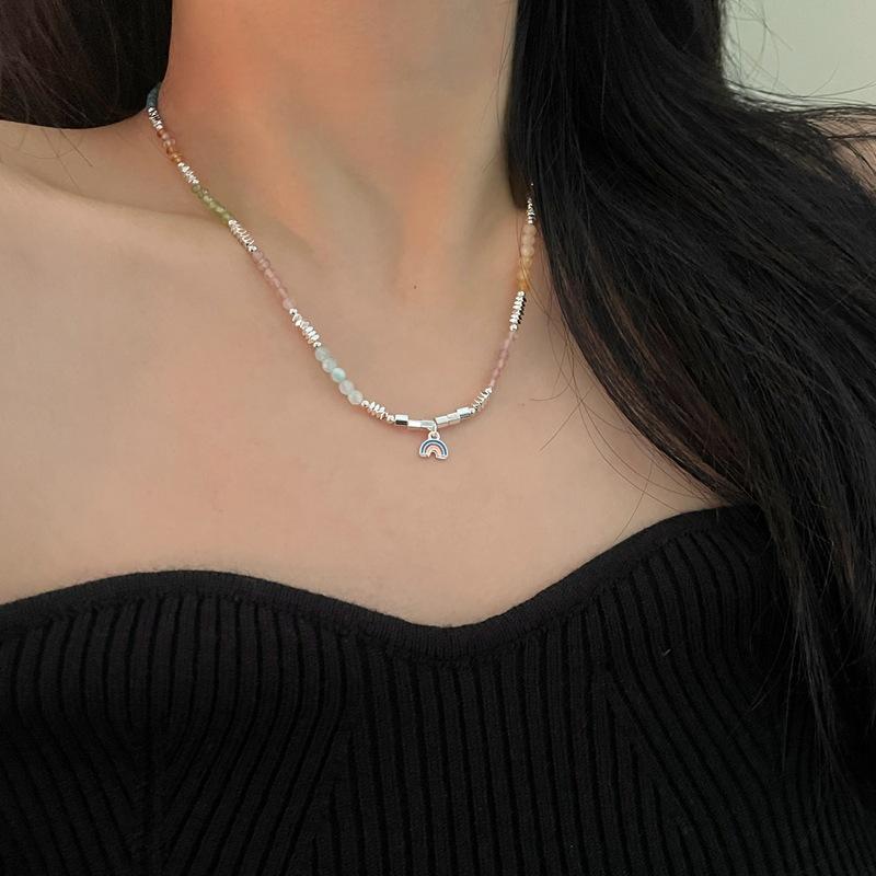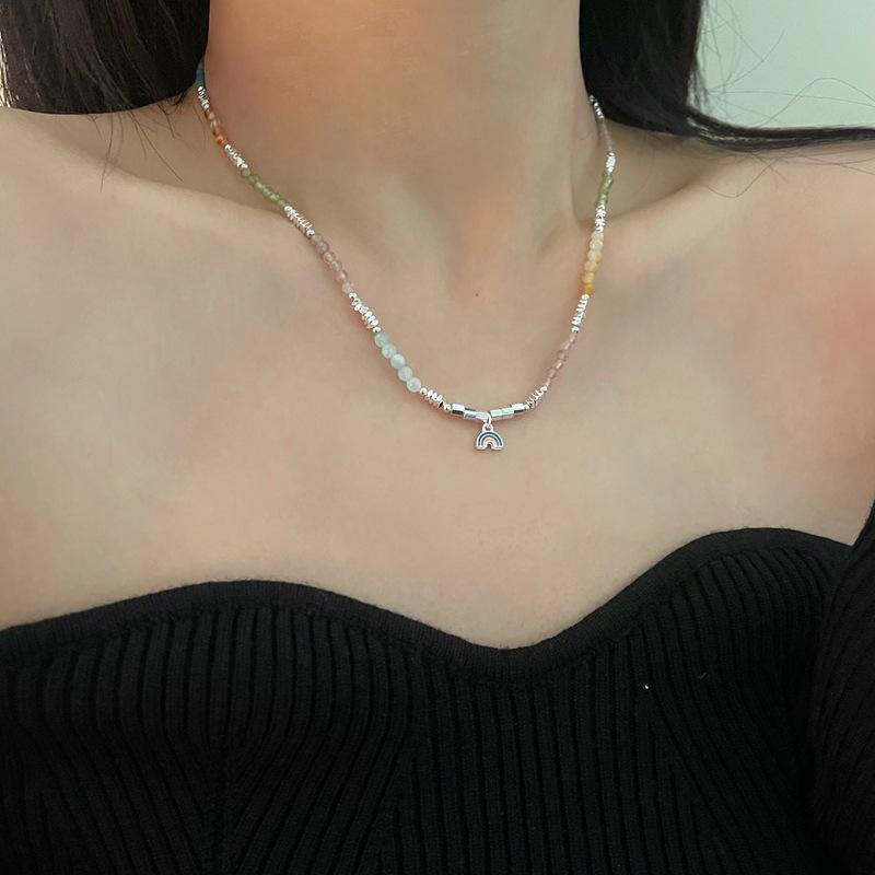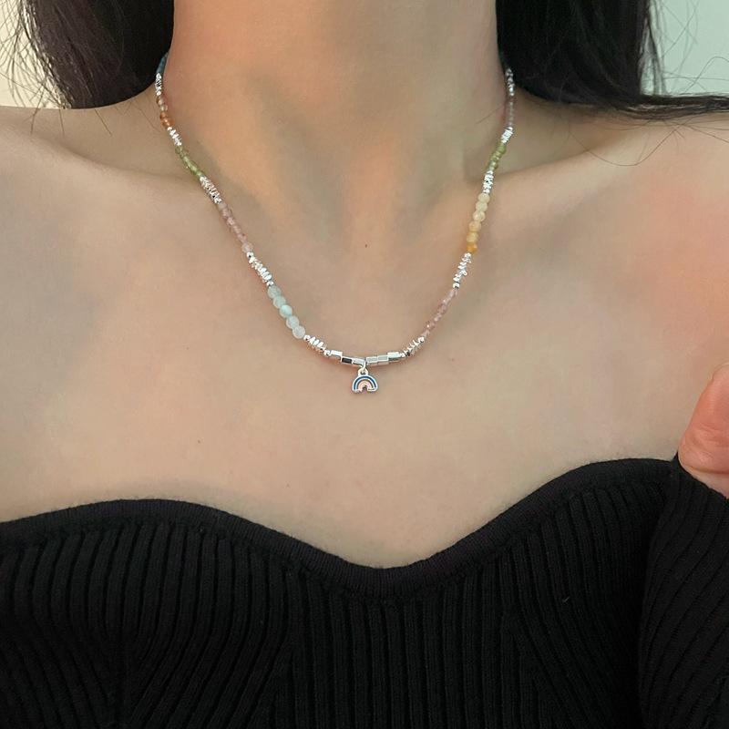 Collar plateado arcoíris con costuras de cuentas coloridas personalizadas, elegante cadena de clavícula de nicho, accesorios de moda versátiles de alta gama