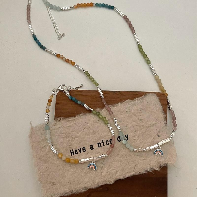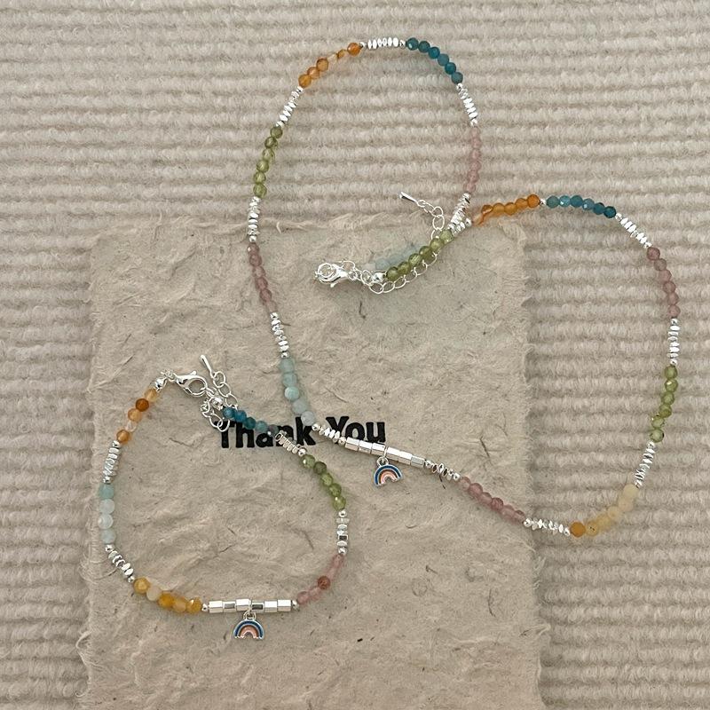 Rainbow beaded bracelet, Rainbow beaded necklace