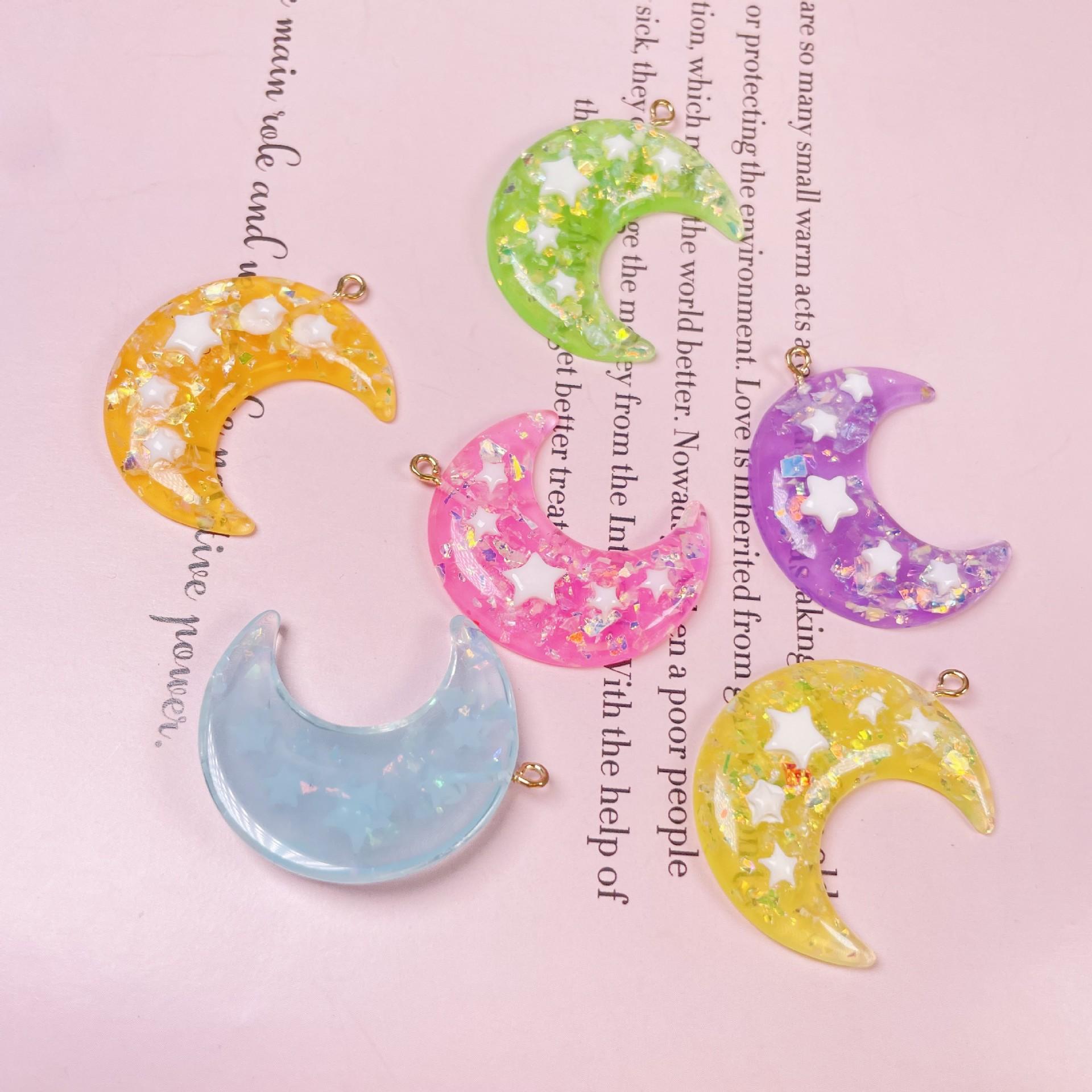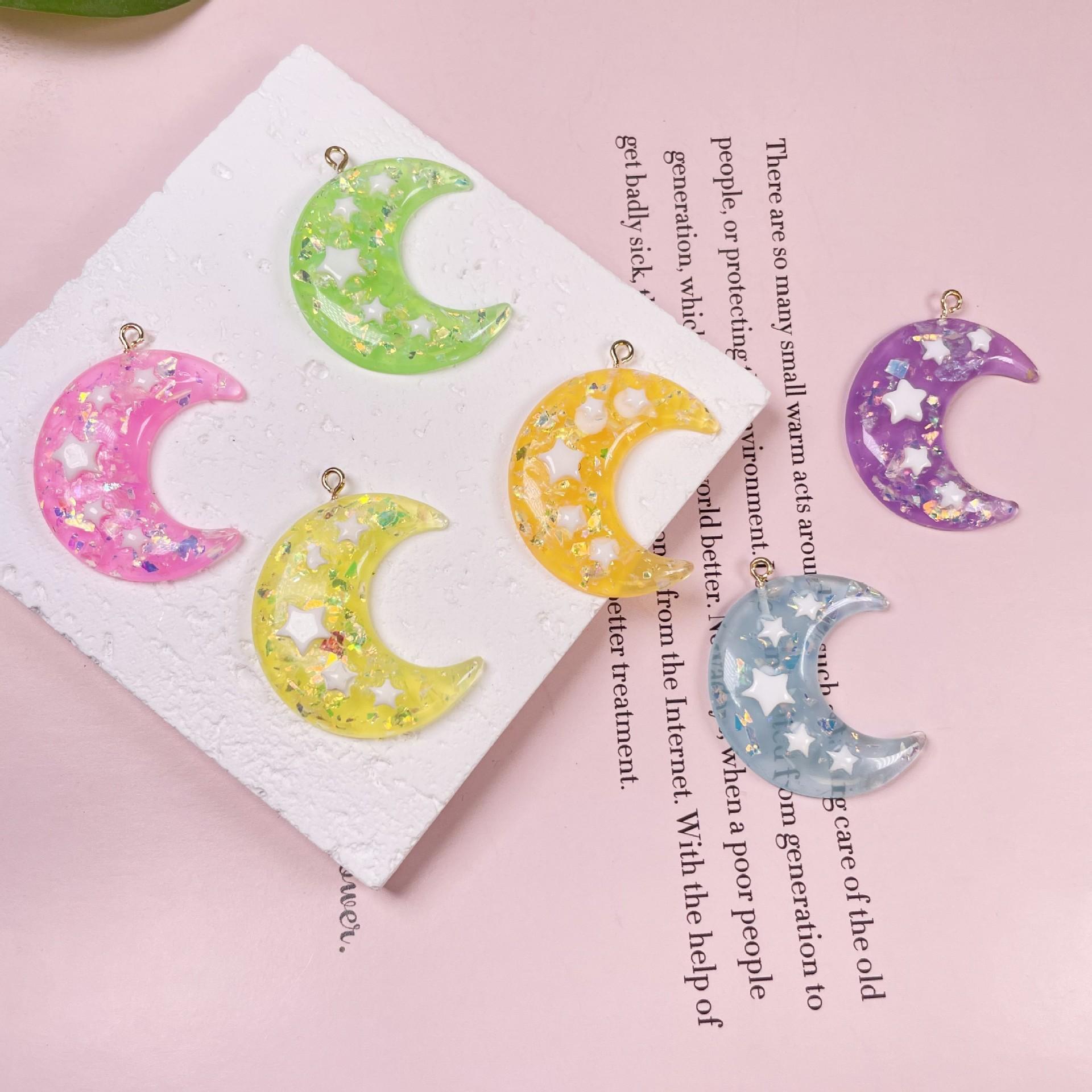 Accesorios de bricolaje Resina Simulación Luna Estrella Pendientes Pendientes Colgante Collar Colgante Llavero Colgante