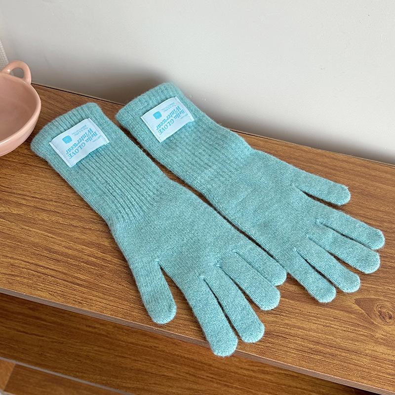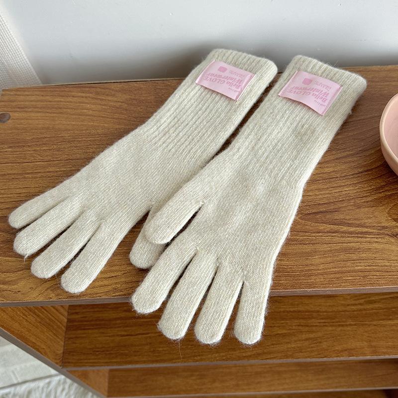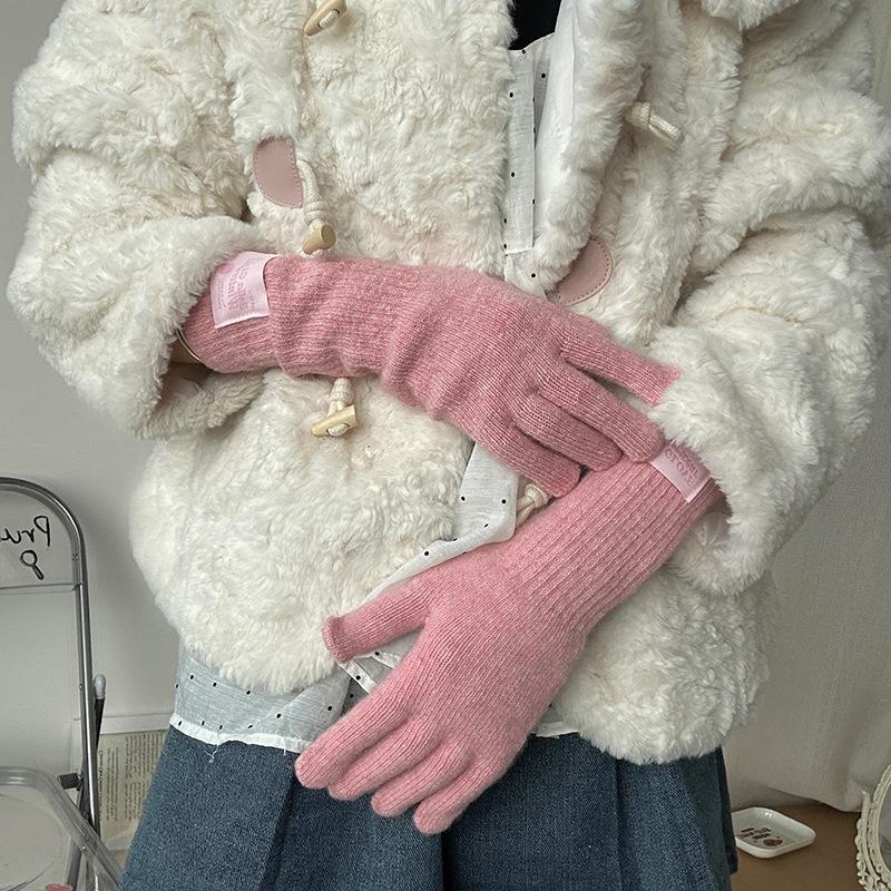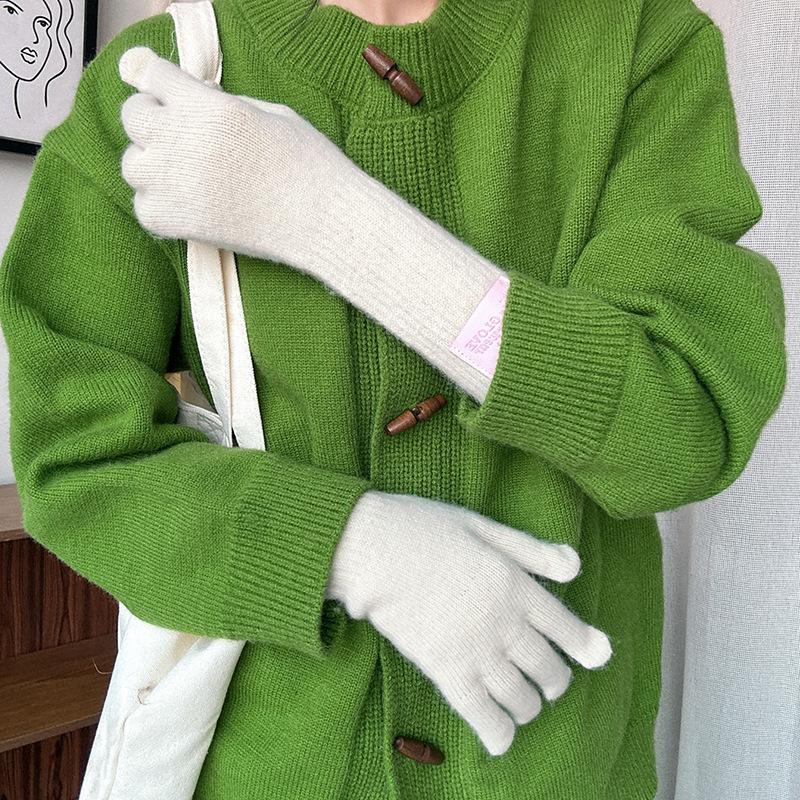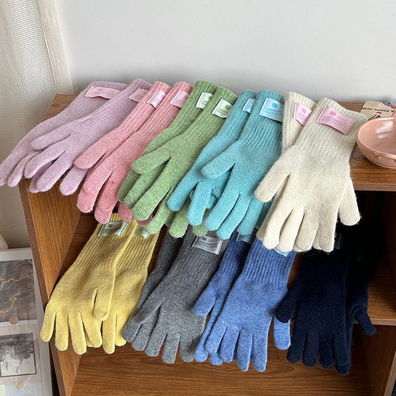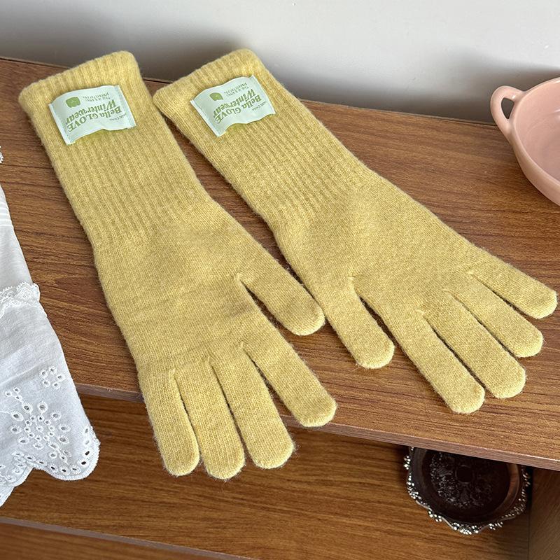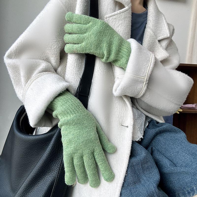 Guantes largos de punto color caramelo para mujer, de lana de cinco dedos, gruesos, cálidos, con dedos extra para pantalla táctil, de lana, para otoño e invierno, ciclismo y conducción.