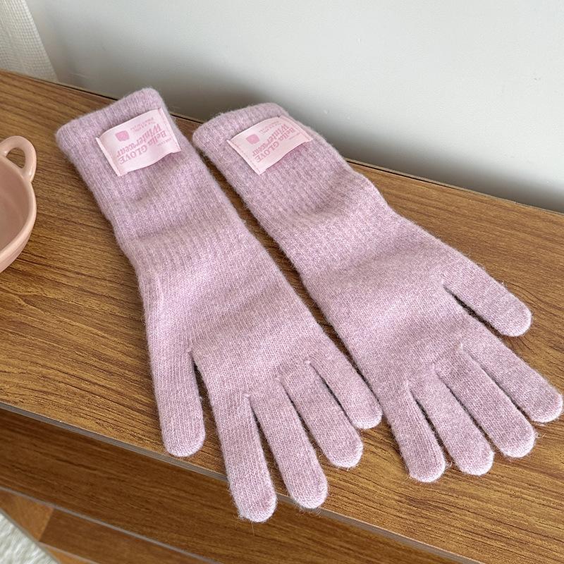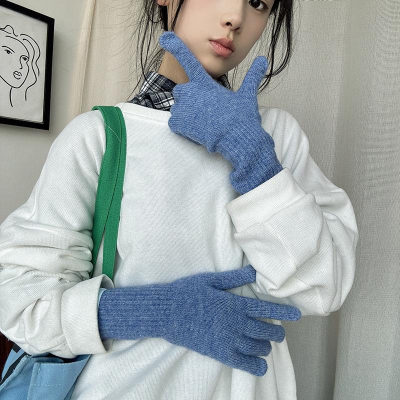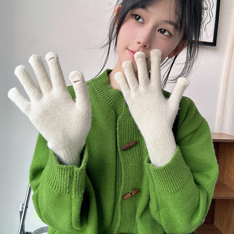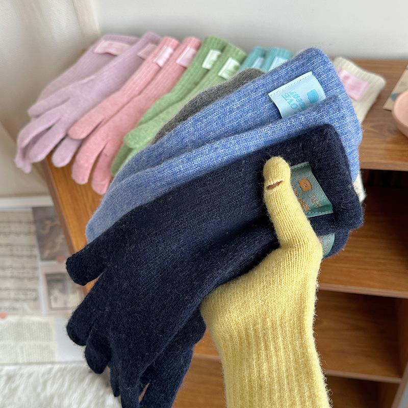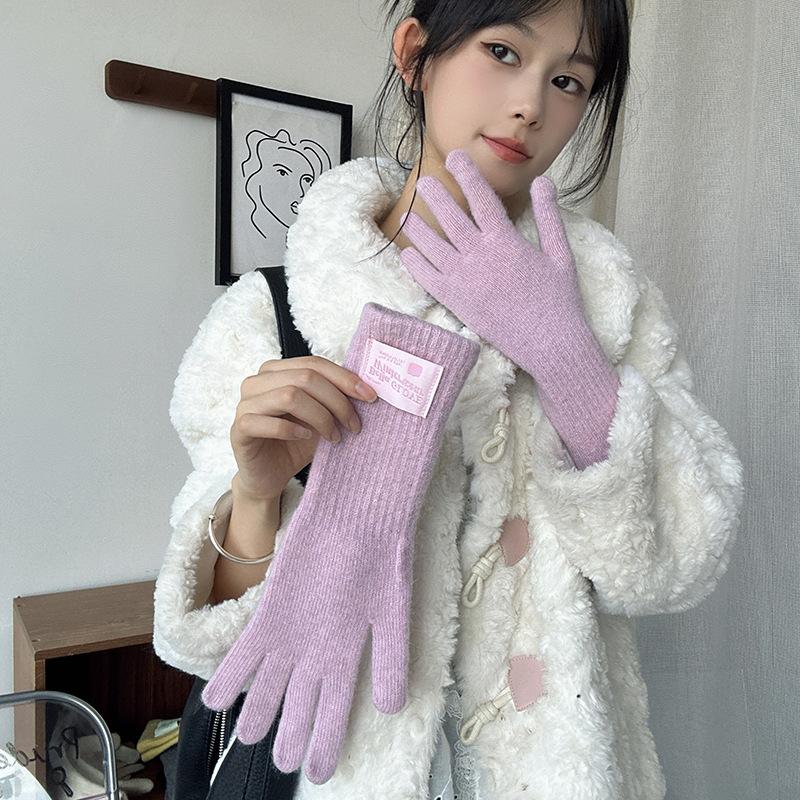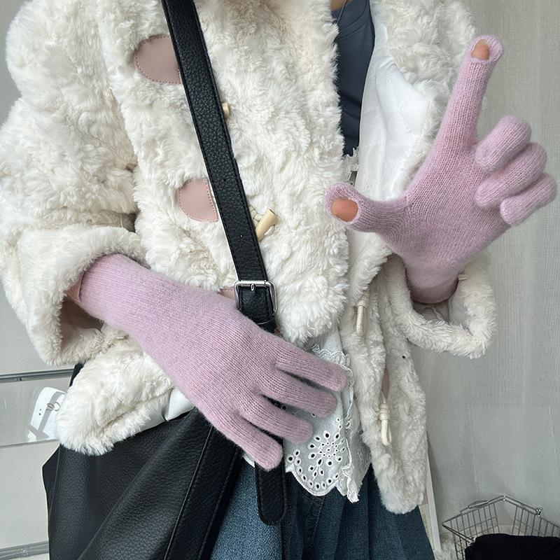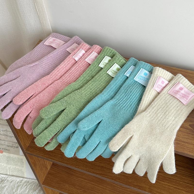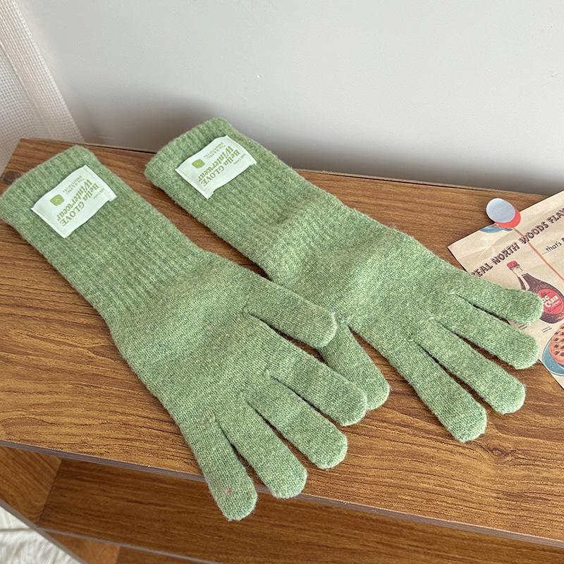 Guantes largos de punto color caramelo para mujer, de lana de cinco dedos, gruesos, cálidos, con dedos extra para pantalla táctil, de lana, para otoño e invierno, ciclismo y conducción.