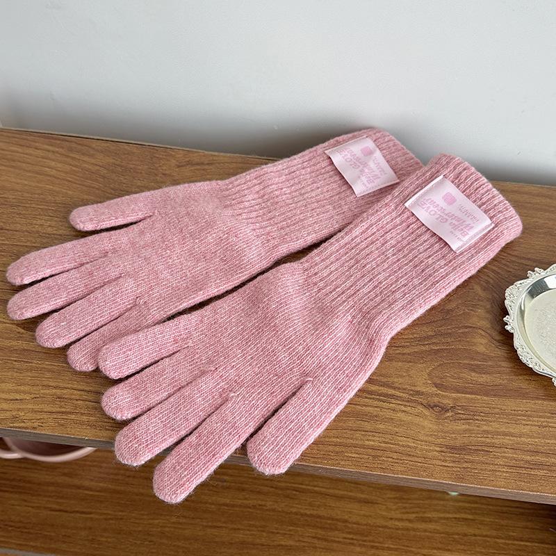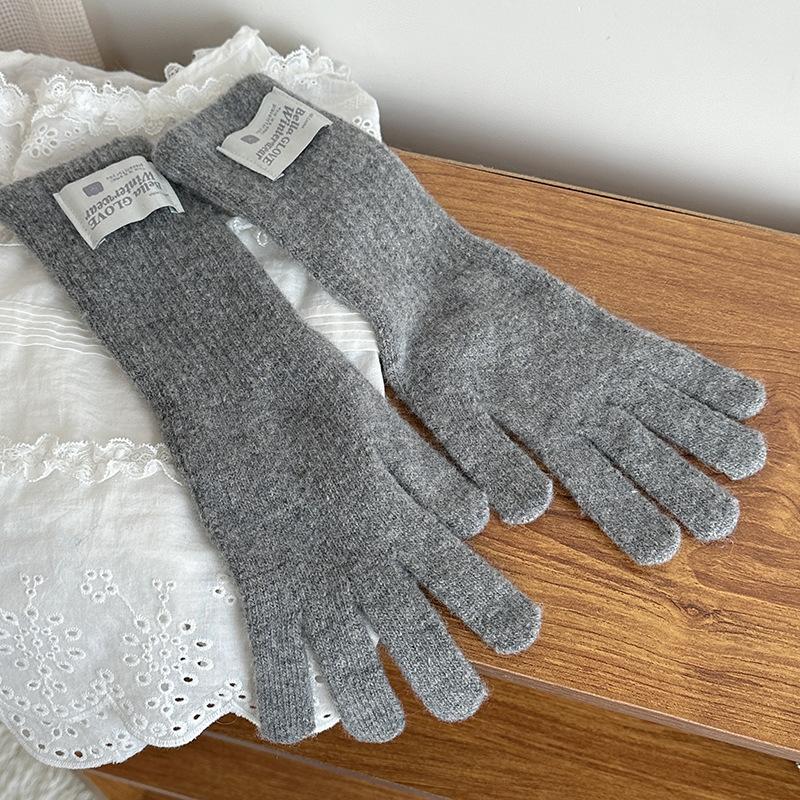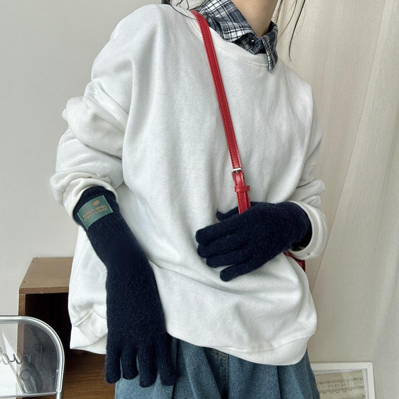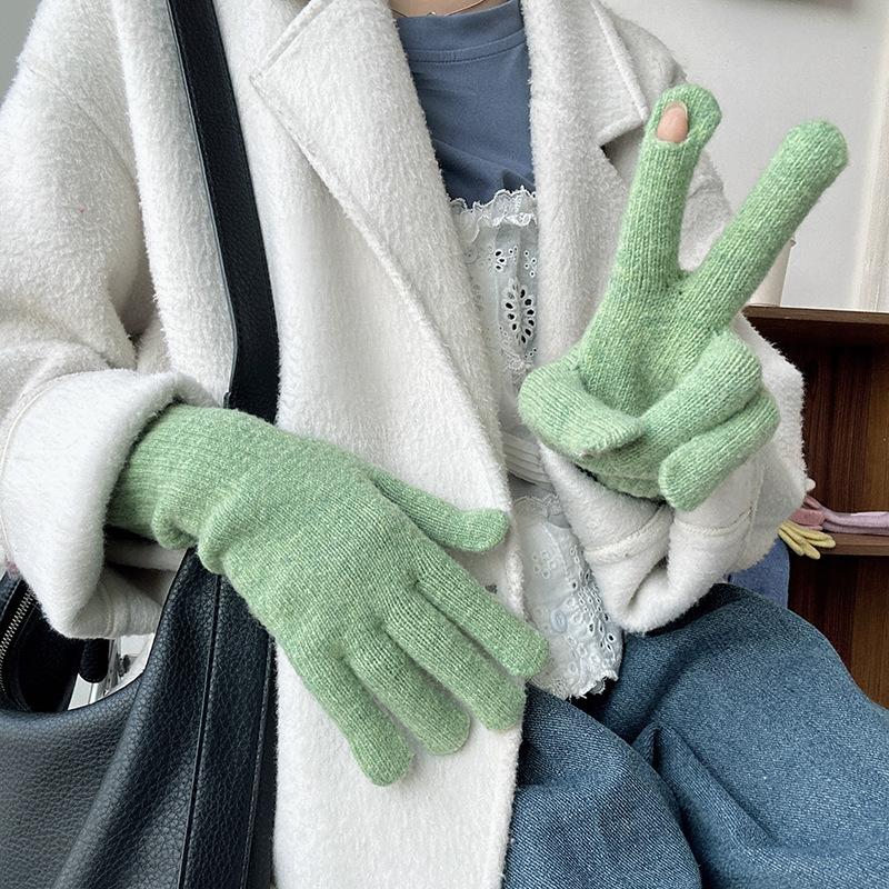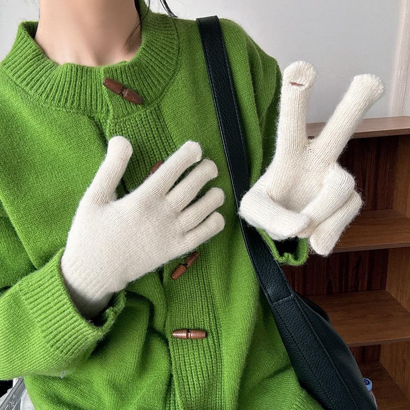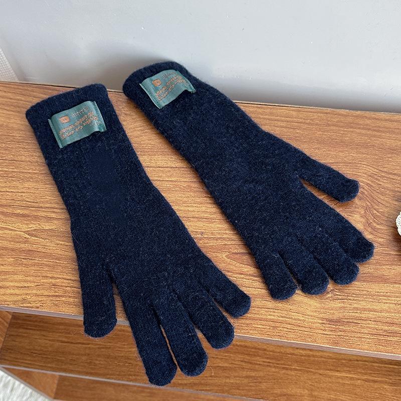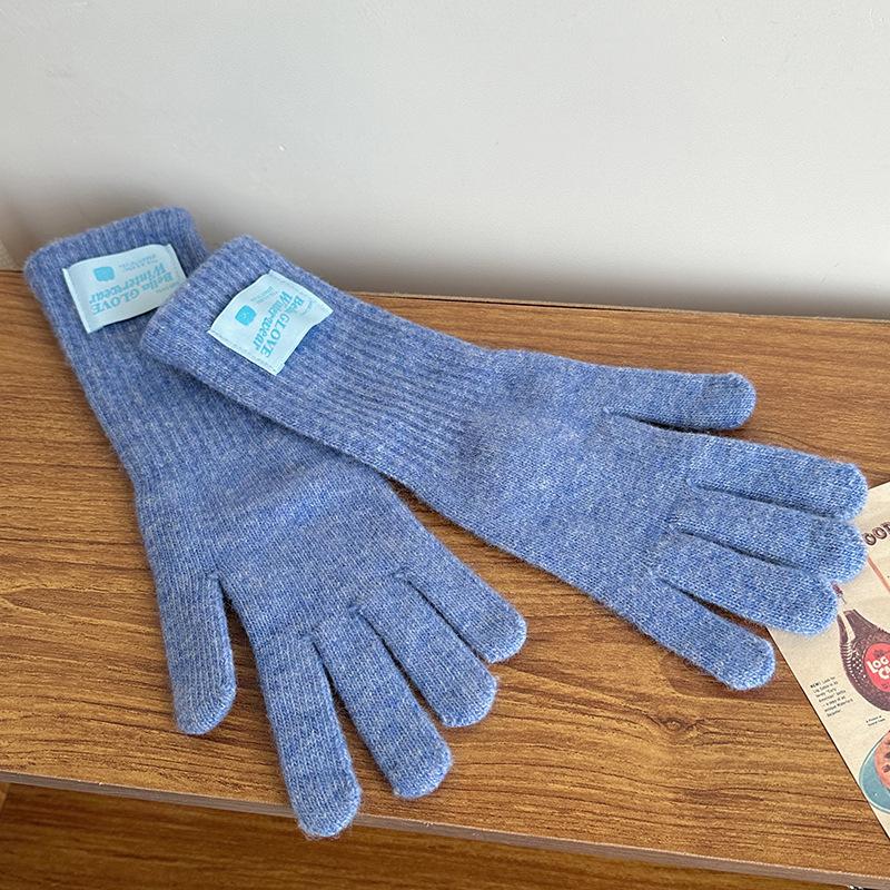 Guantes largos de punto color caramelo para mujer, de lana de cinco dedos, gruesos, cálidos, con dedos extra para pantalla táctil, de lana, para otoño e invierno, ciclismo y conducción.