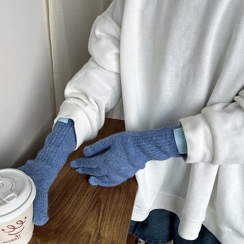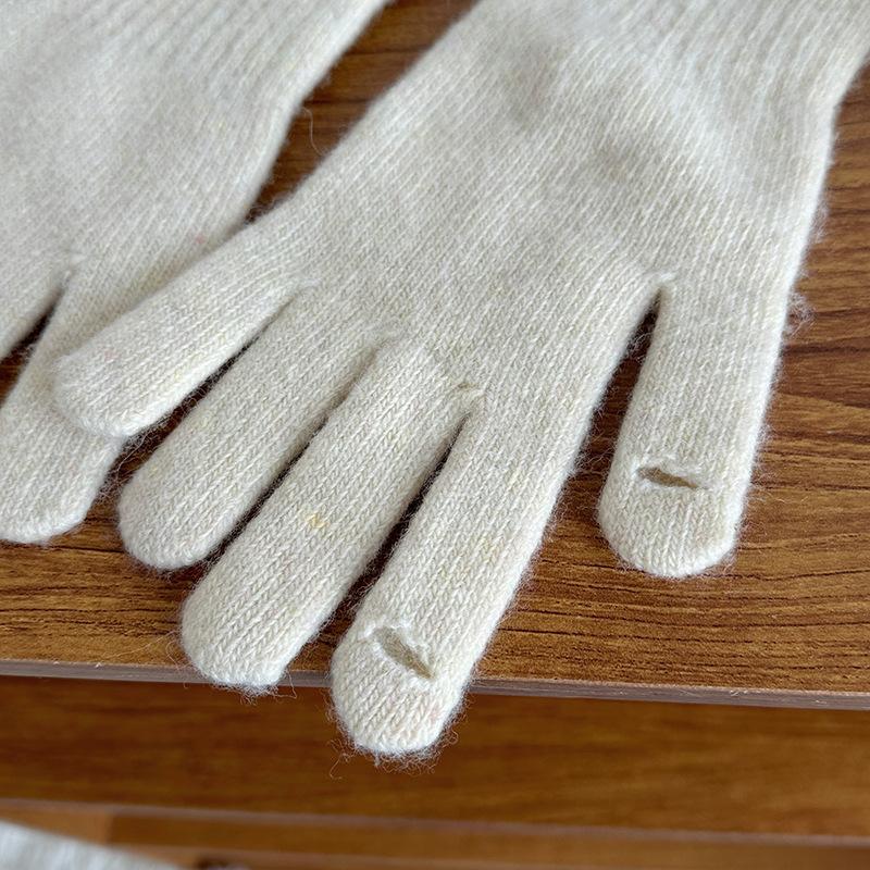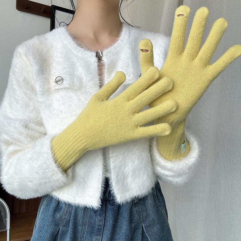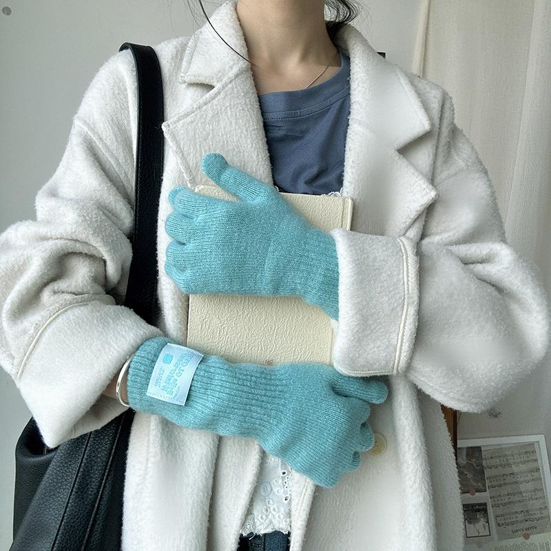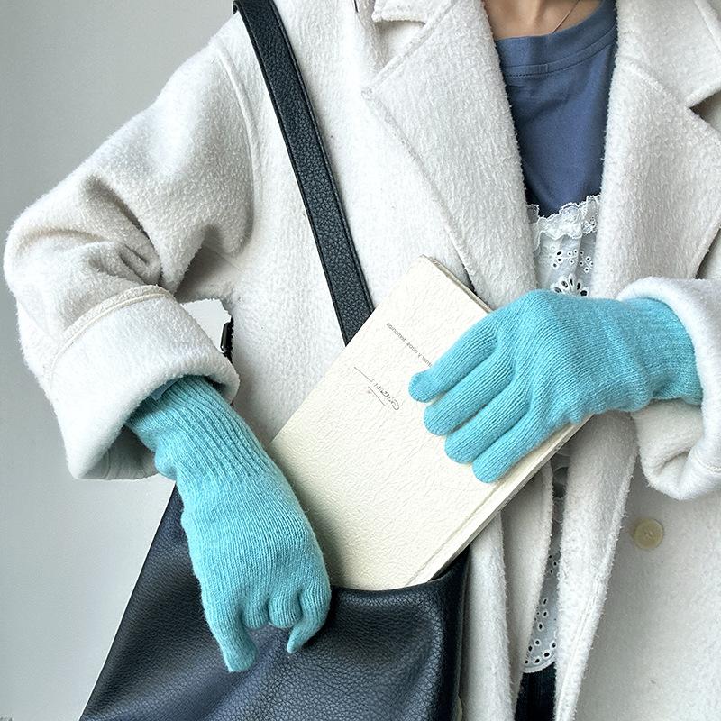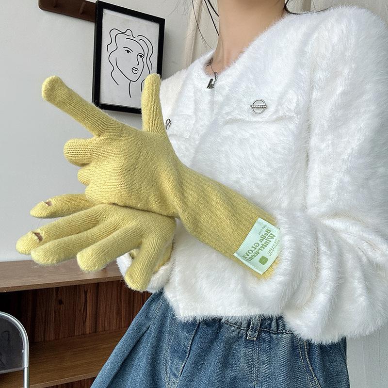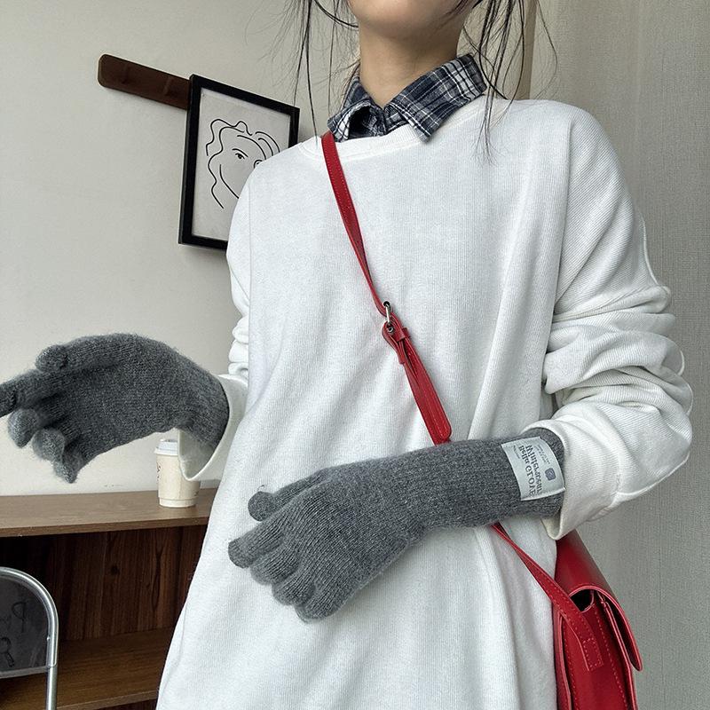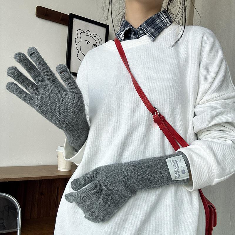 Guantes largos de punto color caramelo para mujer, de lana de cinco dedos, gruesos, cálidos, con dedos extra para pantalla táctil, de lana, para otoño e invierno, ciclismo y conducción.