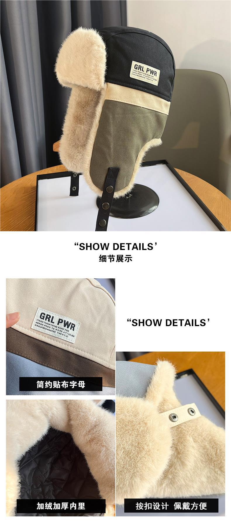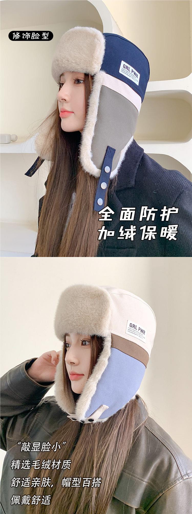 Gorro Lei Feng de estilo coreano con bloques de color para hombre y mujer en invierno, grueso, cálido, versátil, con protección auditiva, ideal para viajes al aire libre, esquí y piloto.
