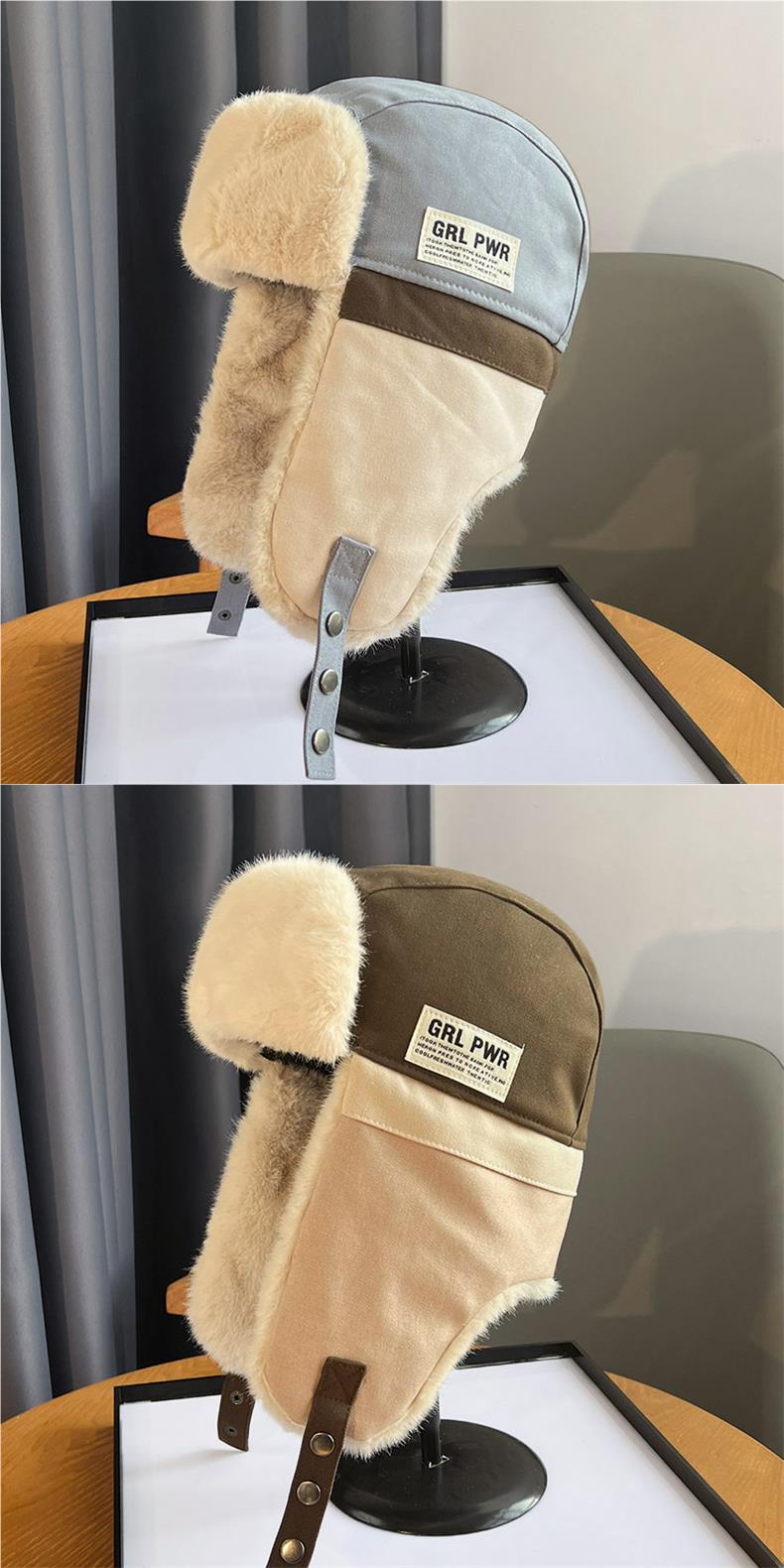 Color block thunder cap--beige, Color block thunder cap--brown, Color block thunder cap--light blue, Color blo...