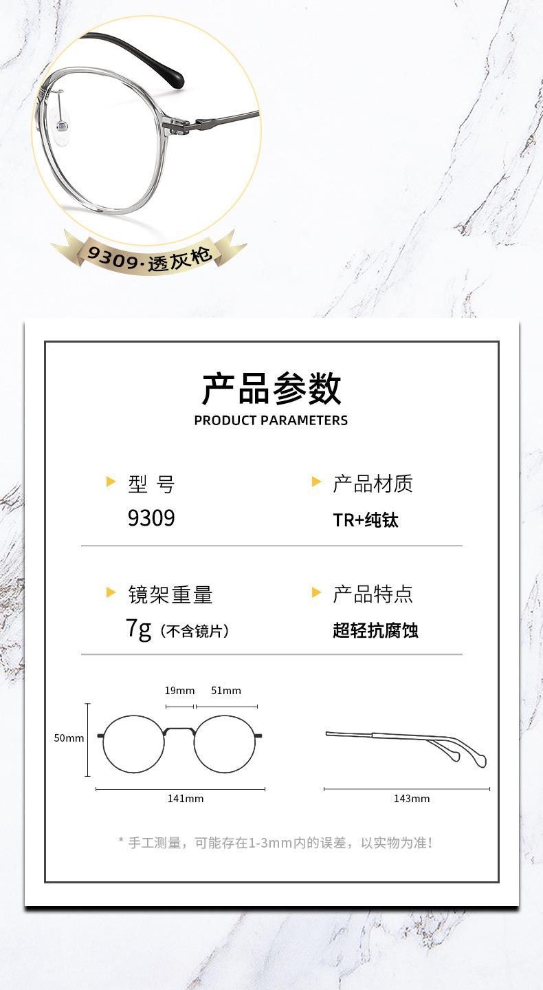 Armazón de gafas de titanio puro Danyang ultraligero armazón ovalado gafas de mujer sencillas 9309 venta al por mayor retro miopía alto sentido