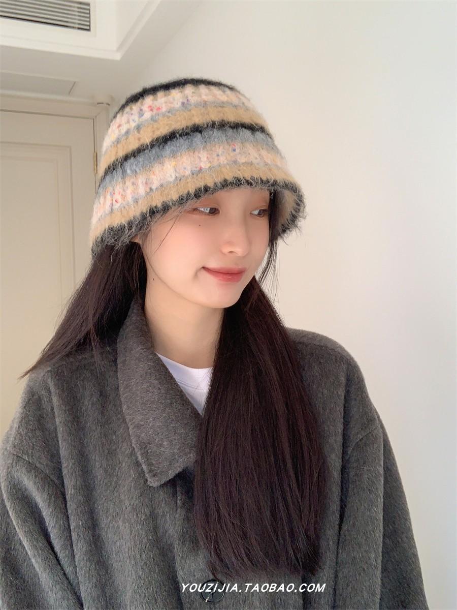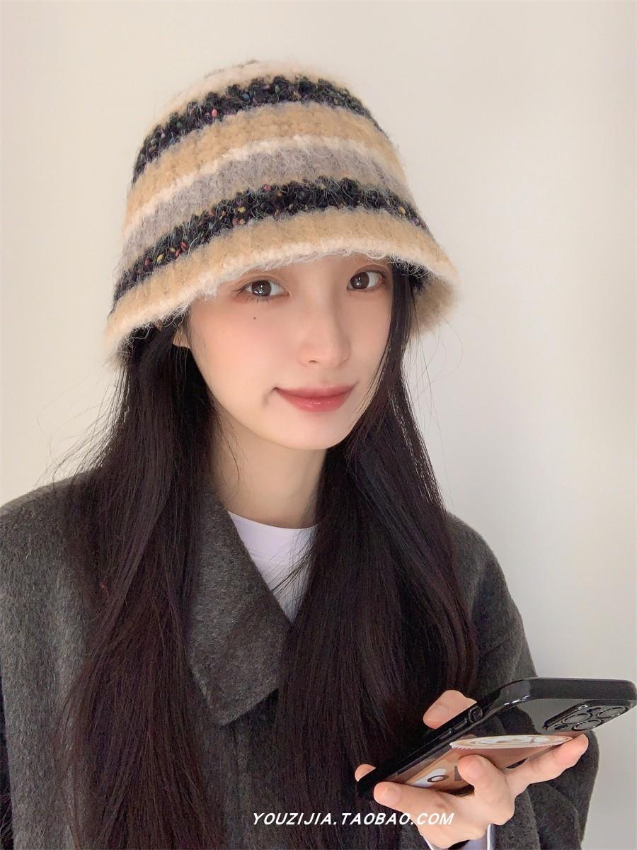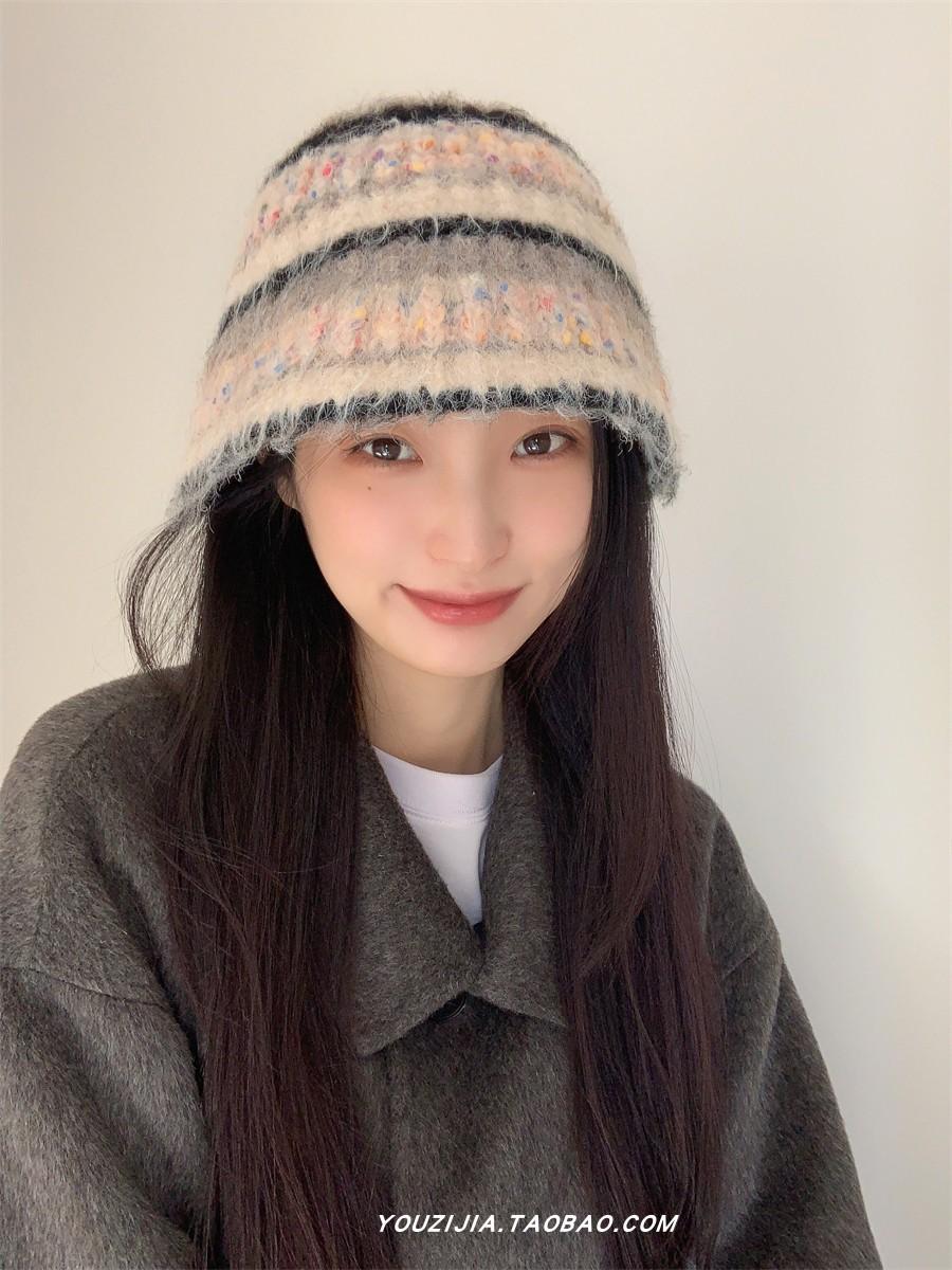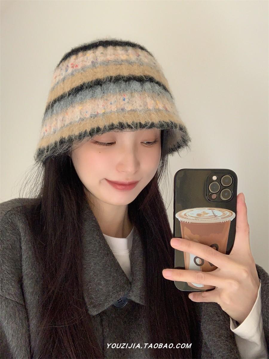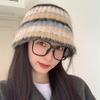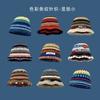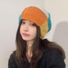Gorro de punto de felpa con costuras de colores contrastantes para mujer, nuevo estilo coreano, moda de otoño e invierno, elegante gorro de pescador de lana con orejas