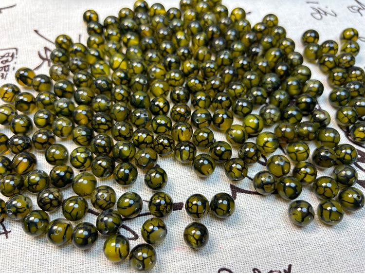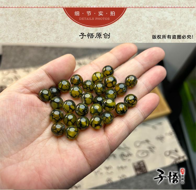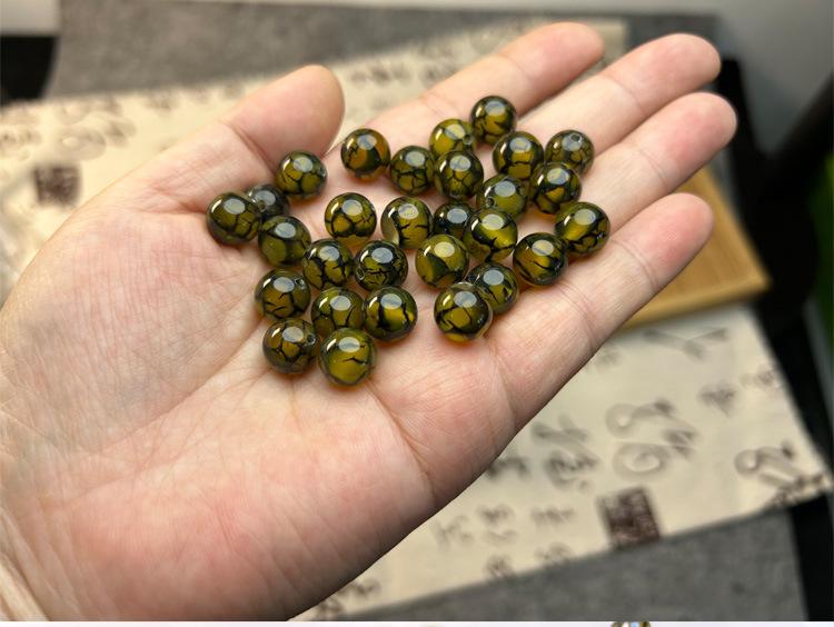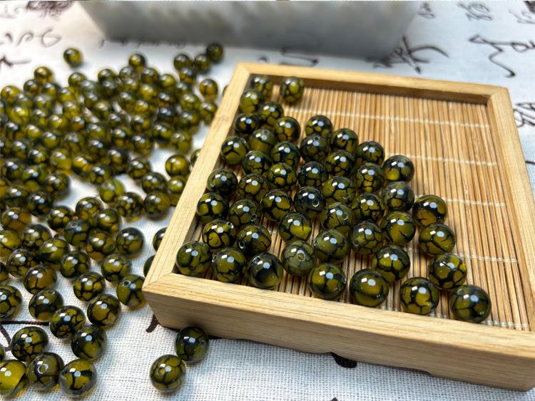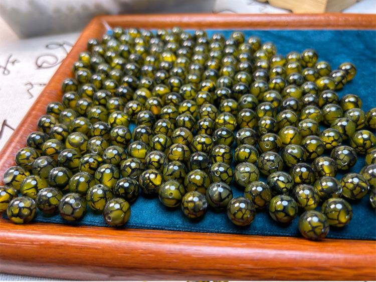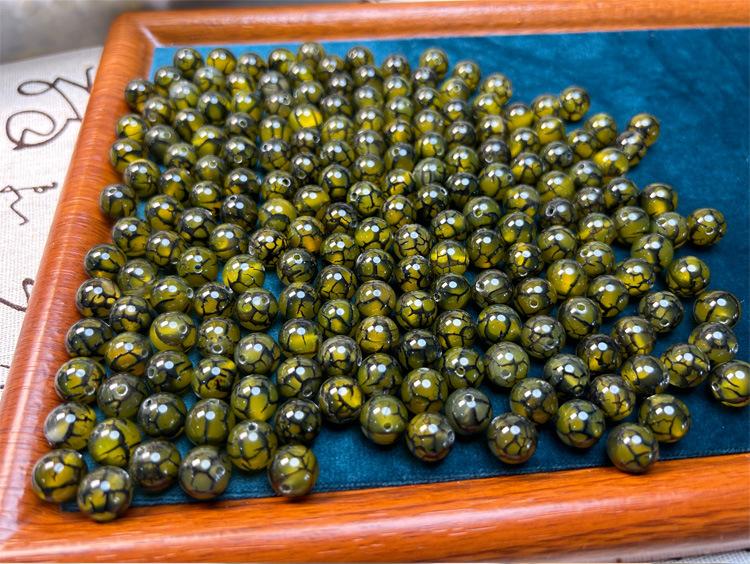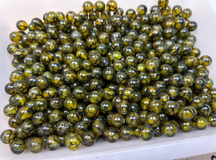 Suministro de primera mano del fabricante: Material brasileño, patrón de escamas de dragón, ágata amarilla y verde, cuentas redondas de 10 mm, cuentas sueltas, bricolaje, venta al por mayor