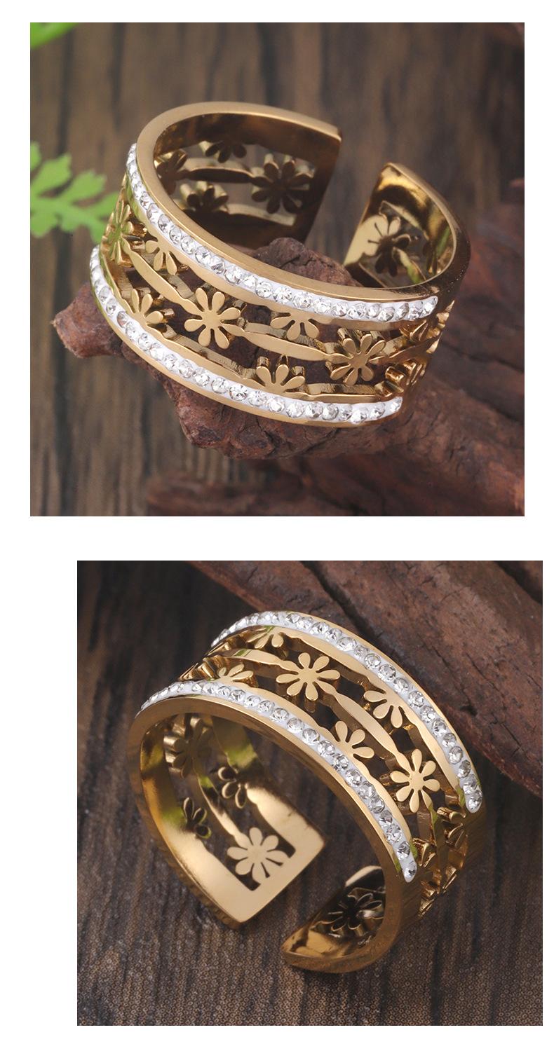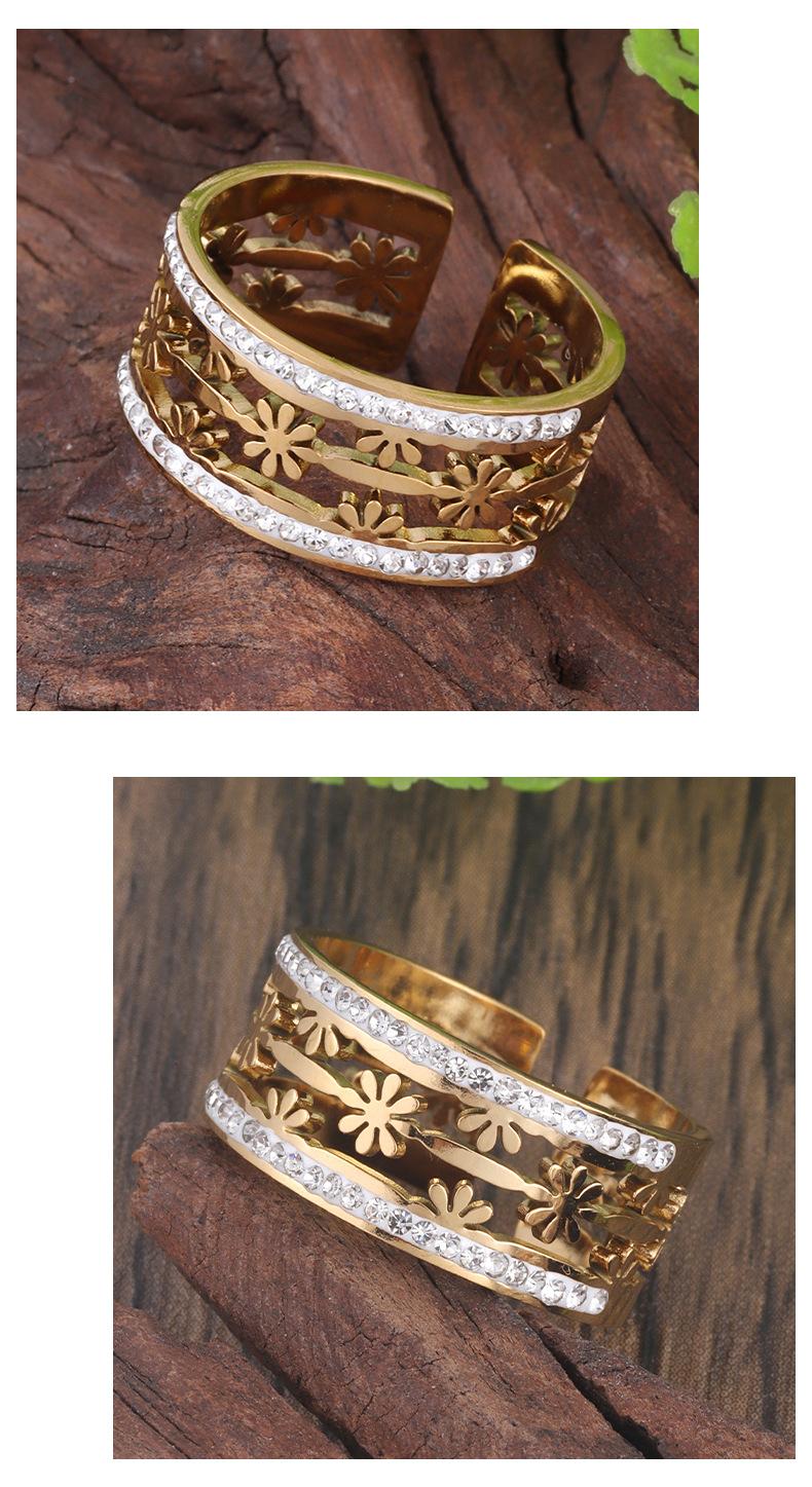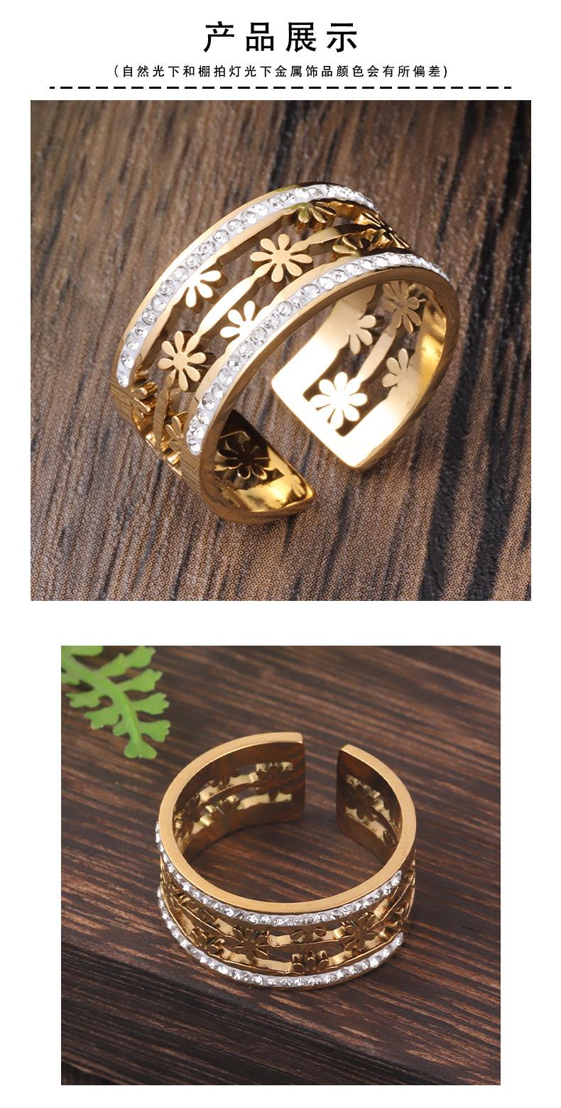 Anillo Abierto de Acero Inoxidable con Oro de 18K Estilo Ins Europeo y Americano para Mujer, Joyería con Forma de Copo de Nieve con Elementos de Copo de Nieve