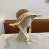Sombrero de Paja Ins Sombrero de Playa Sombrero de Paja con Cordones Sombrero de Verano para Mujer Protección Solar para Viajes Playa Sombrero para el Sol con Borde de Encaje