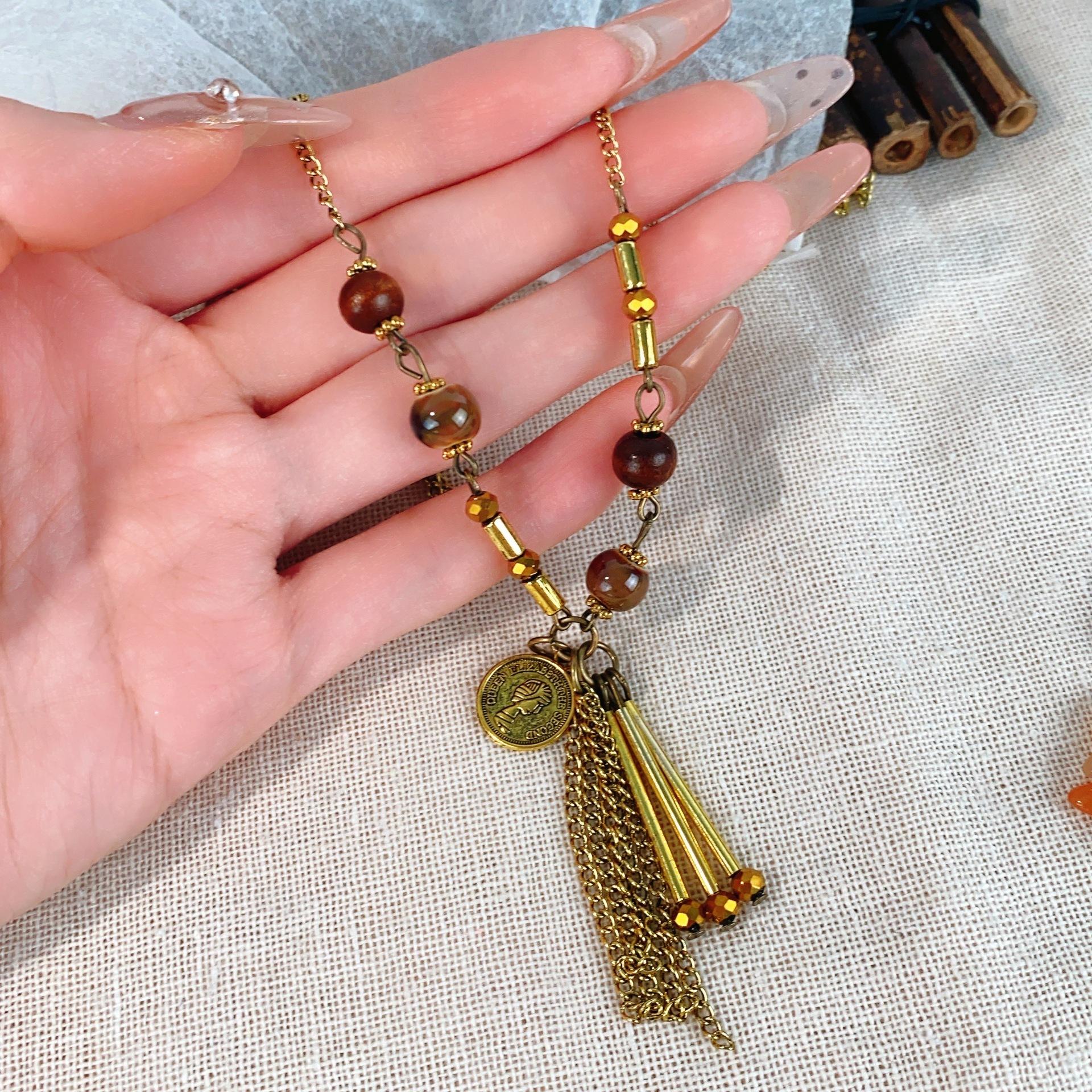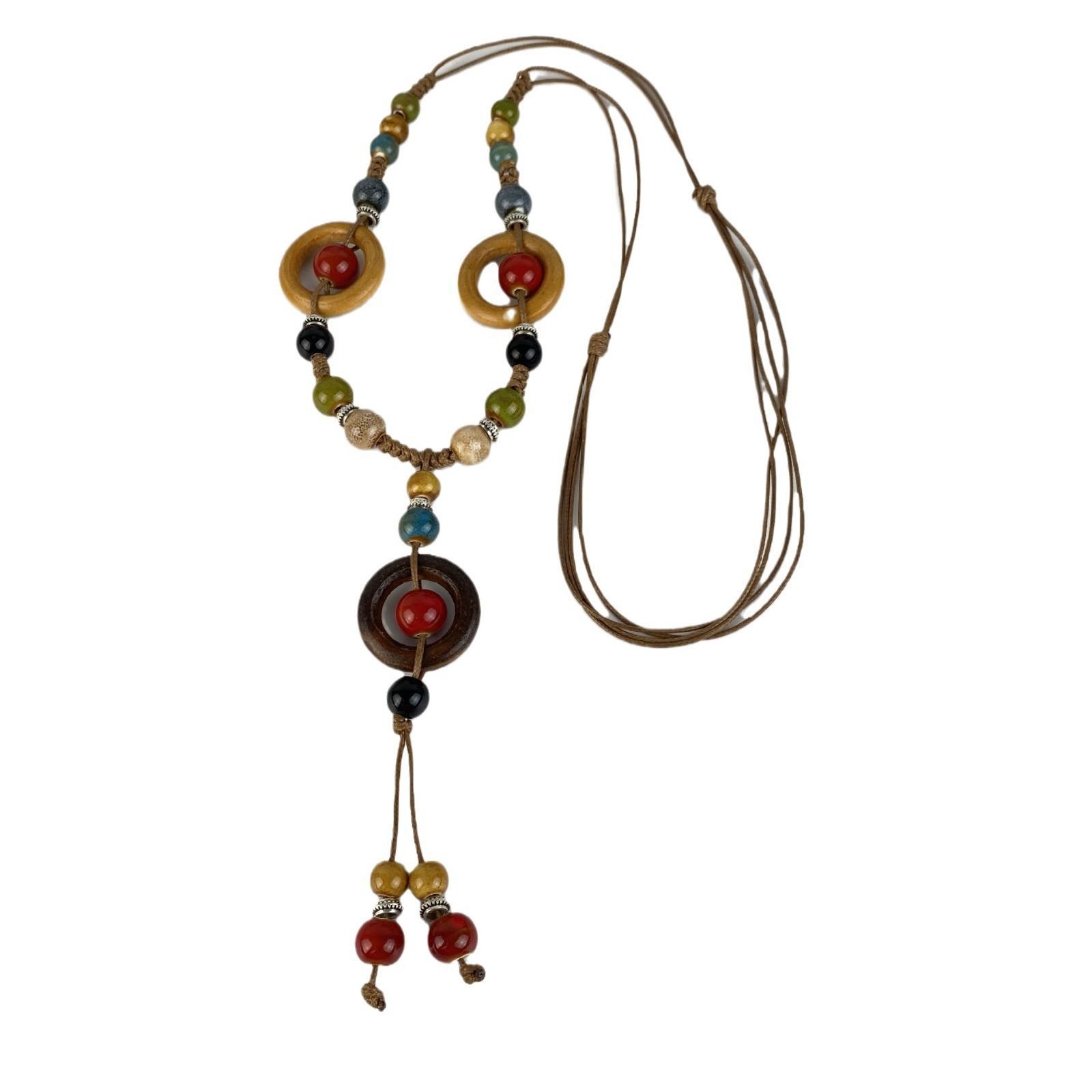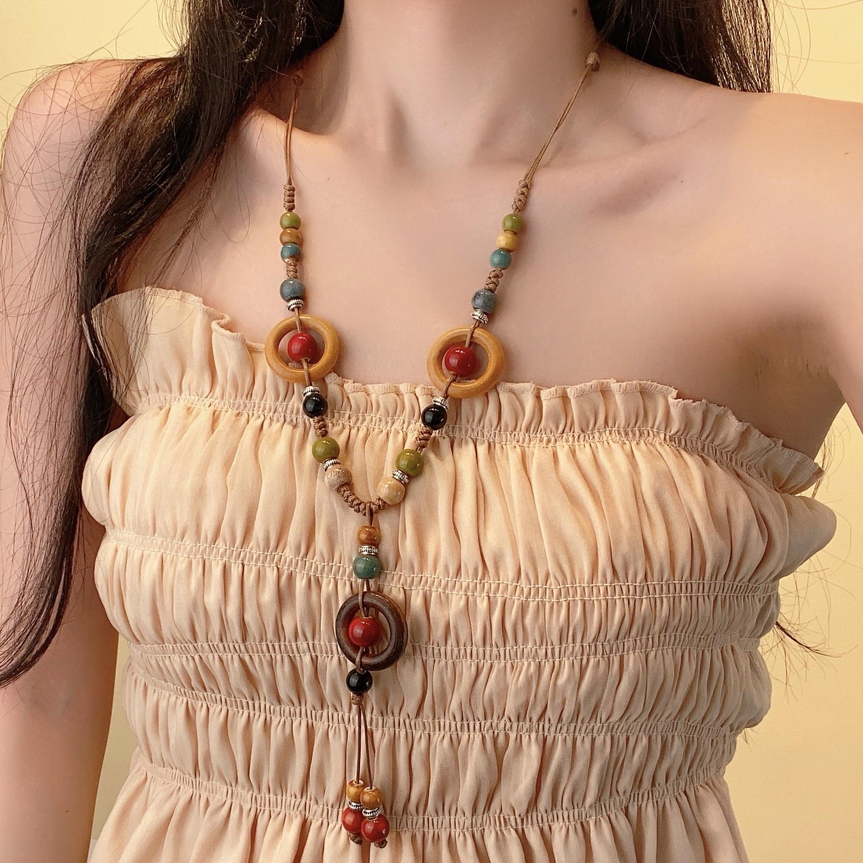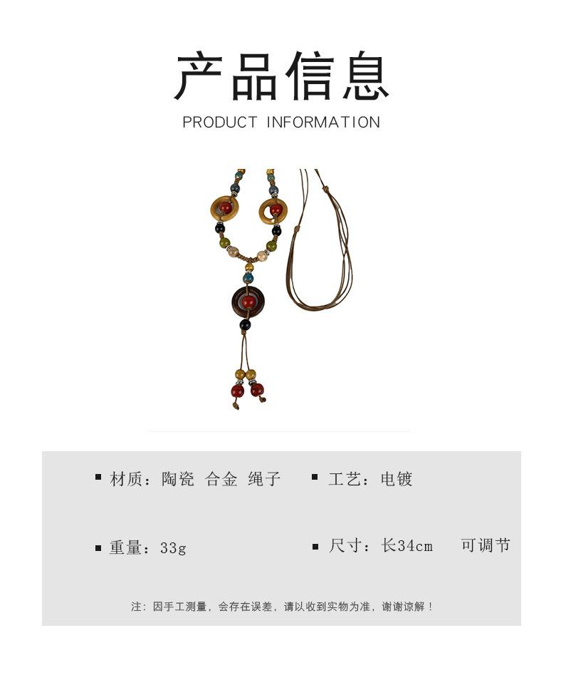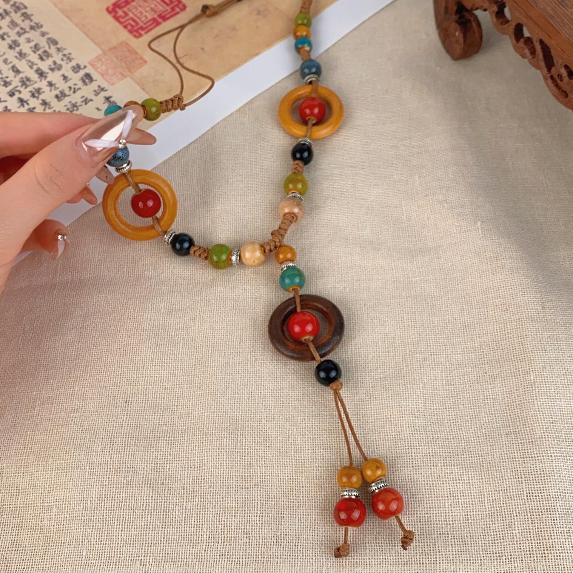 Collar de cuerda de cerámica estilo bohemio retro para mujer, nuevo estilo chino, estilo étnico, nicho, accesorios de estilo zen de alta gama.