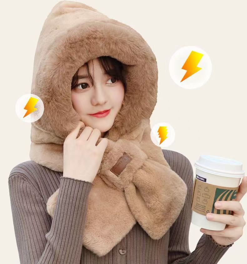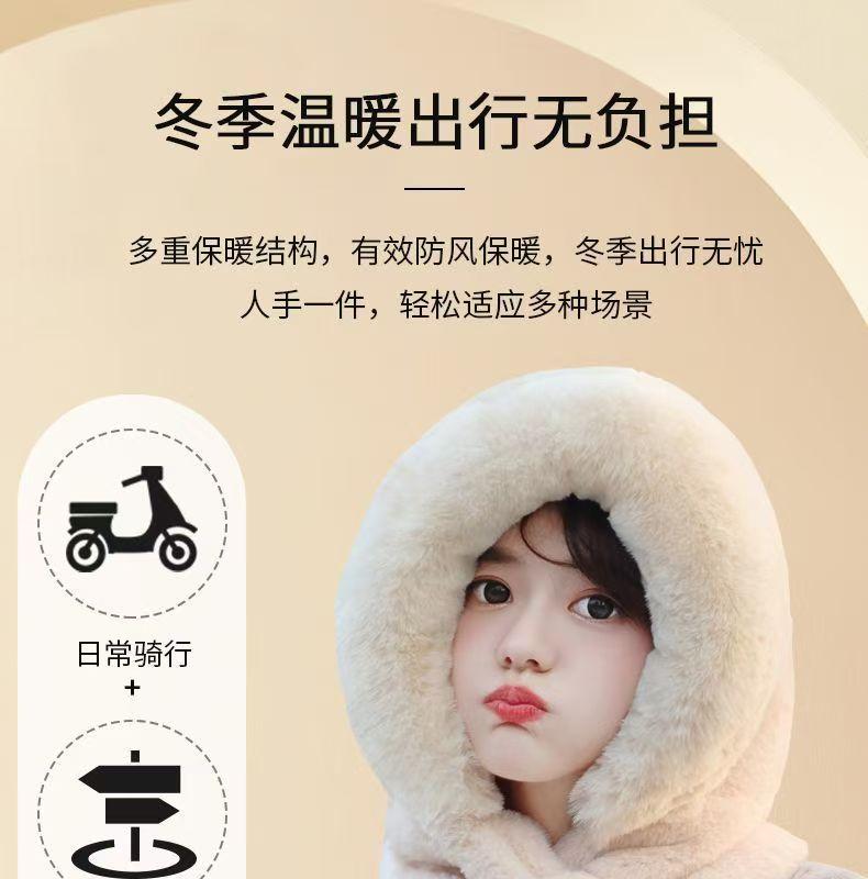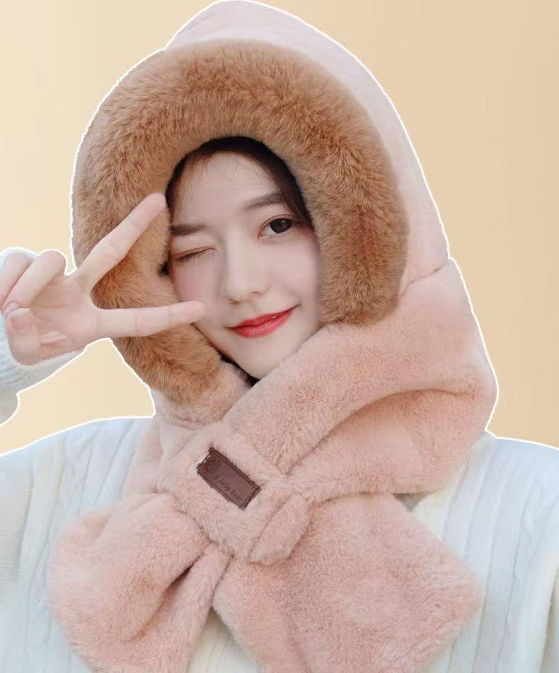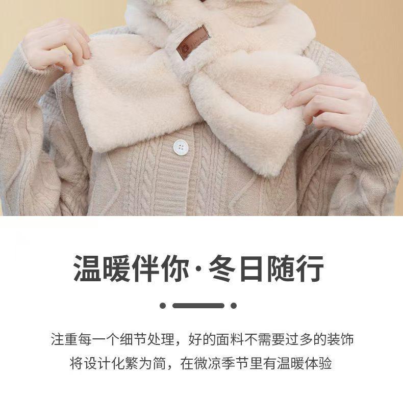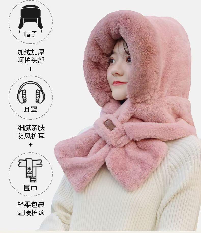 Otoño e Invierno Imitación Piel de Conejo Bufanda Sombrero Una Pieza Cálido Felpa Engrosado Lindo Protección para las Orejas Sombrero Cuello a Prueba de Frío con Capucha