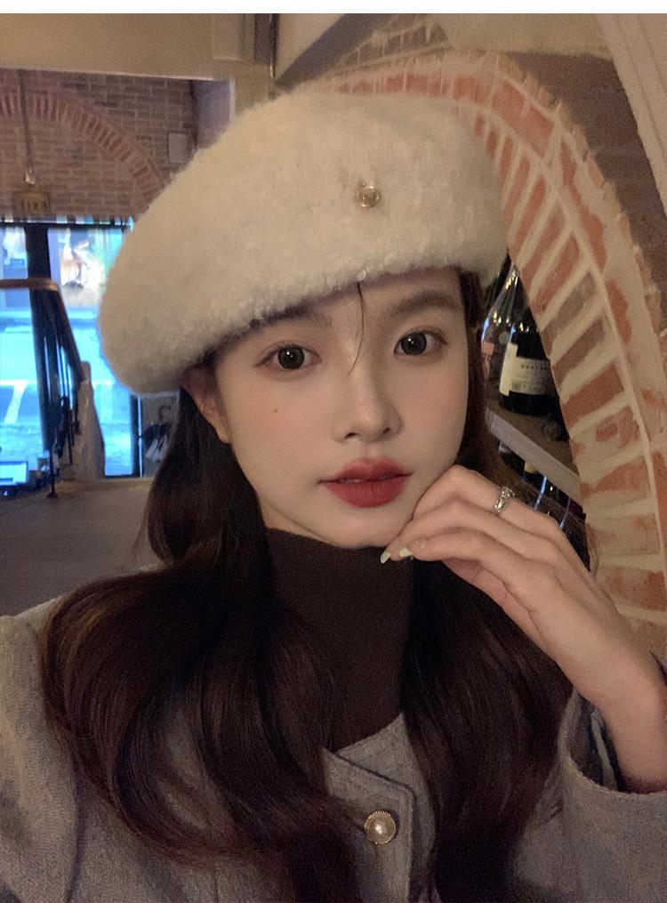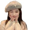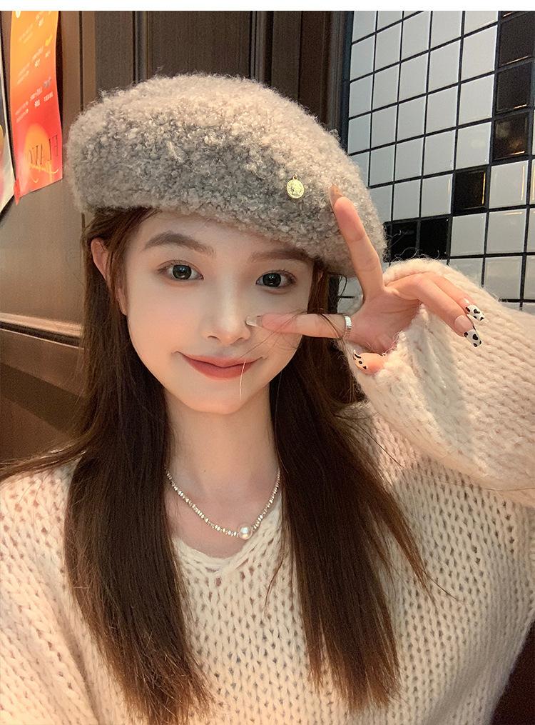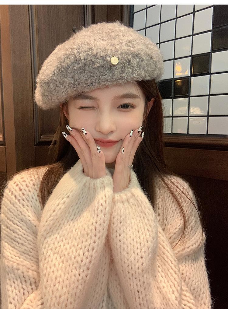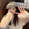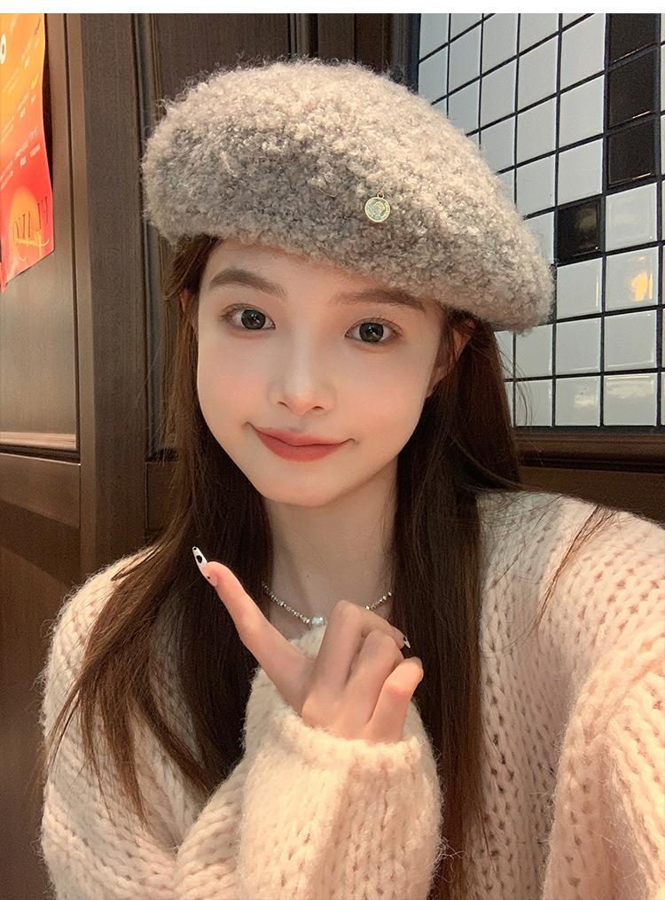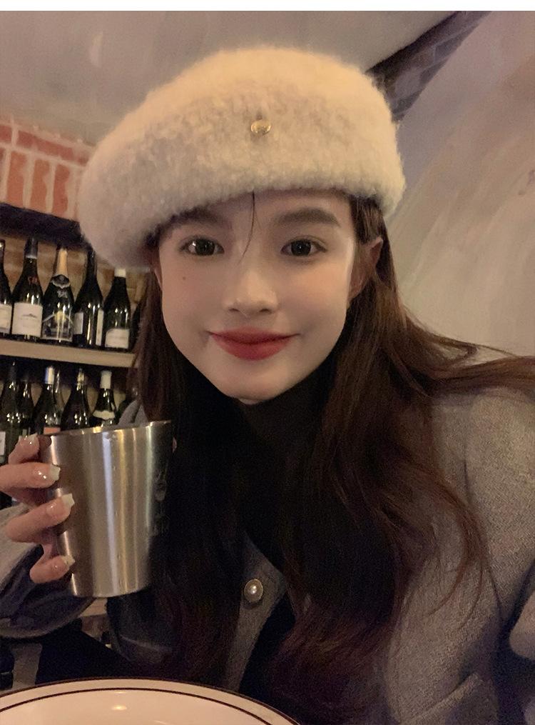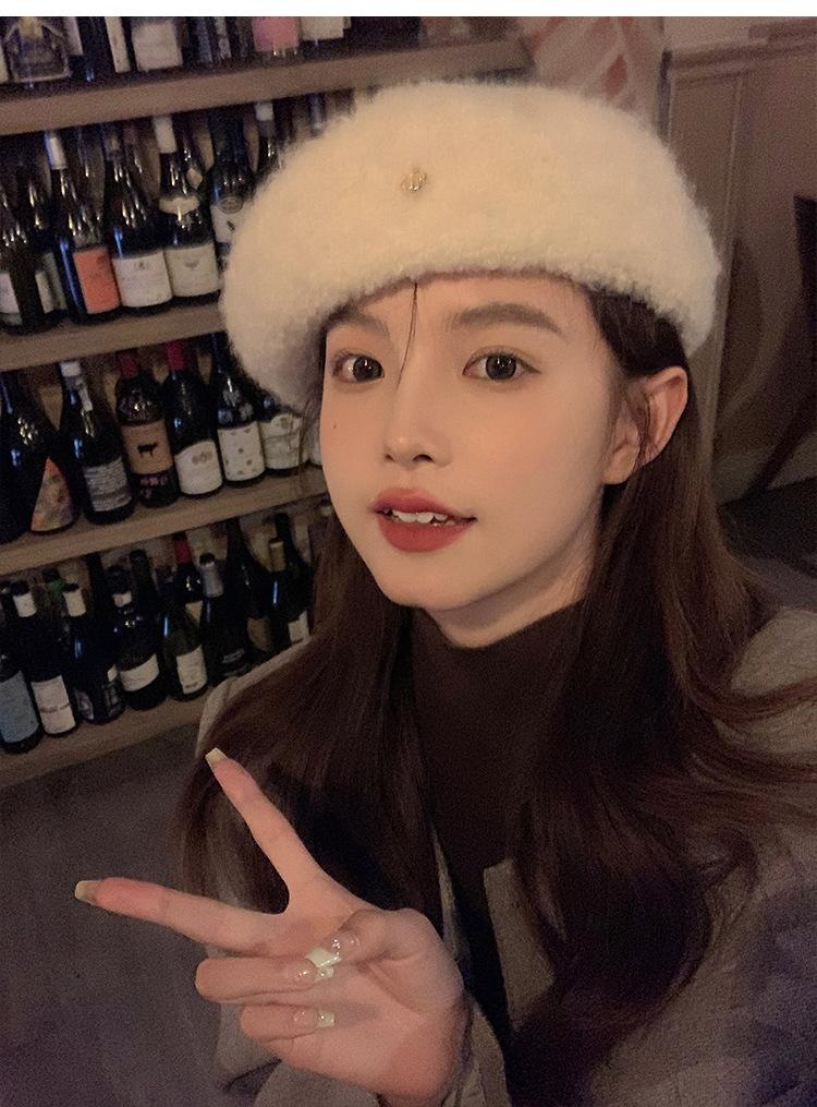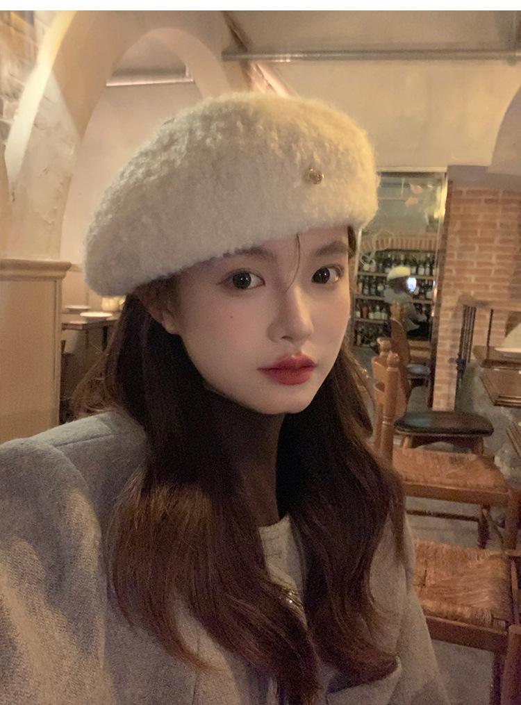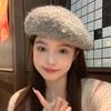 Boina nueva de terciopelo de cordero 2024 para niños, otoño e invierno cálida para la cara, circunferencia de cabeza pequeña grande, versátil, dulce sombrero de pintor