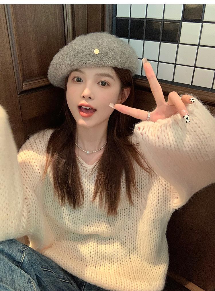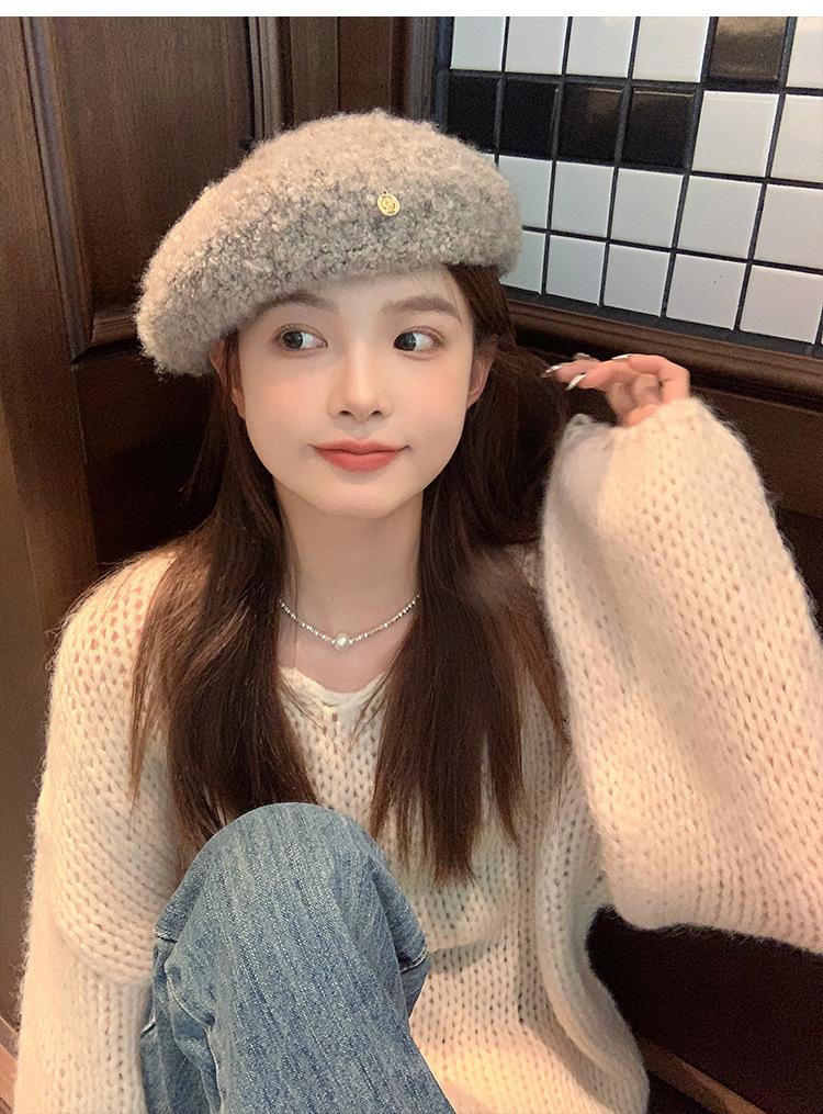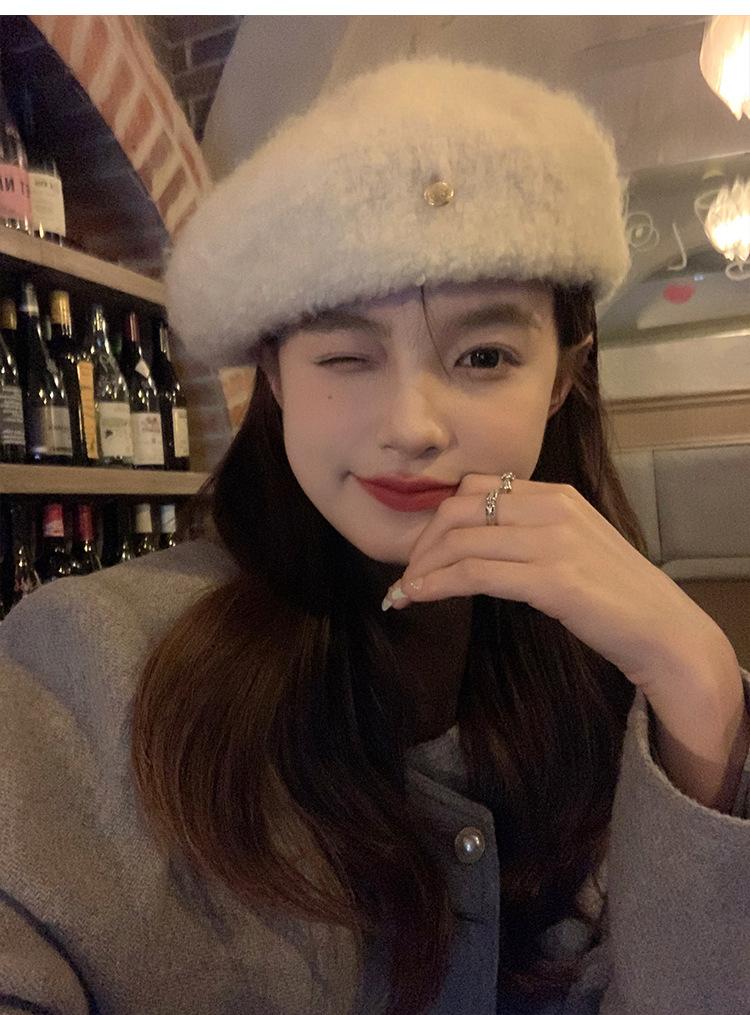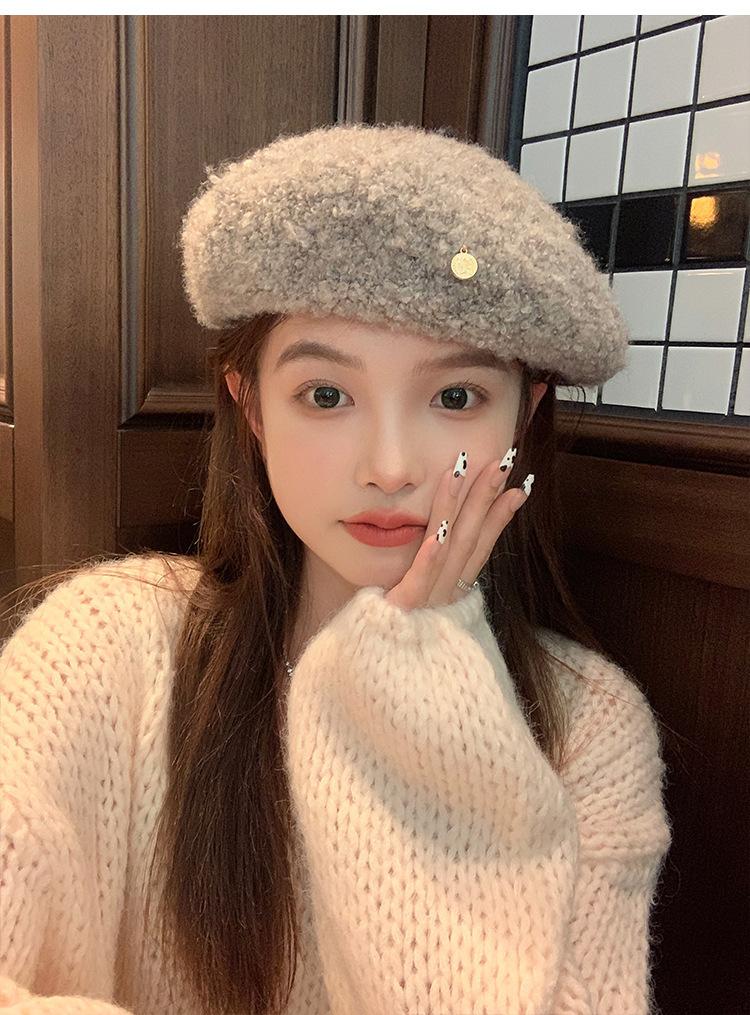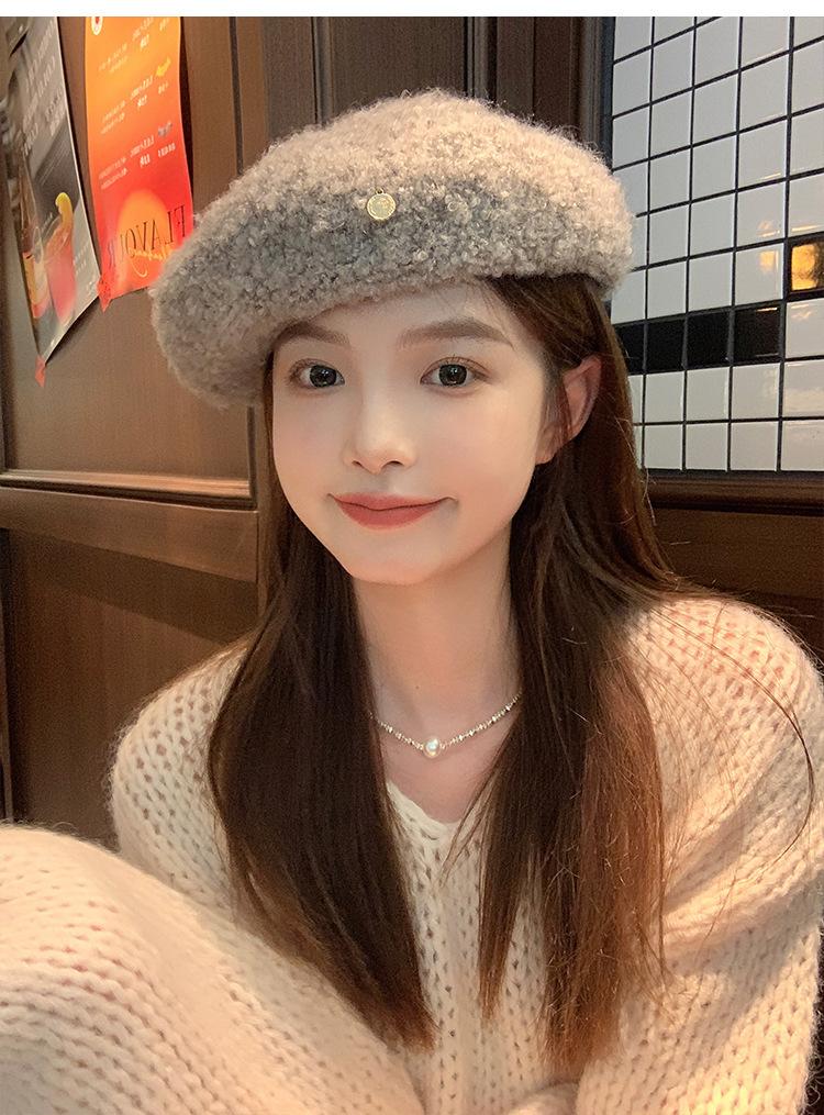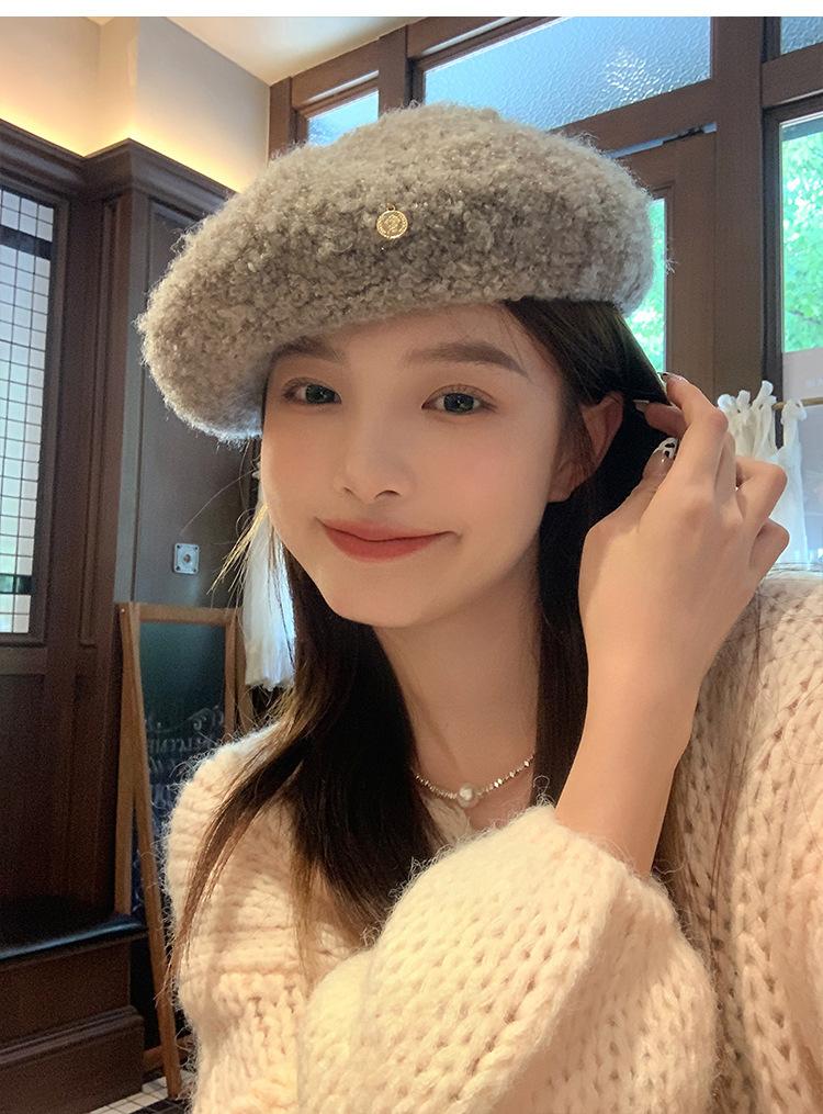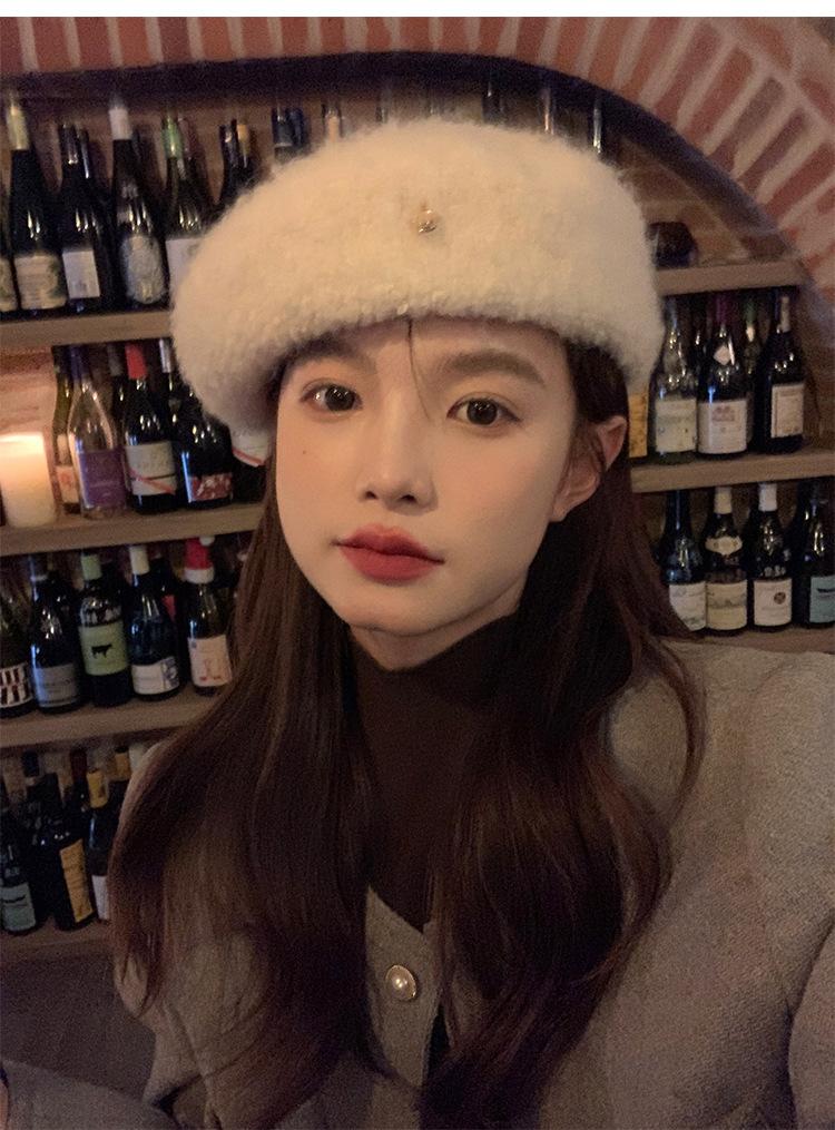 Boina nueva de terciopelo de cordero 2024 para niños, otoño e invierno cálida para la cara, circunferencia de cabeza pequeña grande, versátil, dulce sombrero de pintor