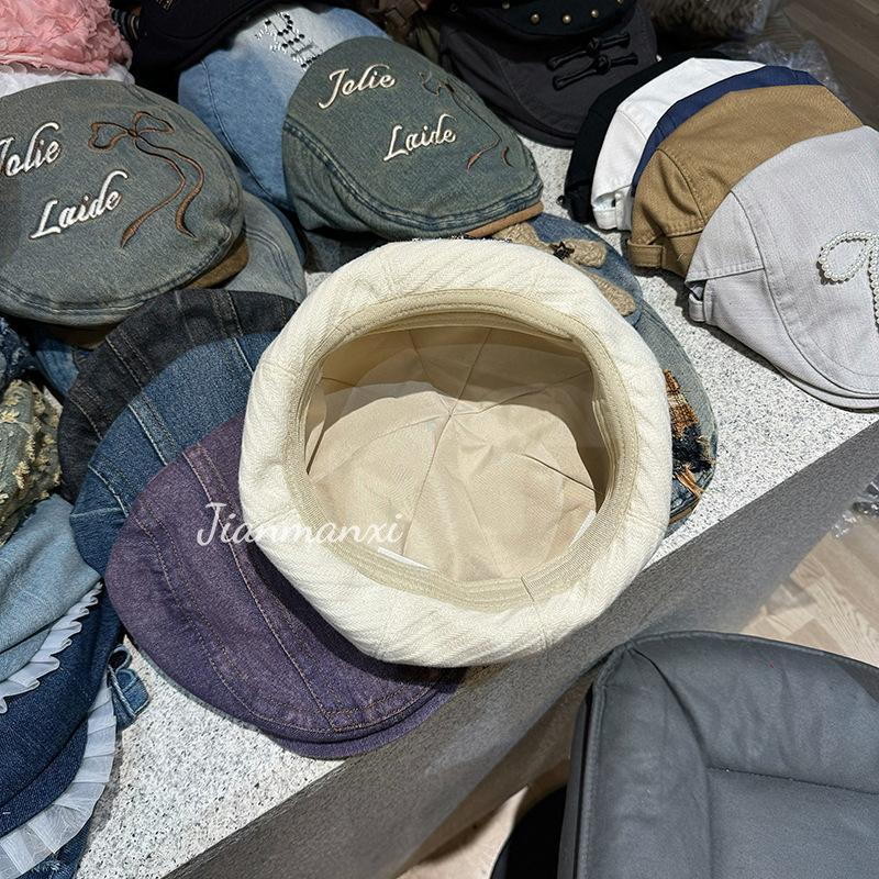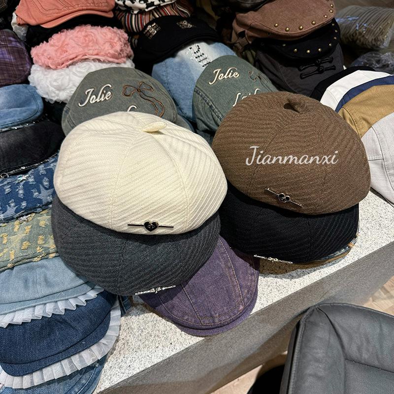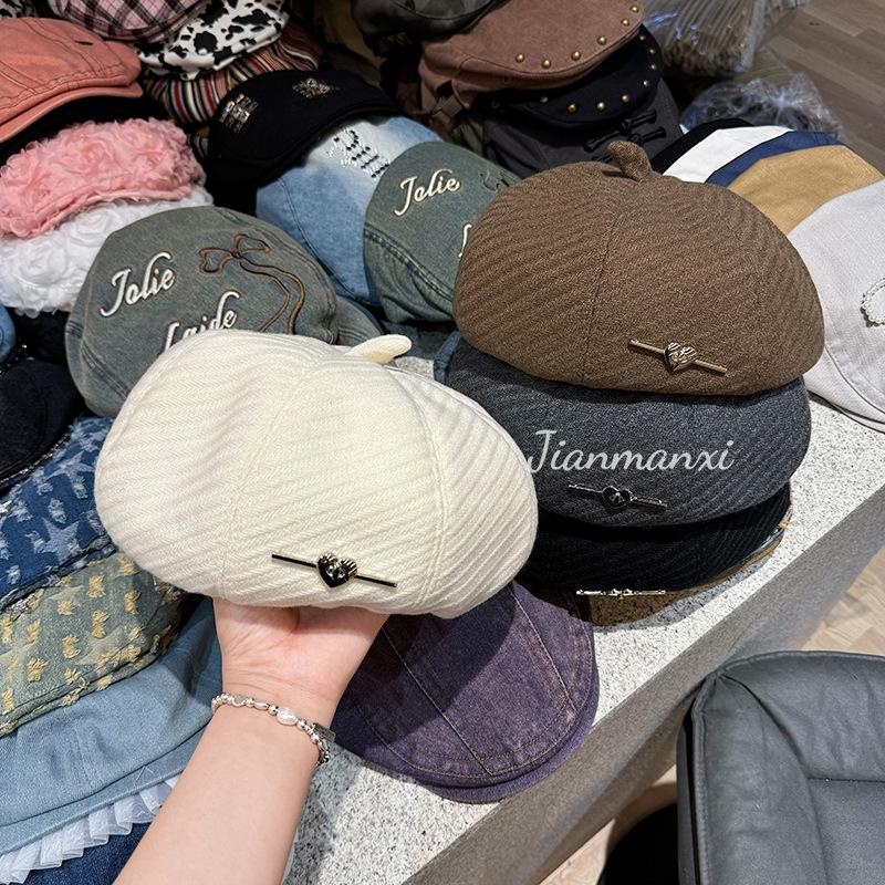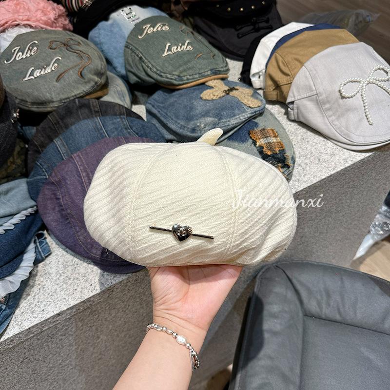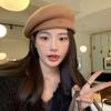 Boina de lana negra Love para mujer, gorra de pintor combinable para primavera y otoño, con gran circunferencia de cabeza y cara pequeña.