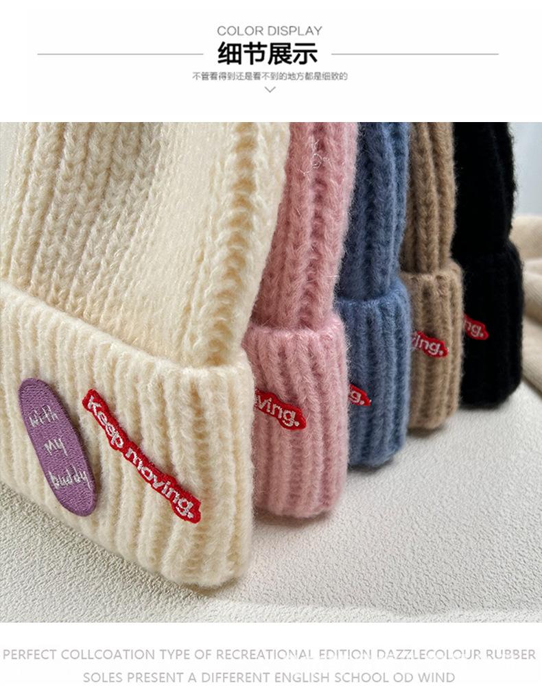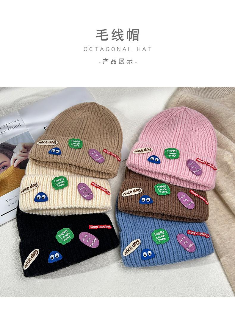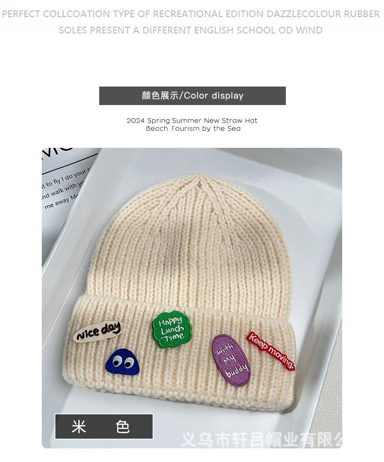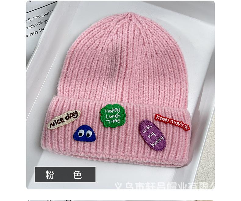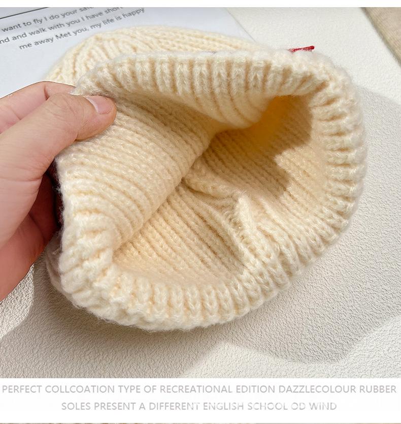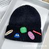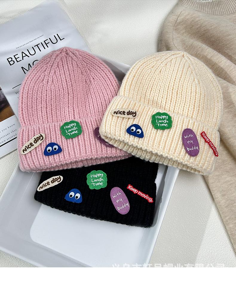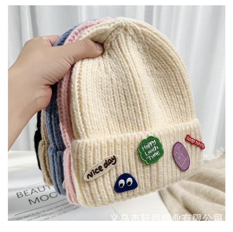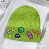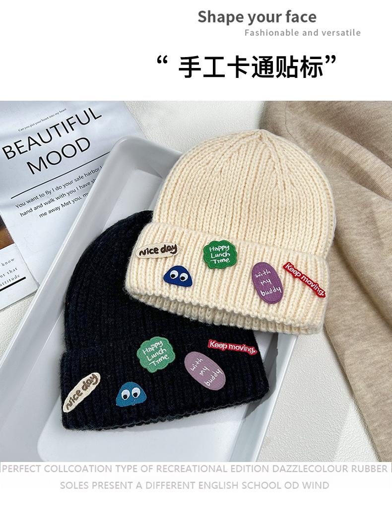 Gorro de punto cálido para otoño e invierno, nuevo, de lana con estampado de dibujos animados, estilo coreano, informal, combinable, para el frío.