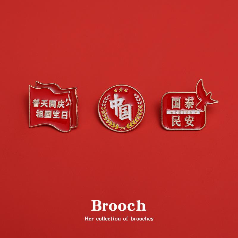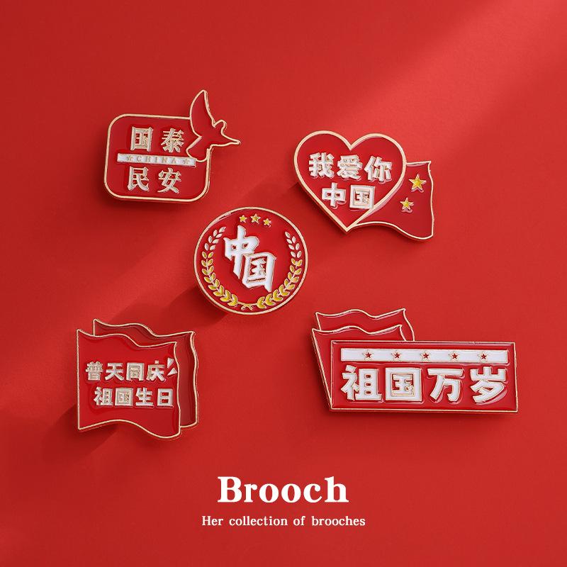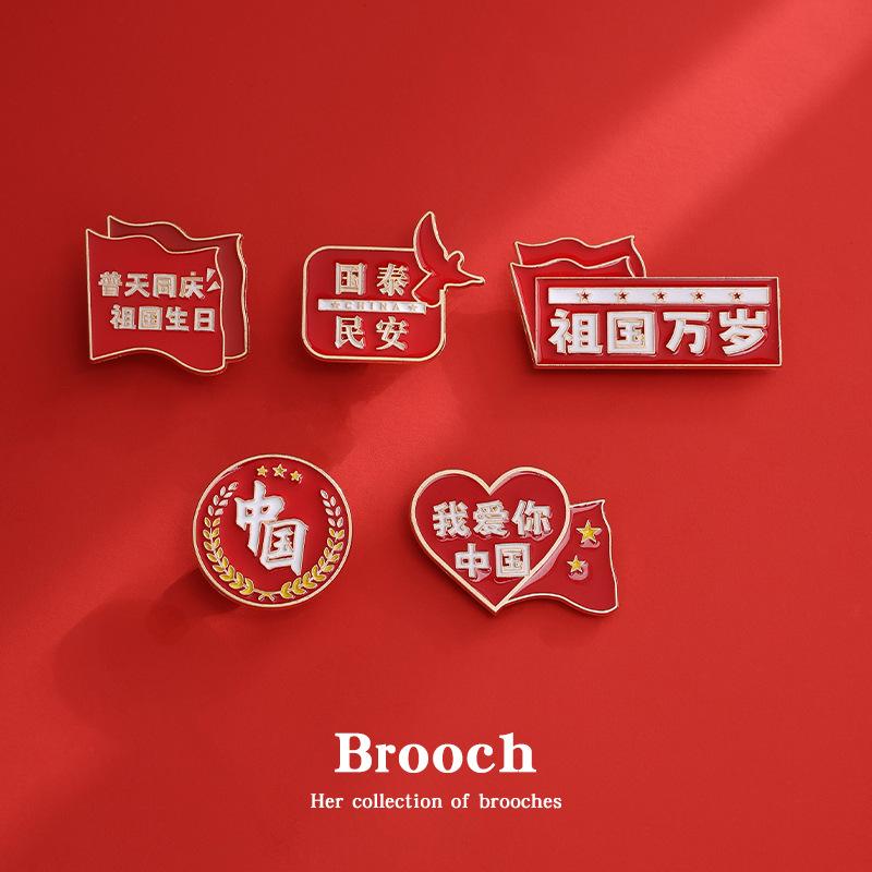 Broche de la bandera roja de cinco estrellas del Día Nacional, collar conmemorativo de China, insignia de metal, insignia de larga vida a la patria, accesorios de pin
