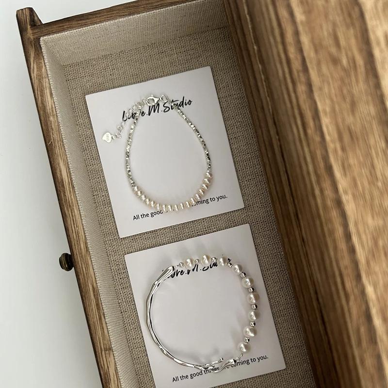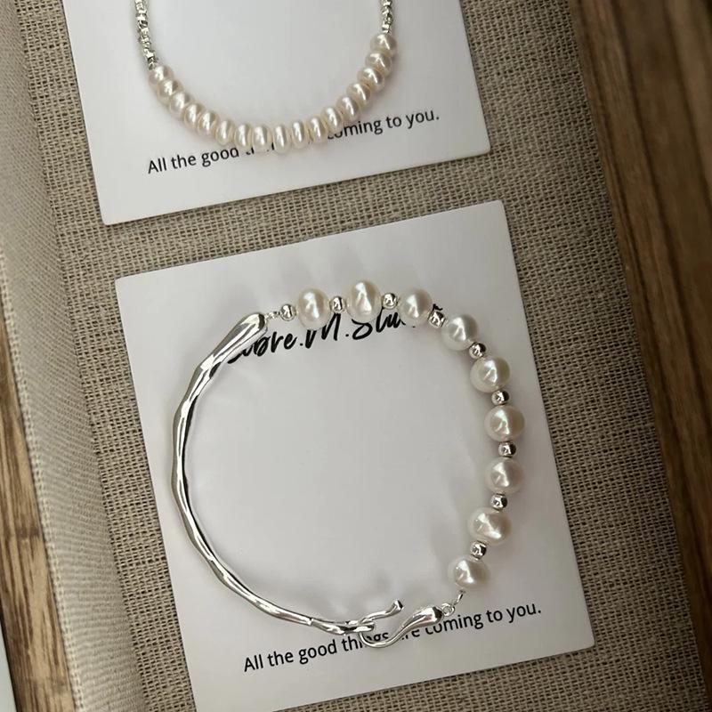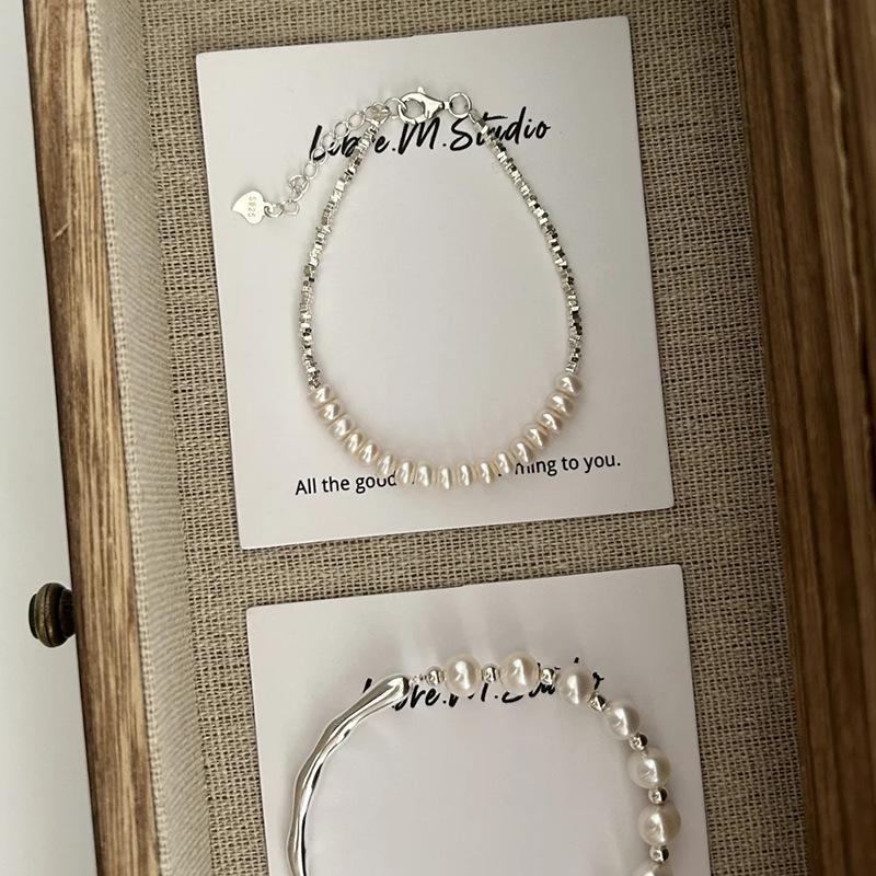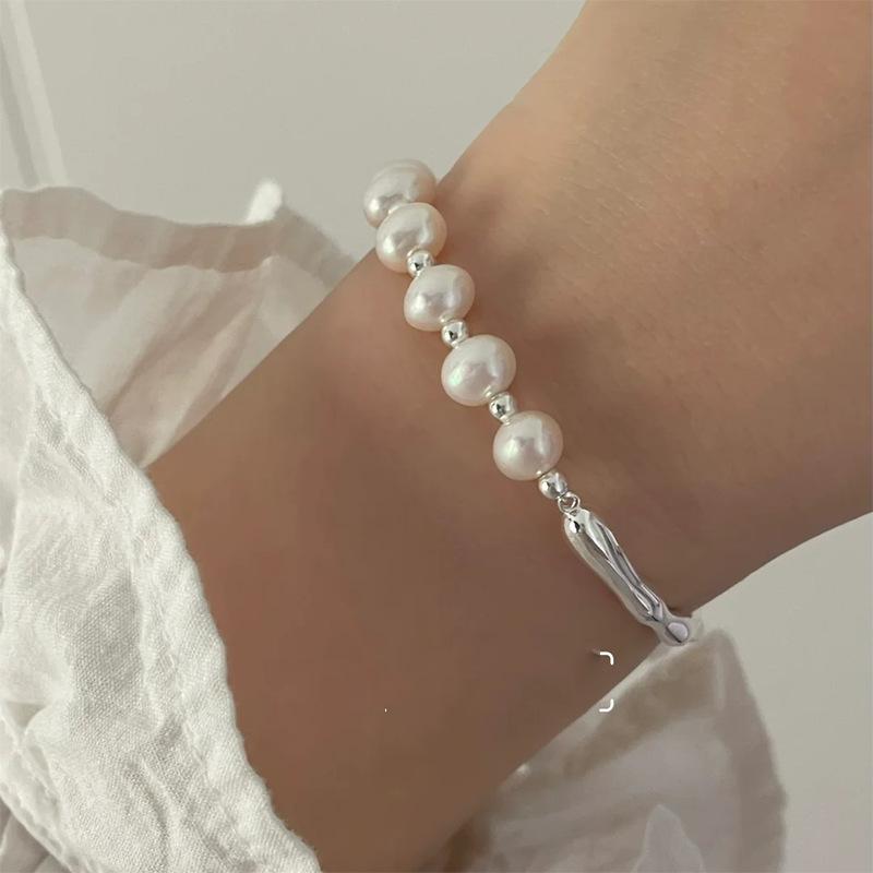 Pulsera Elegante Diaria Otoño Blanco Todo Combinable Diseño Media Pulsera de Perlas Pulsera Nicho de Alta Gama Nueva para Niña
