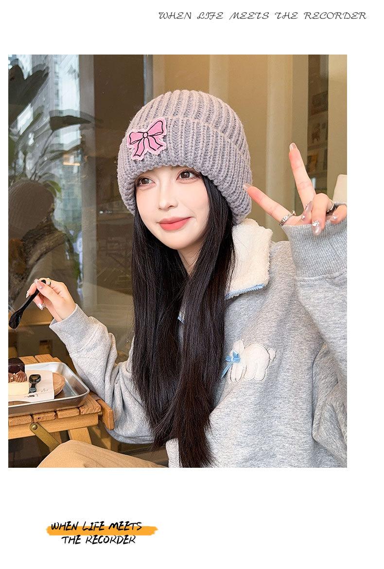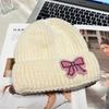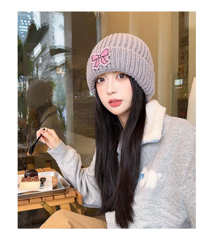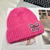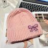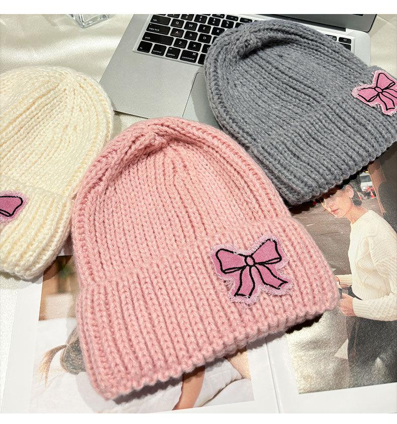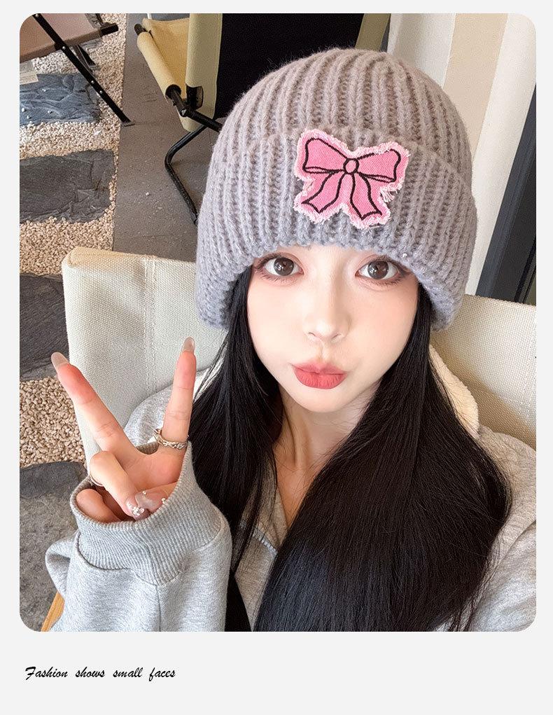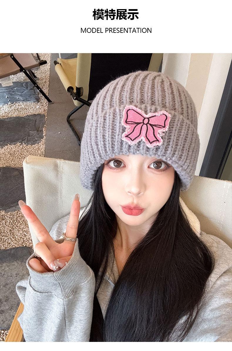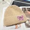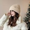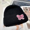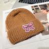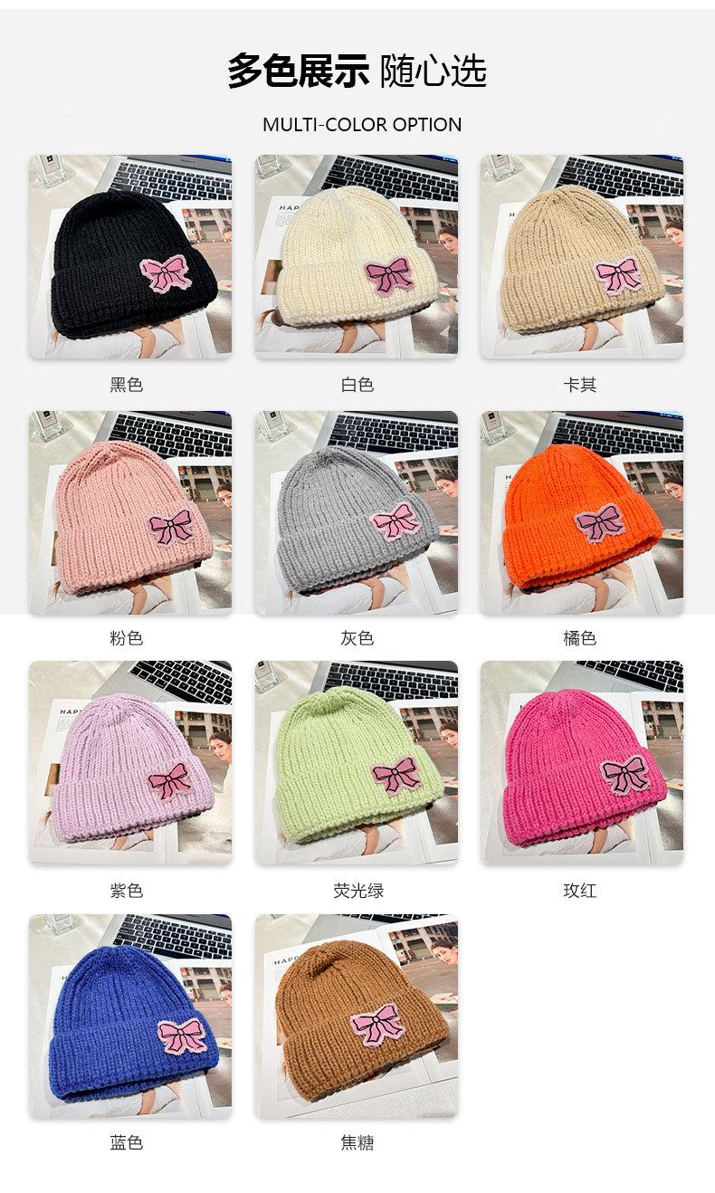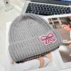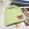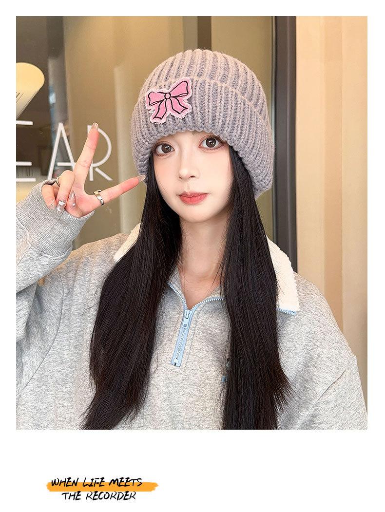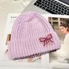 2024 Gorro de lana de punto grueso para mujer con lazo para otoño e invierno, combina con todo, cabeza grande, suelto, moderno, con cara pequeña.
