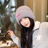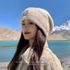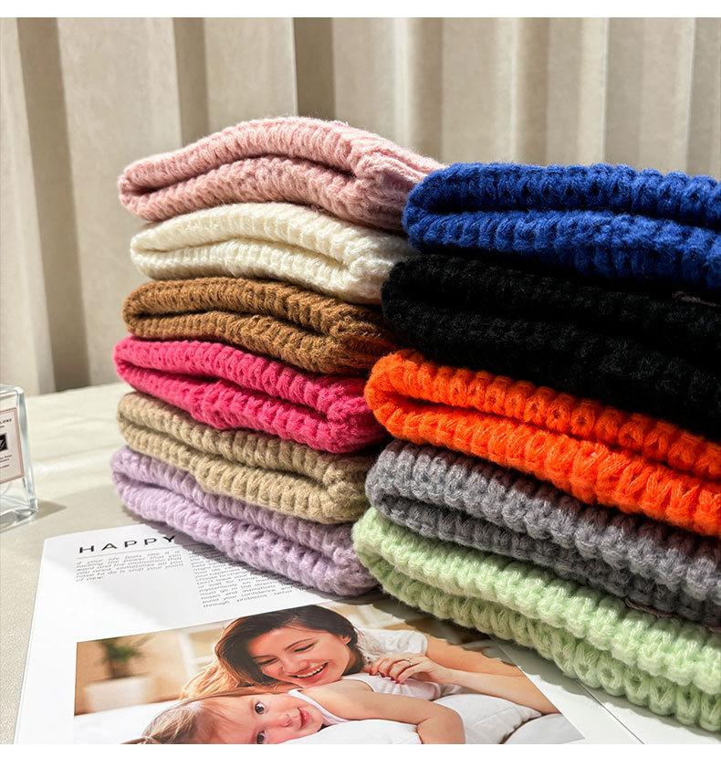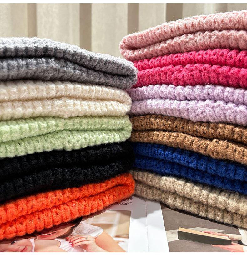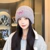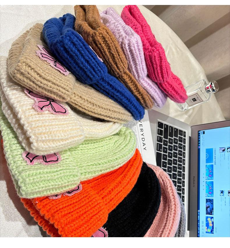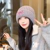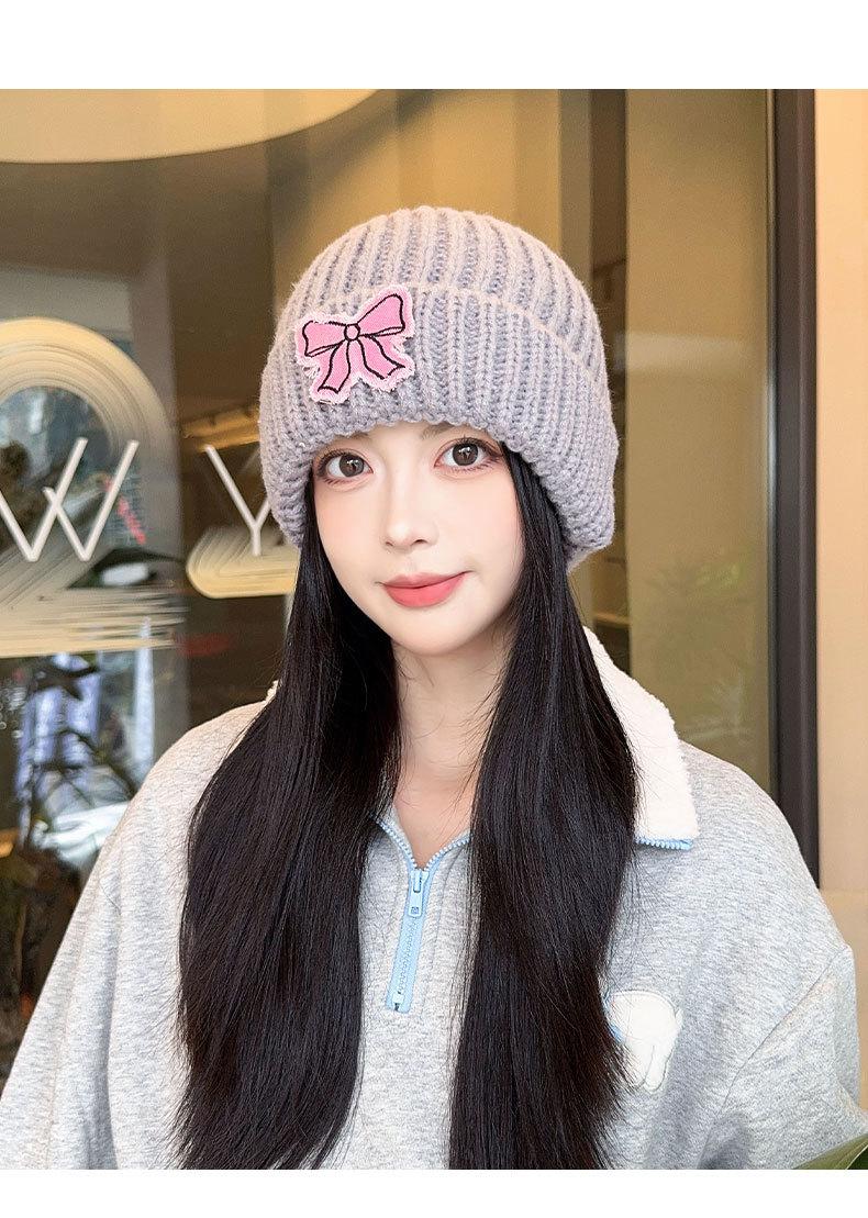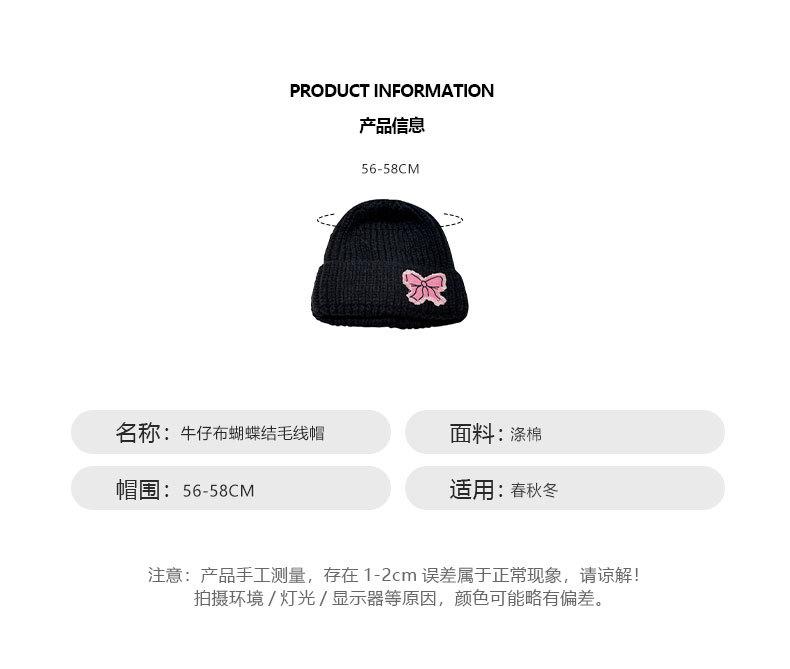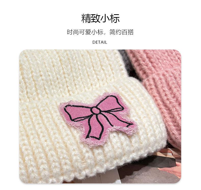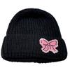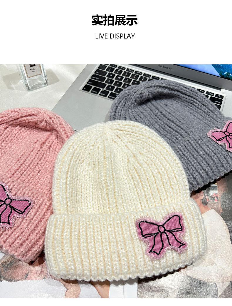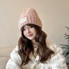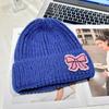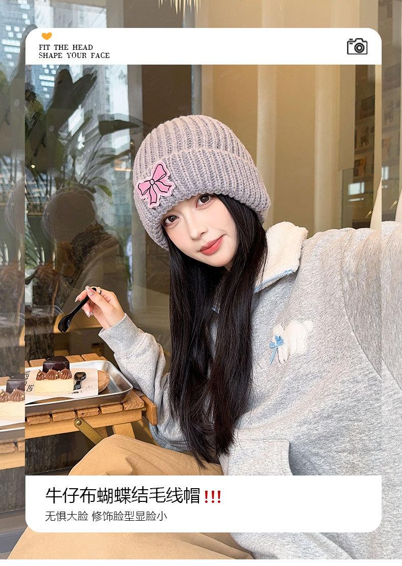 2024 Gorro de lana de punto grueso para mujer con lazo para otoño e invierno, combina con todo, cabeza grande, suelto, moderno, con cara pequeña.